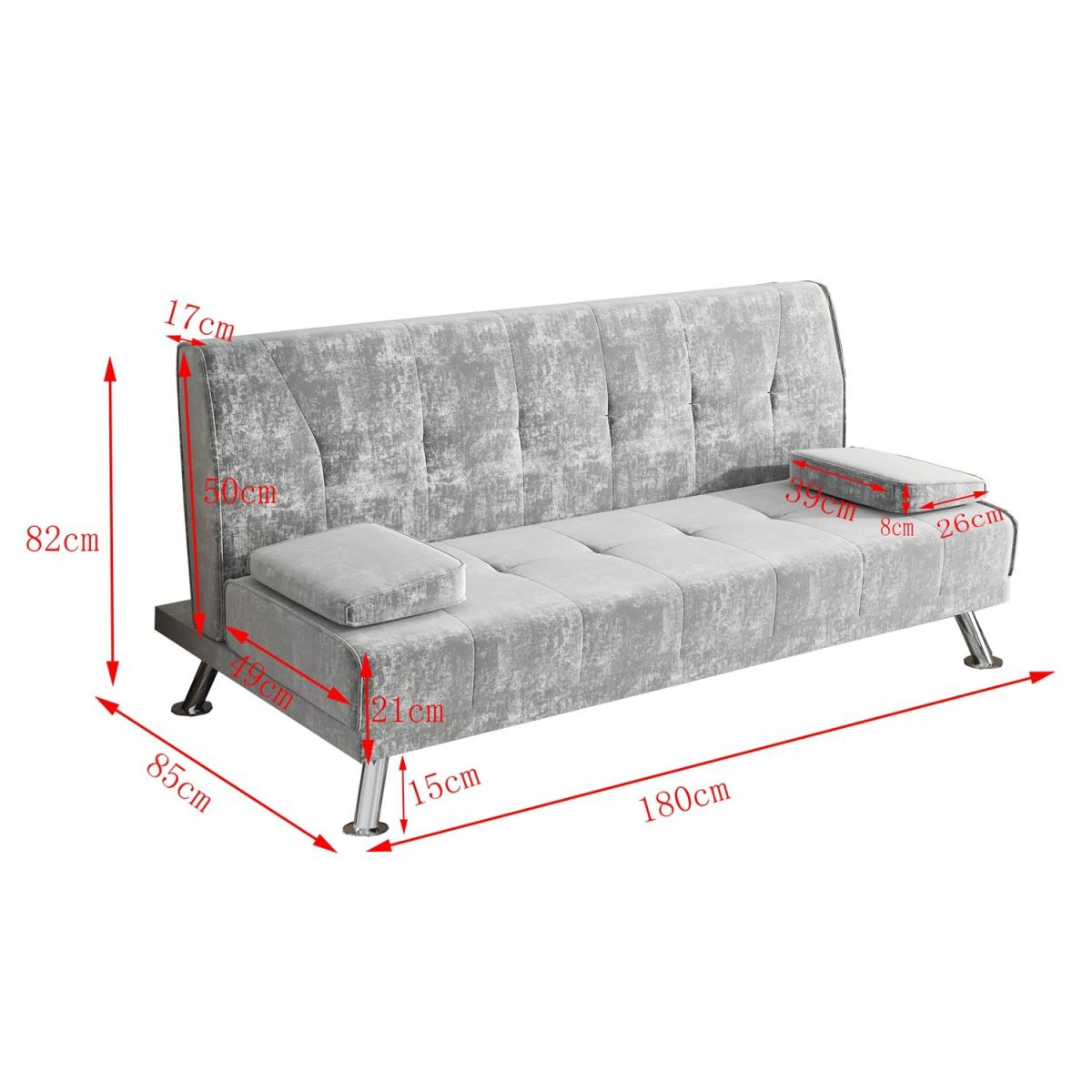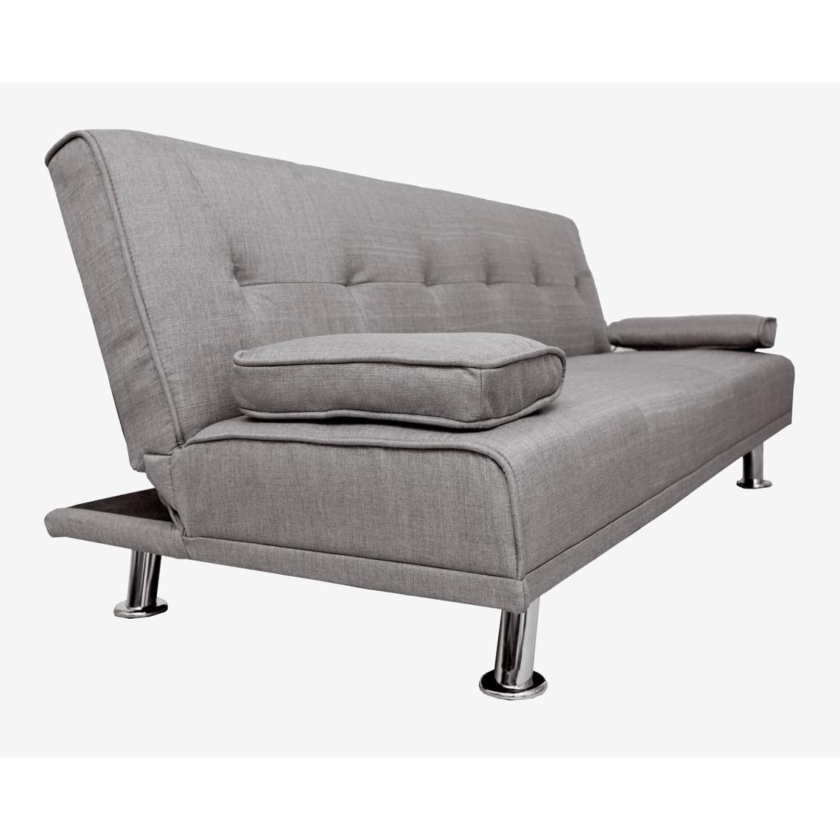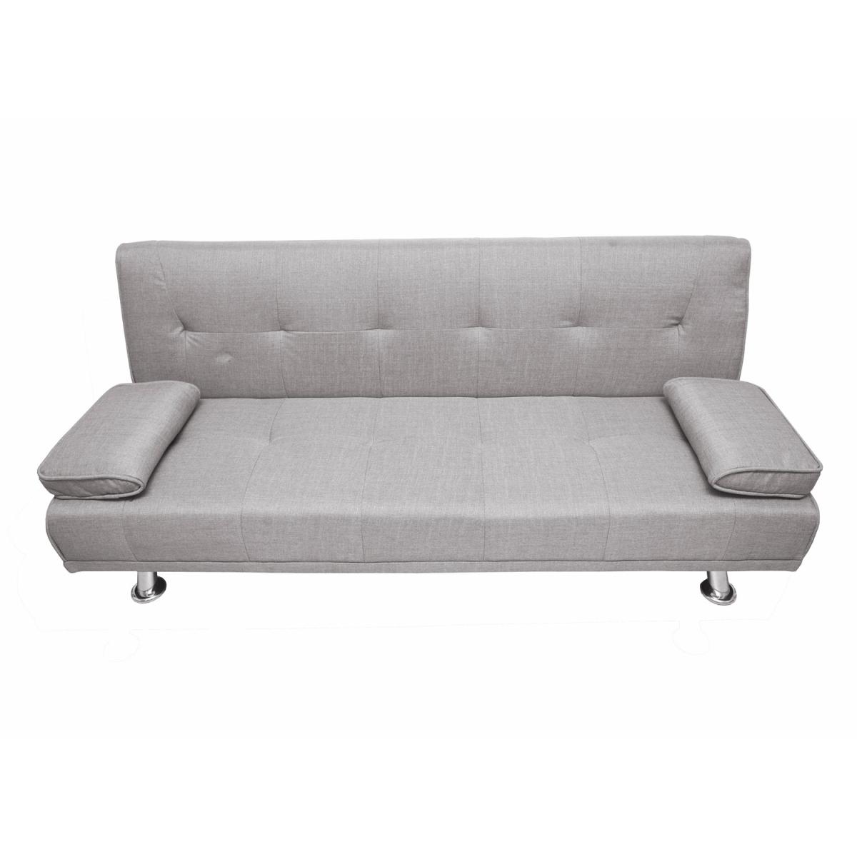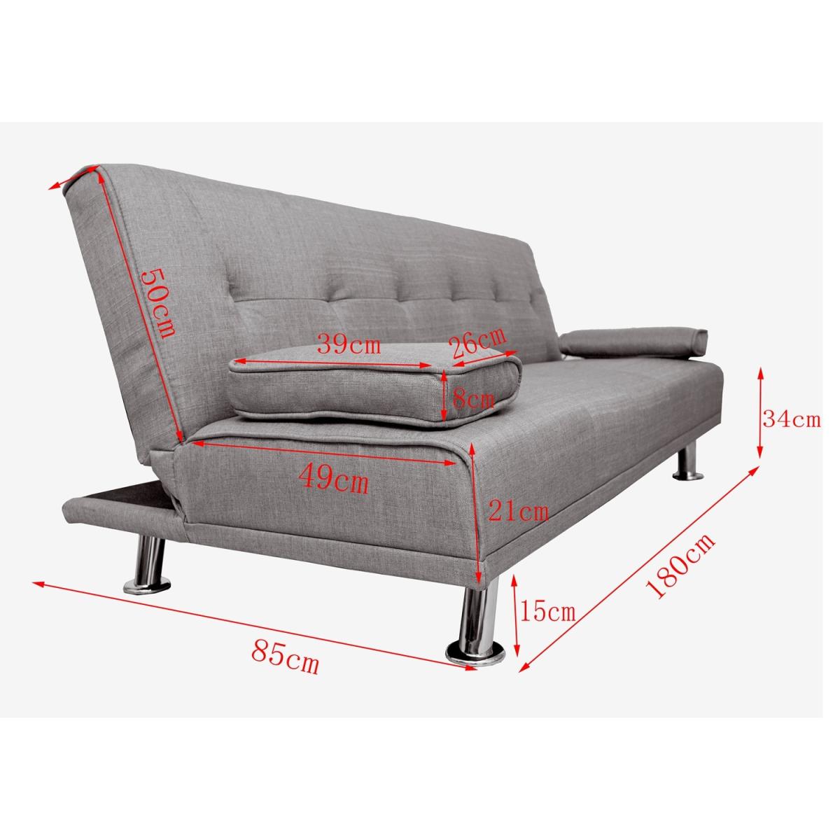 Our Fabric Sofa Bed Chunky utilises a 'click clack' mechanism and contemporary design to produce an absolutely fantastic sofa at a truly unbelievable price point. Finished with beautiful steel feet and luxury linen fabric, this sofa is not only beautiful and modern but also practical. To turn this sofa into a sofa bed simply pulls forward the back until you hear the click and then allow the back to lay down flat. To then turn it back to a sofa simply raise the backrest back up until you hear the click again. Includes the 2 removable arm pads as shown in the picture, it can be taken off easily and to be used as pillows. UK fire safety regulated.
