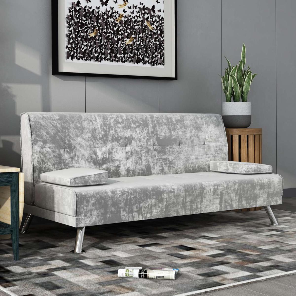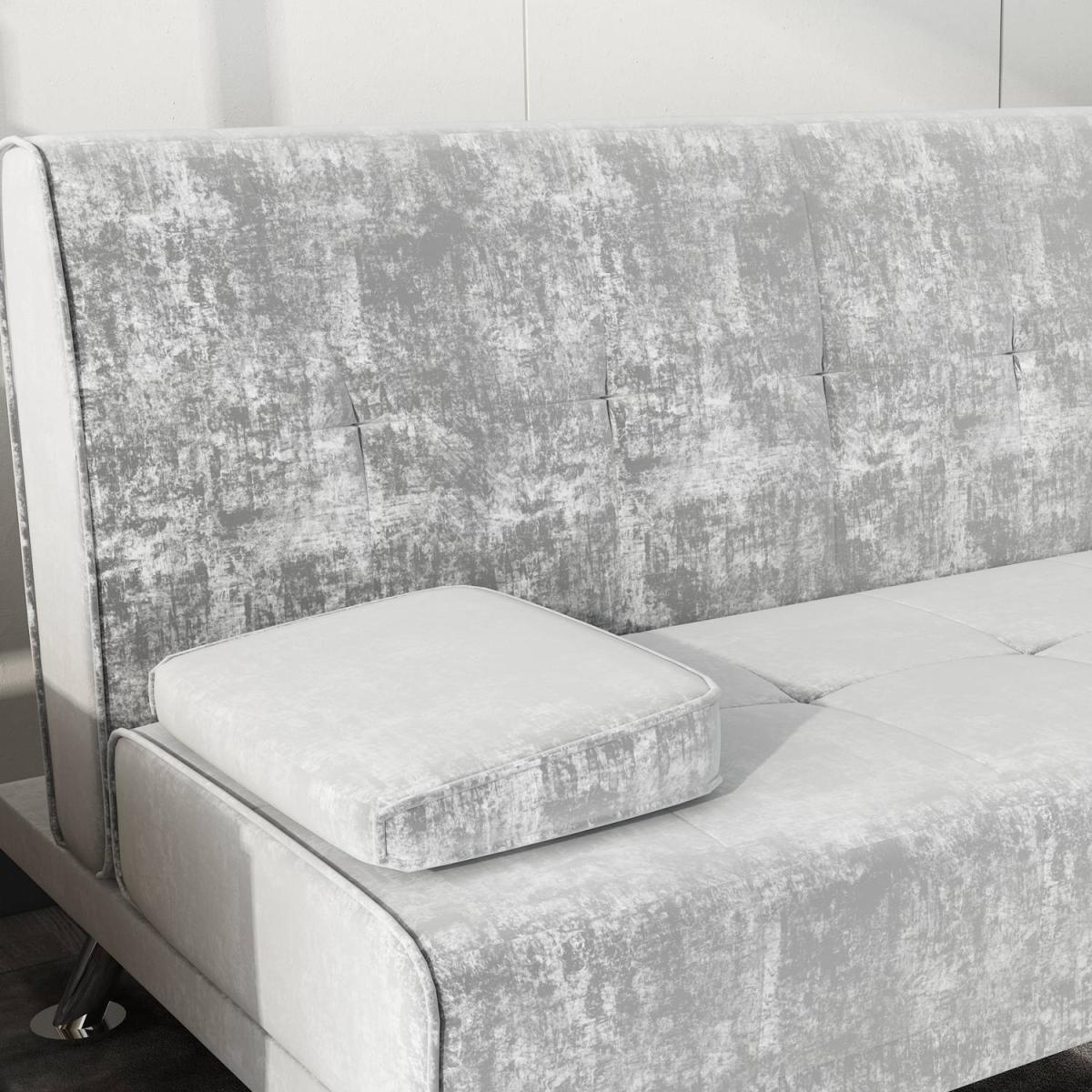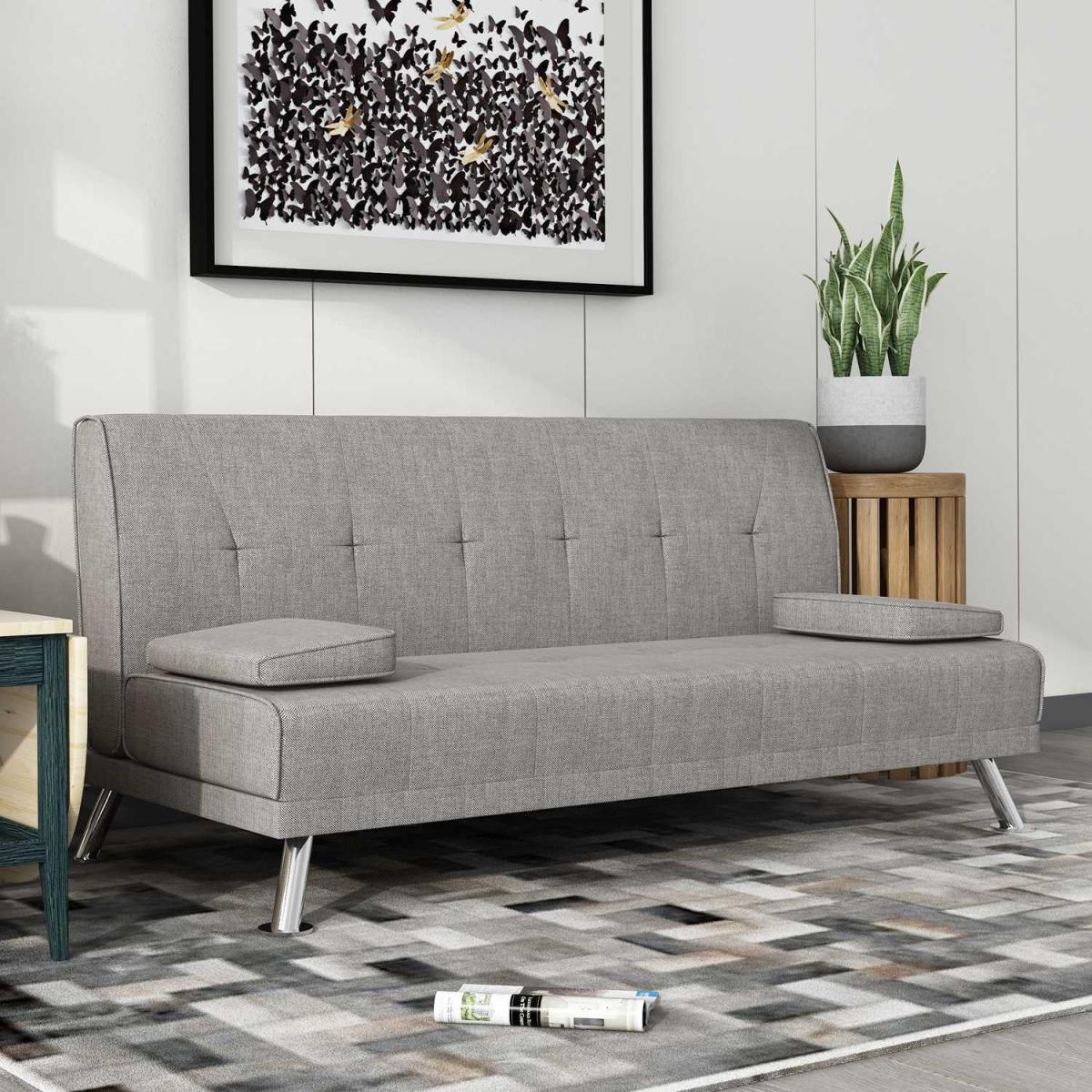 Our Fabric Sofa Bed Chunky utilises a 'click clack' mechanism and contemporary design to produce an absolutely fantastic sofa at a truly unbelievable price point. Finished with beautiful steel feet and luxury linen fabric, this sofa is not only beautiful and modern but also practical. To turn this sofa into a sofa bed simply pulls forward the back until you hear the click and then allow the back to lay down flat. To then turn it back to a sofa simply raise the backrest back up until you hear the click again. Includes the 2 removable arm pads as shown in the picture, it can be taken off easily and to be used as pillows. UK fire safety regulated.