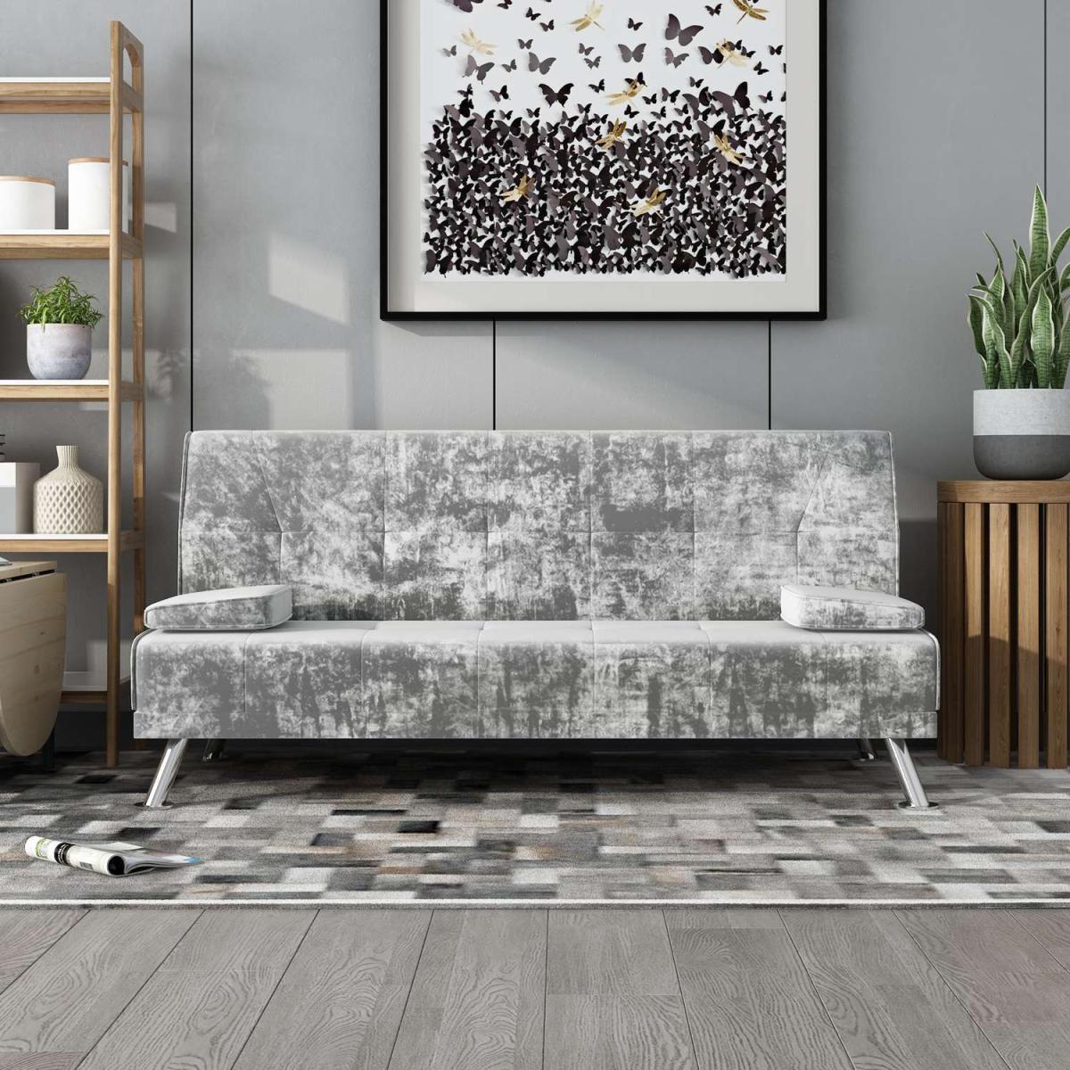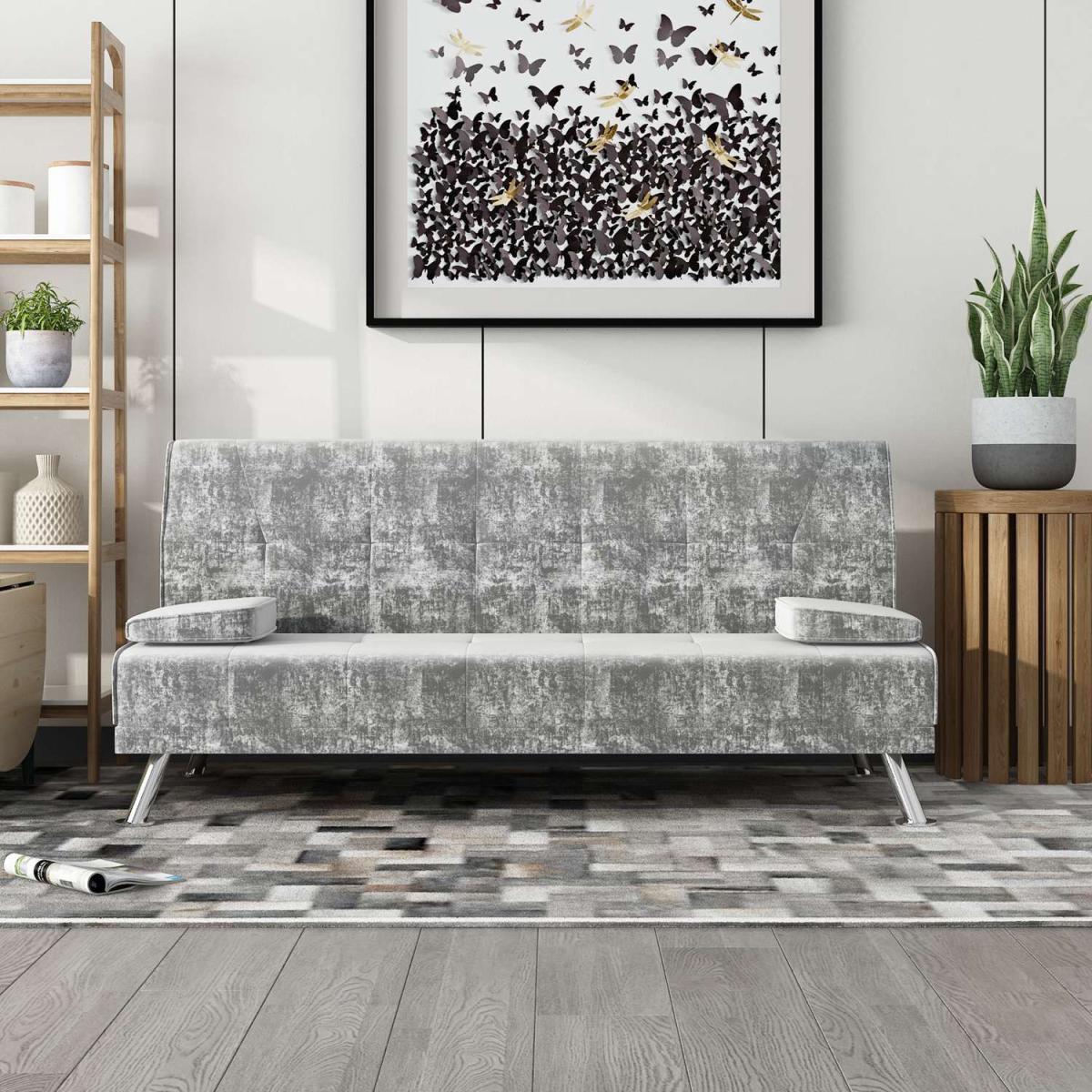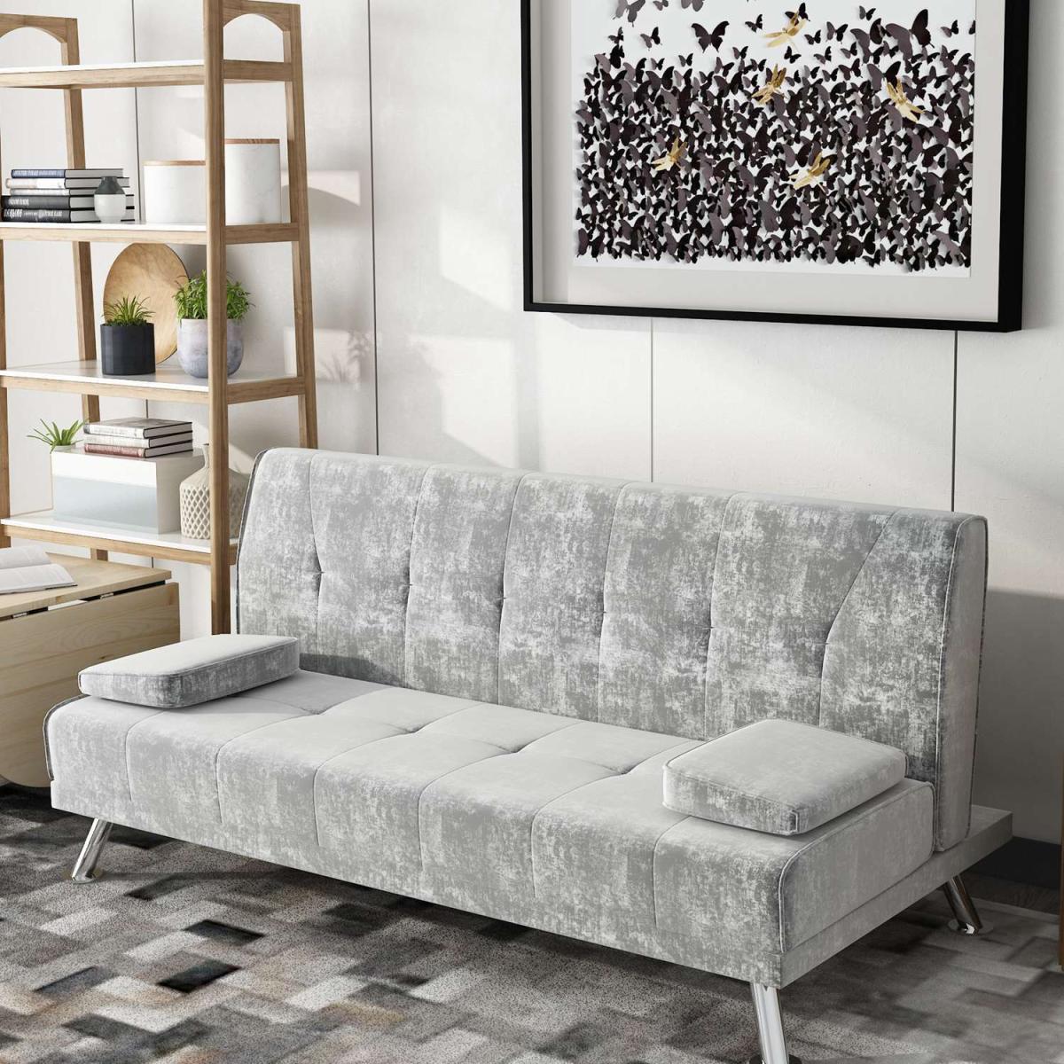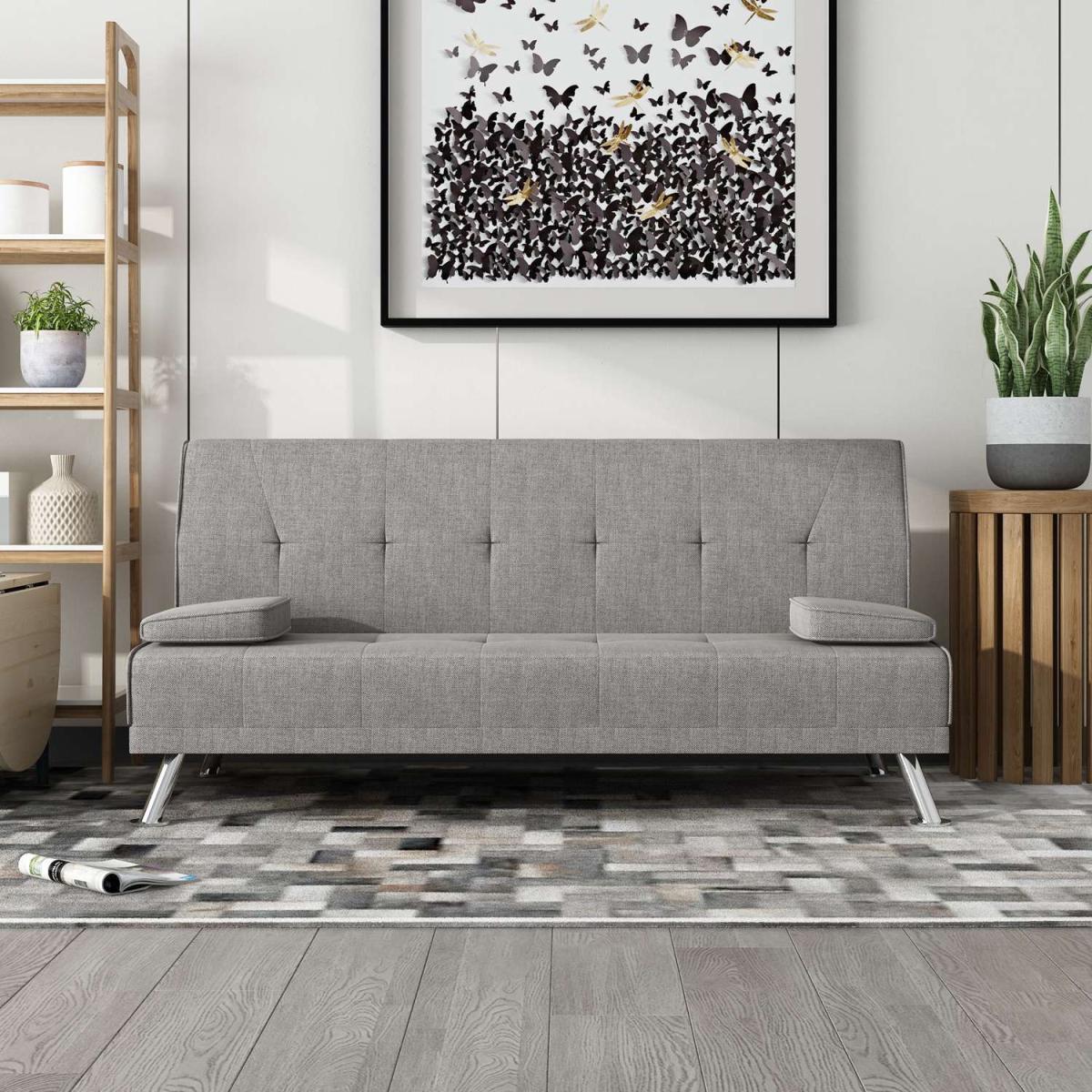 Our Fabric Sofa Bed Chunky utilises a 'click clack' mechanism and contemporary design to produce an absolutely fantastic sofa at a truly unbelievable price point. Finished with beautiful steel feet and luxury linen fabric, this sofa is not only beautiful and modern but also practical. To turn this sofa into a sofa bed simply pulls forward the back until you hear the click and then allow the back to lay down flat. To then turn it back to a sofa simply raise the backrest back up until you hear the click again. Includes the 2 removable arm pads as shown in the picture, it can be taken off easily and to be used as pillows. UK fire safety regulated.