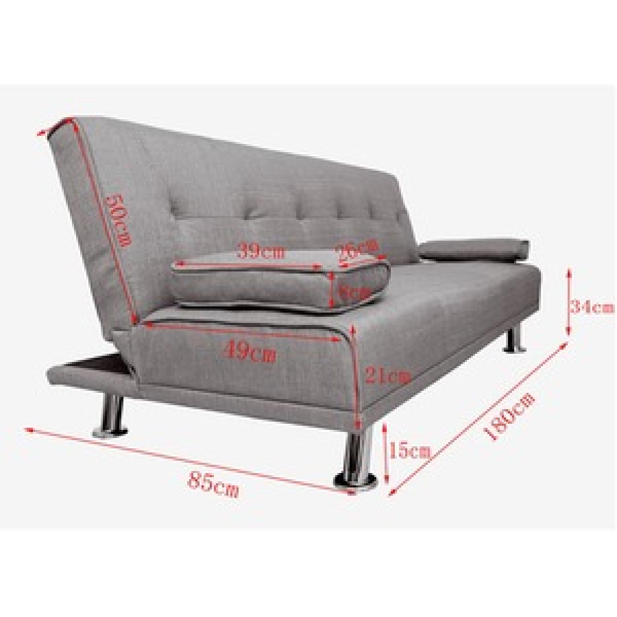 Our Fabric Sofa Bed Chunky utilises a 'click clack' mechanism and contemporary design to produce an absolutely fantastic sofa at a truly unbelievable price point. Finished with beautiful steel feet and luxury linen fabric, this sofa is not only beautiful and modern but also practical. To turn this sofa into a sofa bed simply pulls forward the back until you hear the click and then allow the back to lay down flat. To then turn it back to a sofa simply raise the backrest back up until you hear the click again. Includes the 2 removable arm pads as shown in the picture, it can be taken off easily and to be used as pillows. UK fire safety regulated.