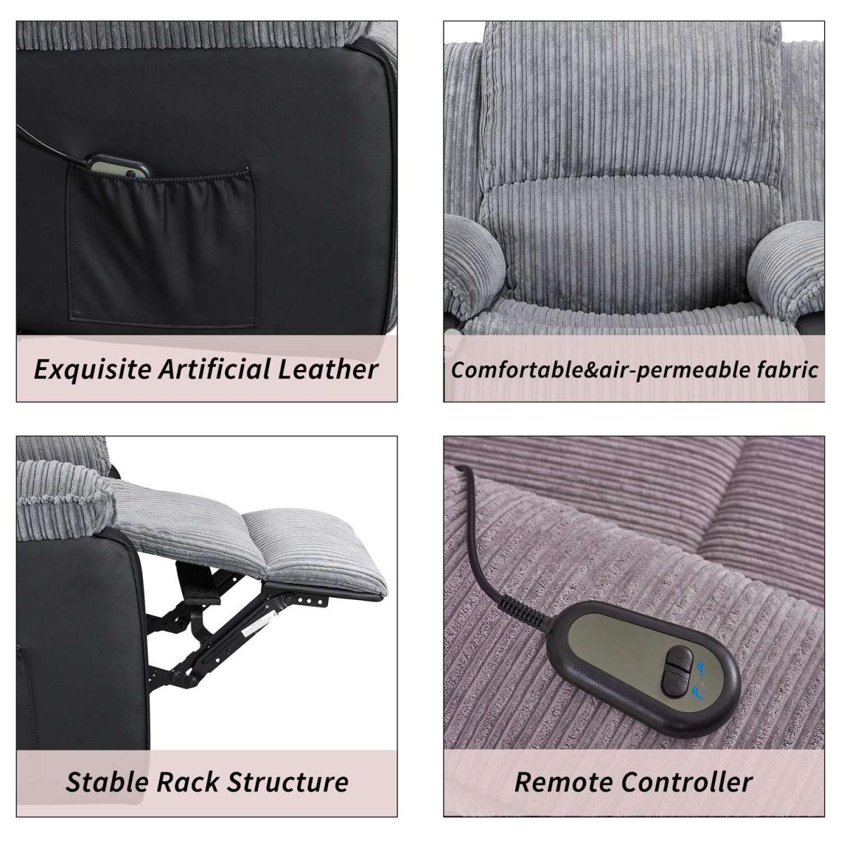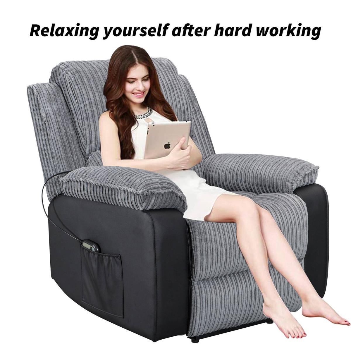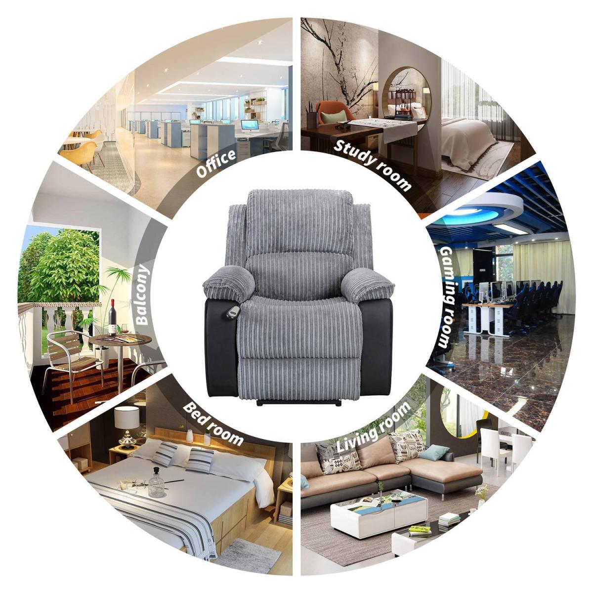Modern design, upholstered in soft feel luxury faux leather and stripe fabric. This reclining chair is a perfect solution for you to relax and get rid of the stresses of the day. Flat packed and easy self-assembly. UK Fire Retardant Foam and PU. Suitable for both home and office use. Ideal for the home cinema, lounge, nail salon games room, TV room etc.