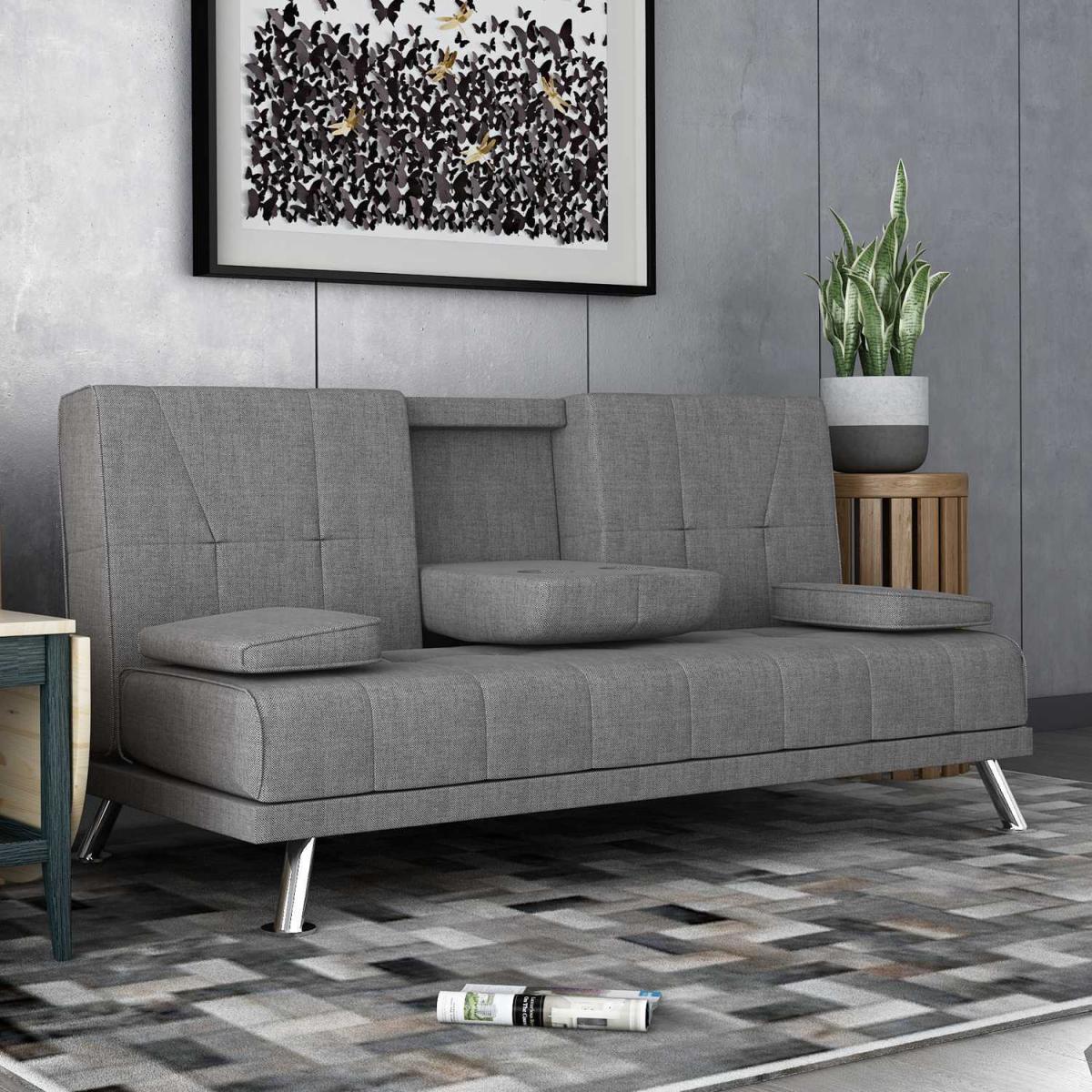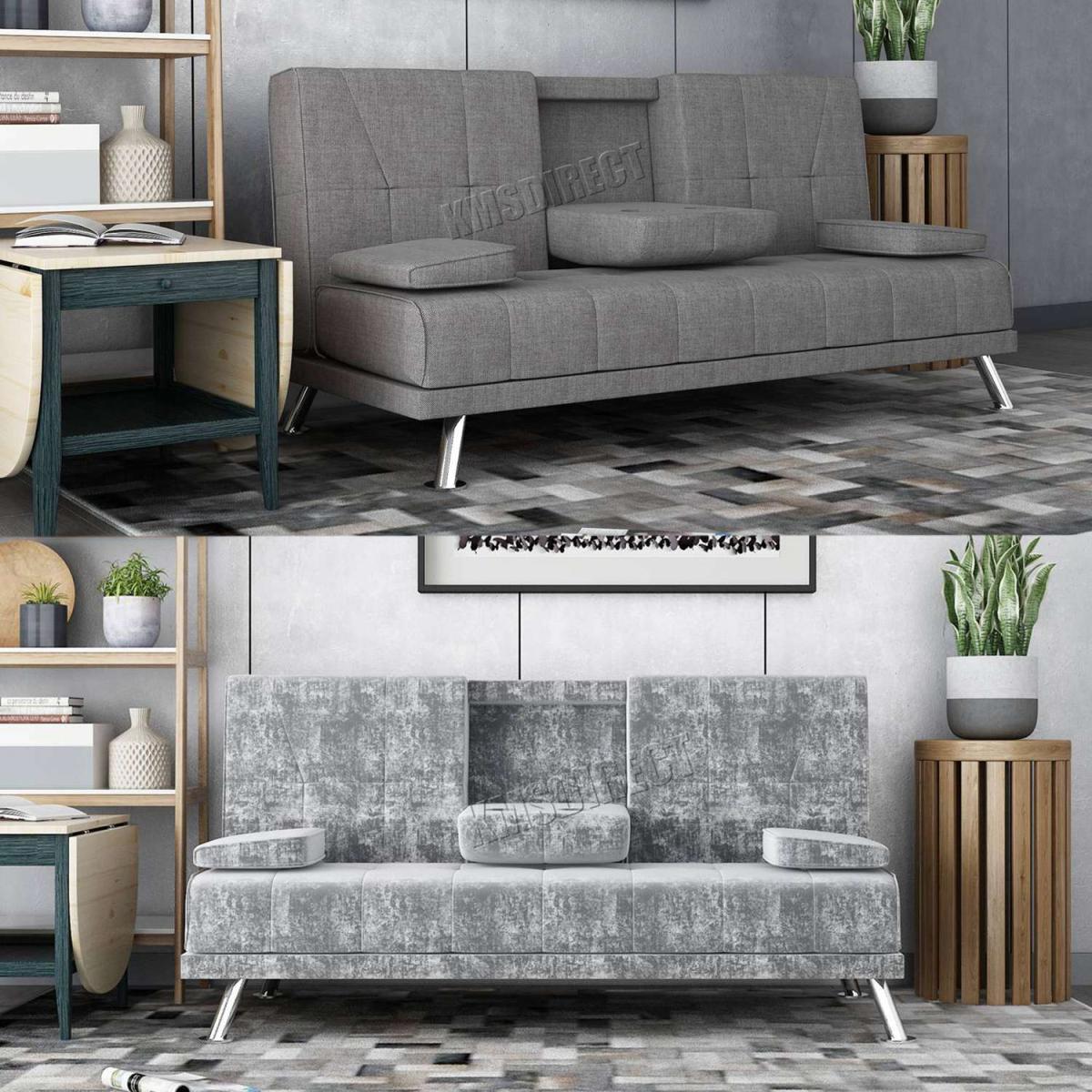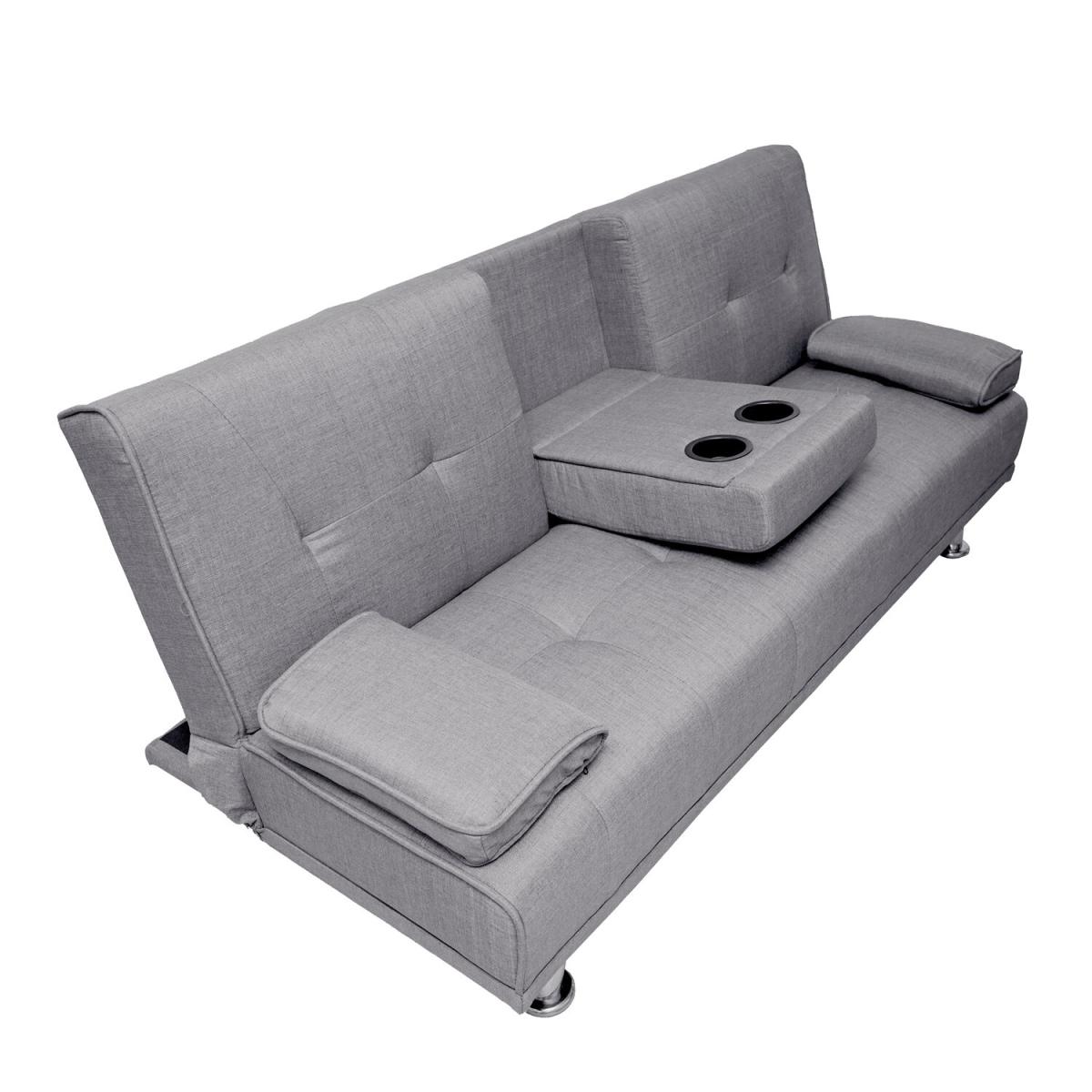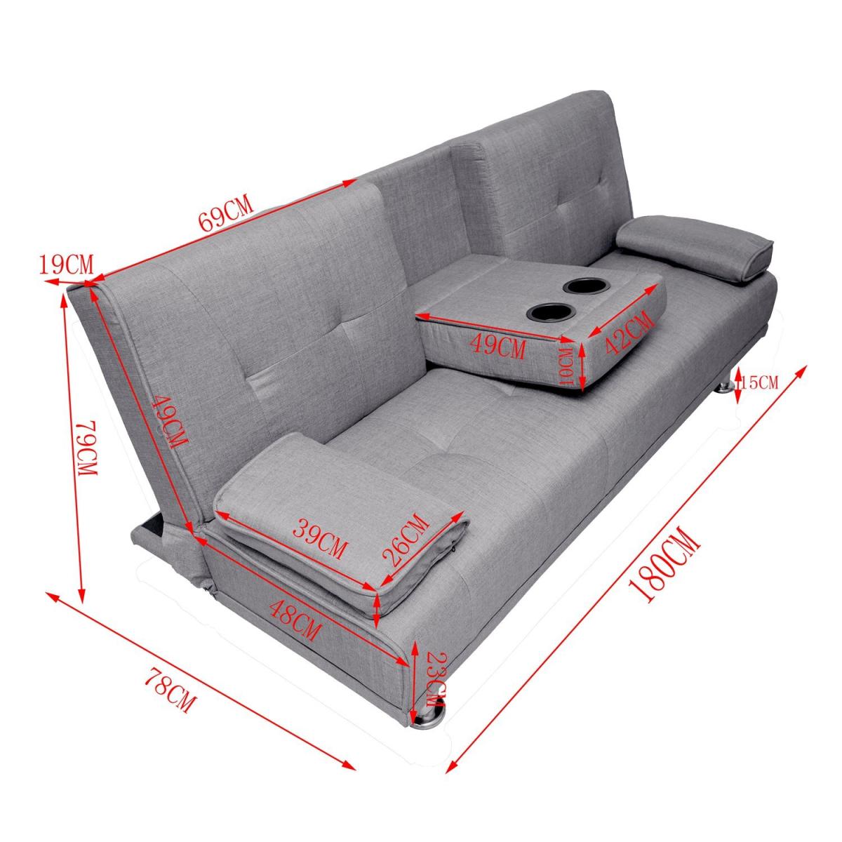 Modern popular design, Fashionable and highly functional. Our Fabric Sofa Bed Manhattan utilises a 'click clack' mechanism and contemporary design to produce an absolutely fantastic sofa at a truly unbelievable price point. Finished with beautiful steel feet and luxury linen fabric then completed with a pull-down drinks table, this sofa is not only beautiful and modern but also practical. To turn this sofa into a sofa bed simply pulls forward the back until you hear the click and then allow the back to lay down flat. To then turn it back to a sofa simply raise the back rest back up until you hear the click again. Includes the 2 removable arm pads as shown in the picture, it can be taken off easily and to be used as pillows.