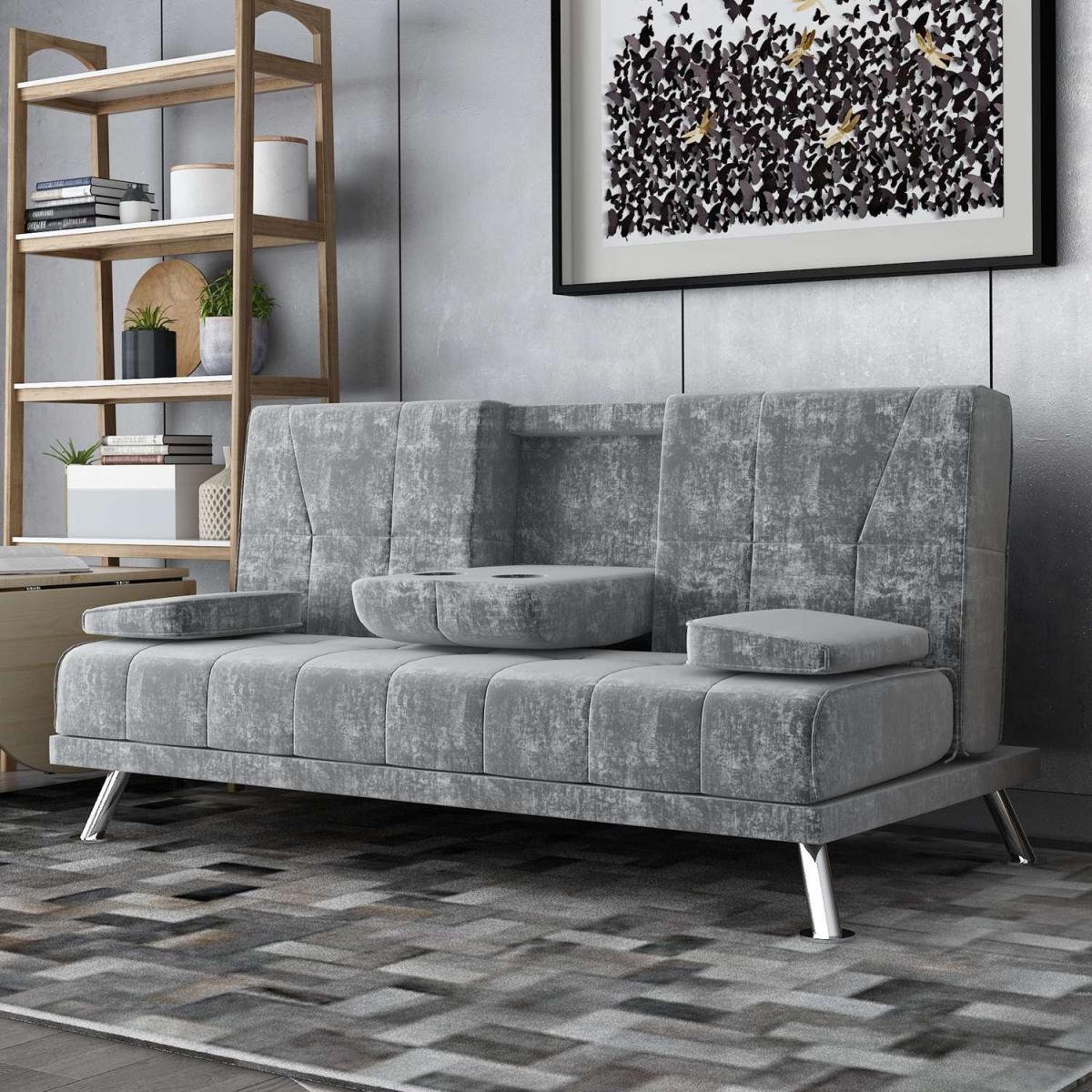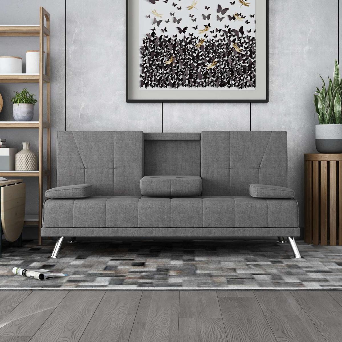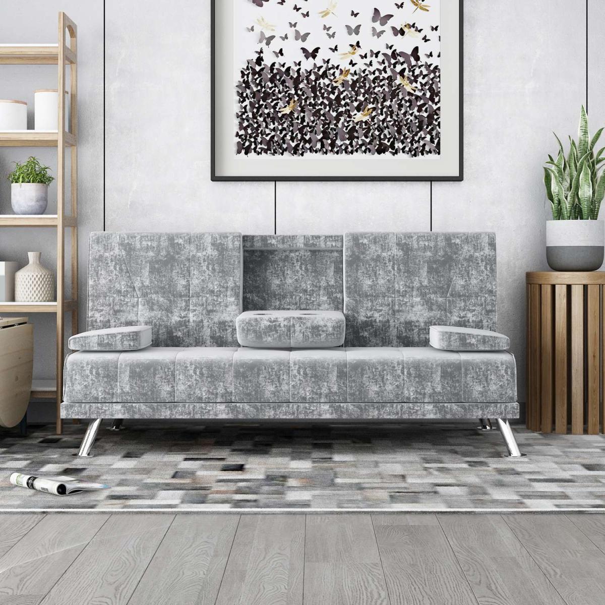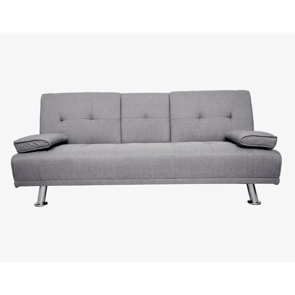Modern popular design, Fashionable and highly functional. Our Fabric Sofa Bed Manhattan utilises a 'click clack' mechanism and contemporary design to produce an absolutely fantastic sofa at a truly unbelievable price point. Finished with beautiful steel feet and luxury linen fabric then completed with a pull-down drinks table, this sofa is not only beautiful and modern but also practical. To turn this sofa into a sofa bed simply pulls forward the back until you hear the click and then allow the back to lay down flat. To then turn it back to a sofa simply raise the back rest back up until you hear the click again. Includes the 2 removable arm pads as shown in the picture, it can be taken off easily and to be used as pillows.