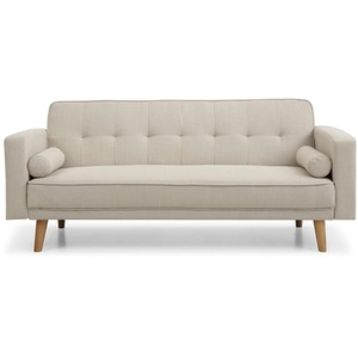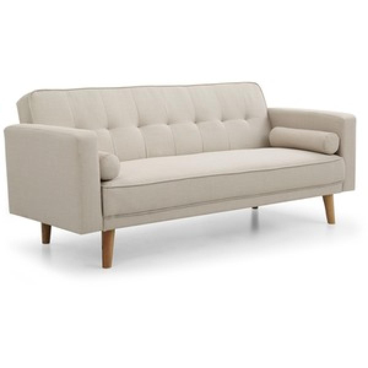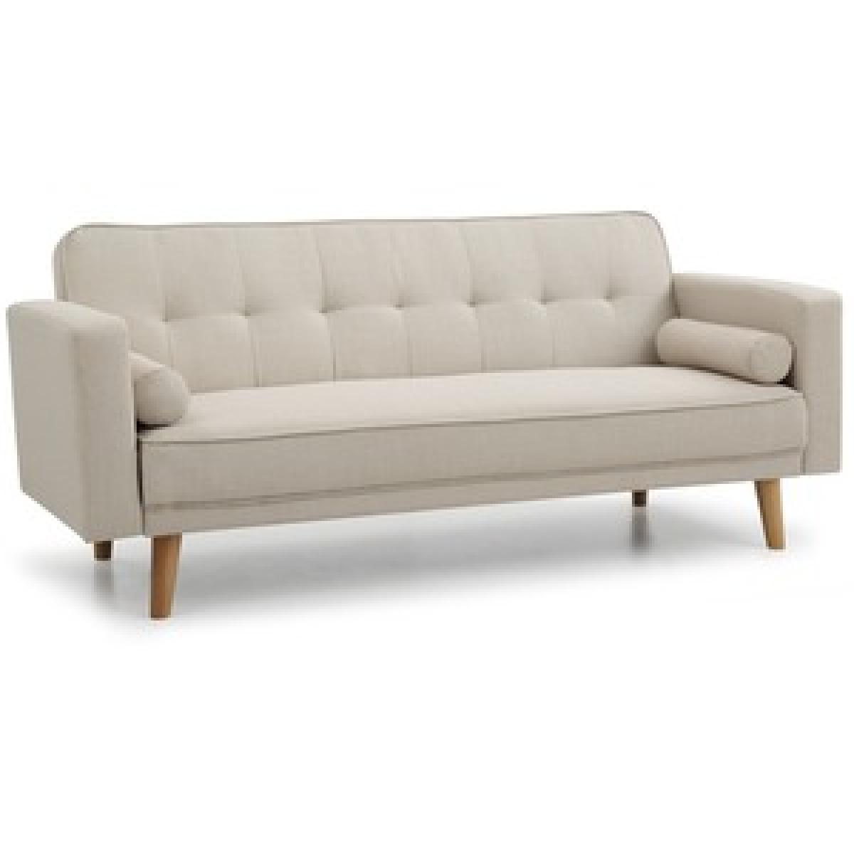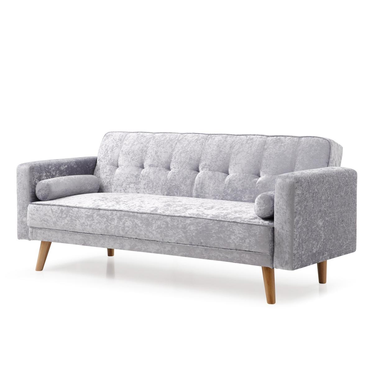 Modern popular design. Fashionable and highly functional. Great durability. A super stylish 3 seater sofa bed upholstered in high-quality fabric, in your choice of contemporary Coffee, Beige, Grey or Velvet Grey. This sofa bed is versatile and practical, it also features a clever click-clack mechanism that allows it to be positioned in 3 ways-upright, reclined or flat. A great solution for small living spaces. Flat packed. Easily assembled. UK fire safety regulated.