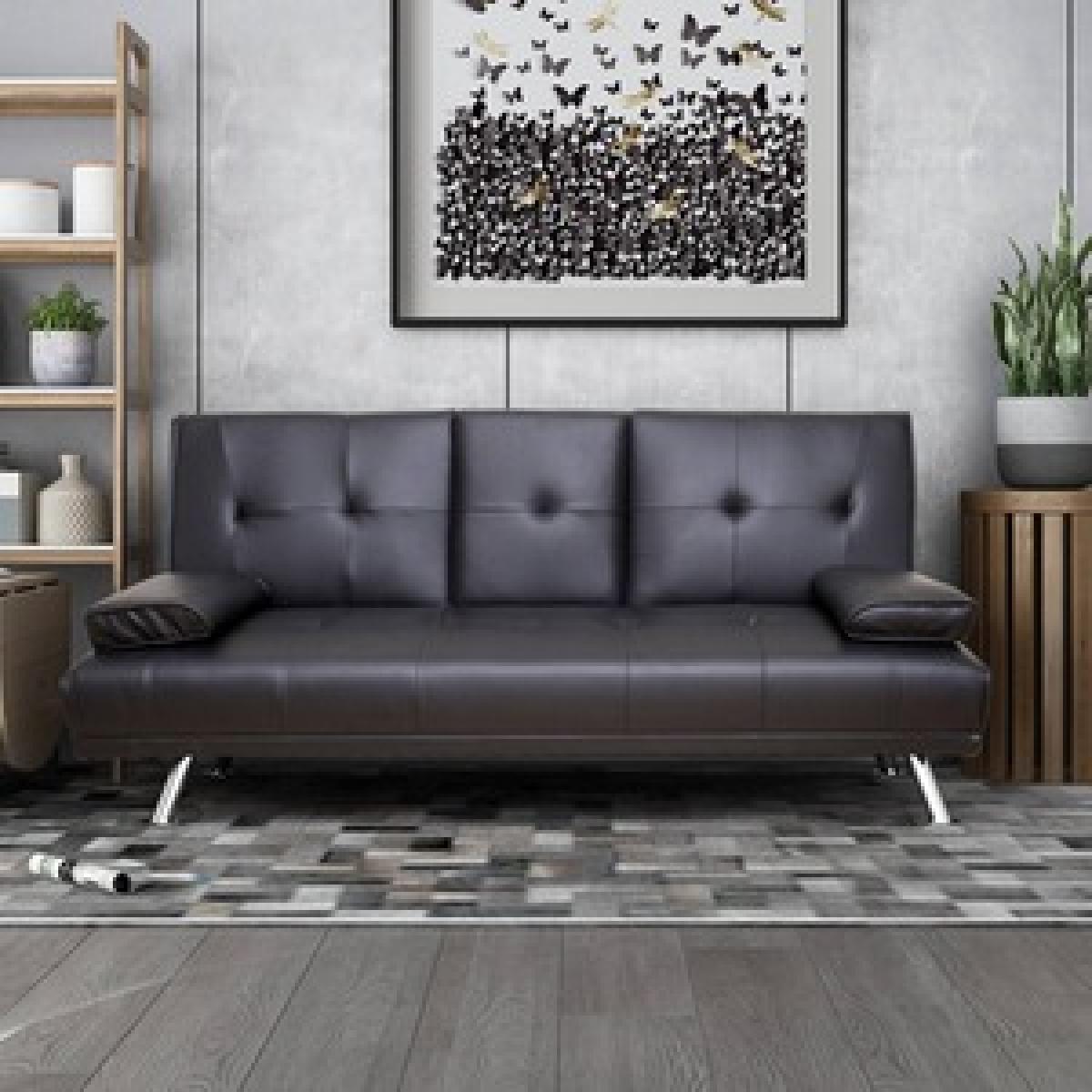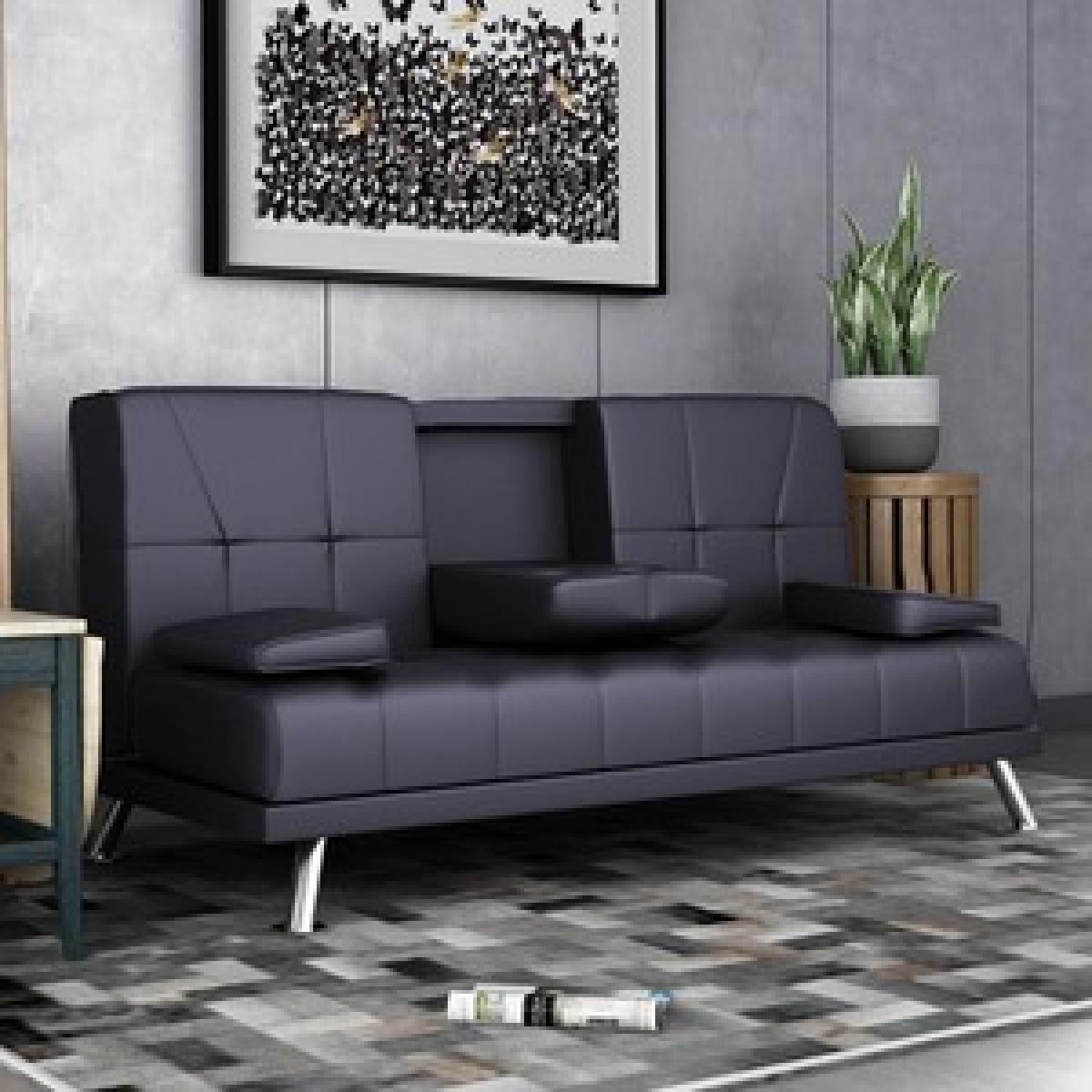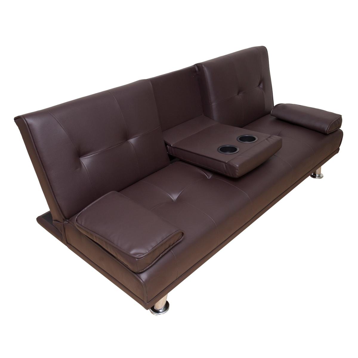 The design of the sofa bed is modish and greatly suitable for a contemporarily styled room decoration. It is not only provided with a space to sit upon in the daytime but will also serve you as a bed to rest upon at night. It possesses a centre cup holder and cushions to facilitate your relatives and friends amazingly. It is supported by four shiny steel pilings. Great durability and stain-resistant properties. Minor assembly required. A great solution for small living spaces. Includes the 2 removable arm pads as shown in the picture, it can be taken off easily and to be used as pillows
