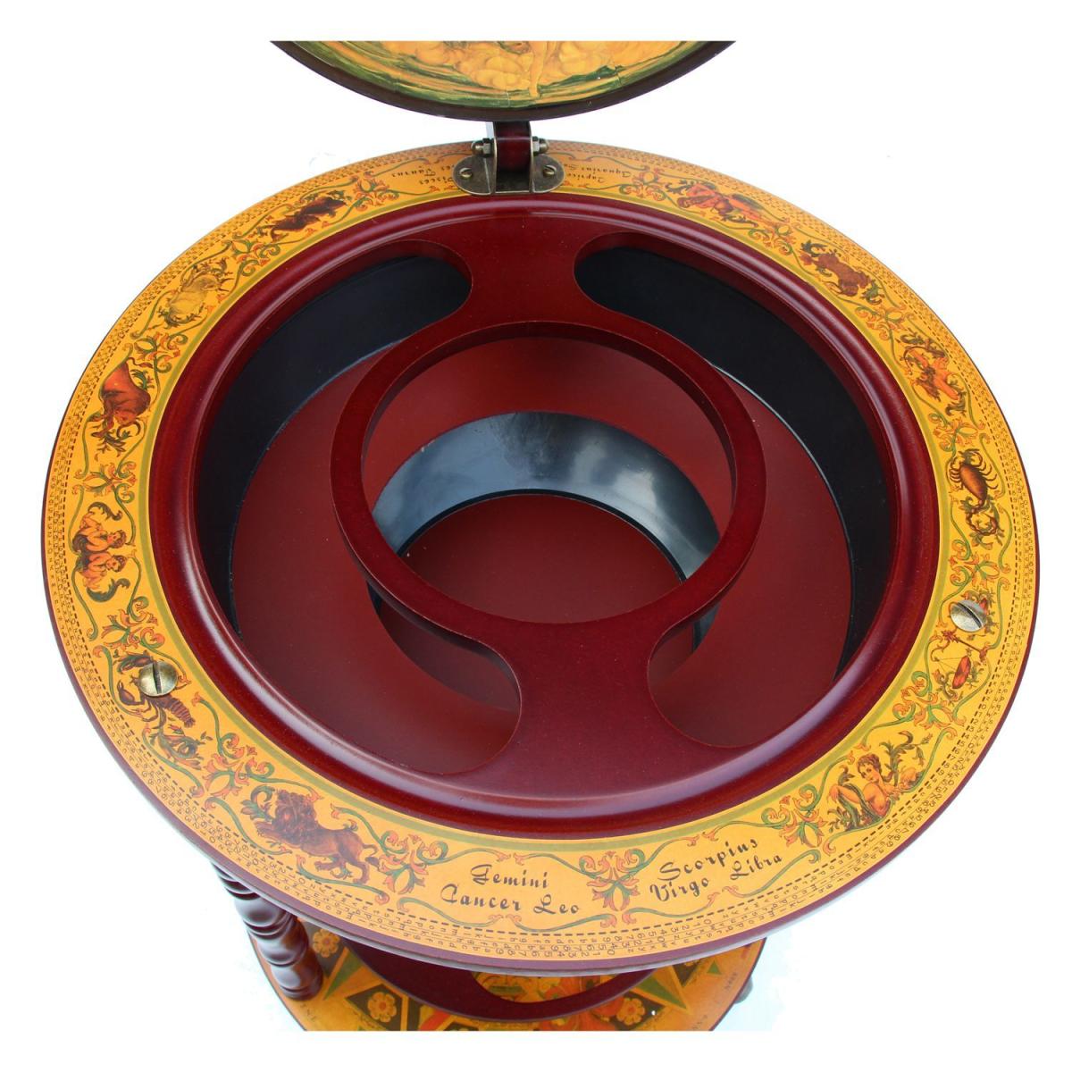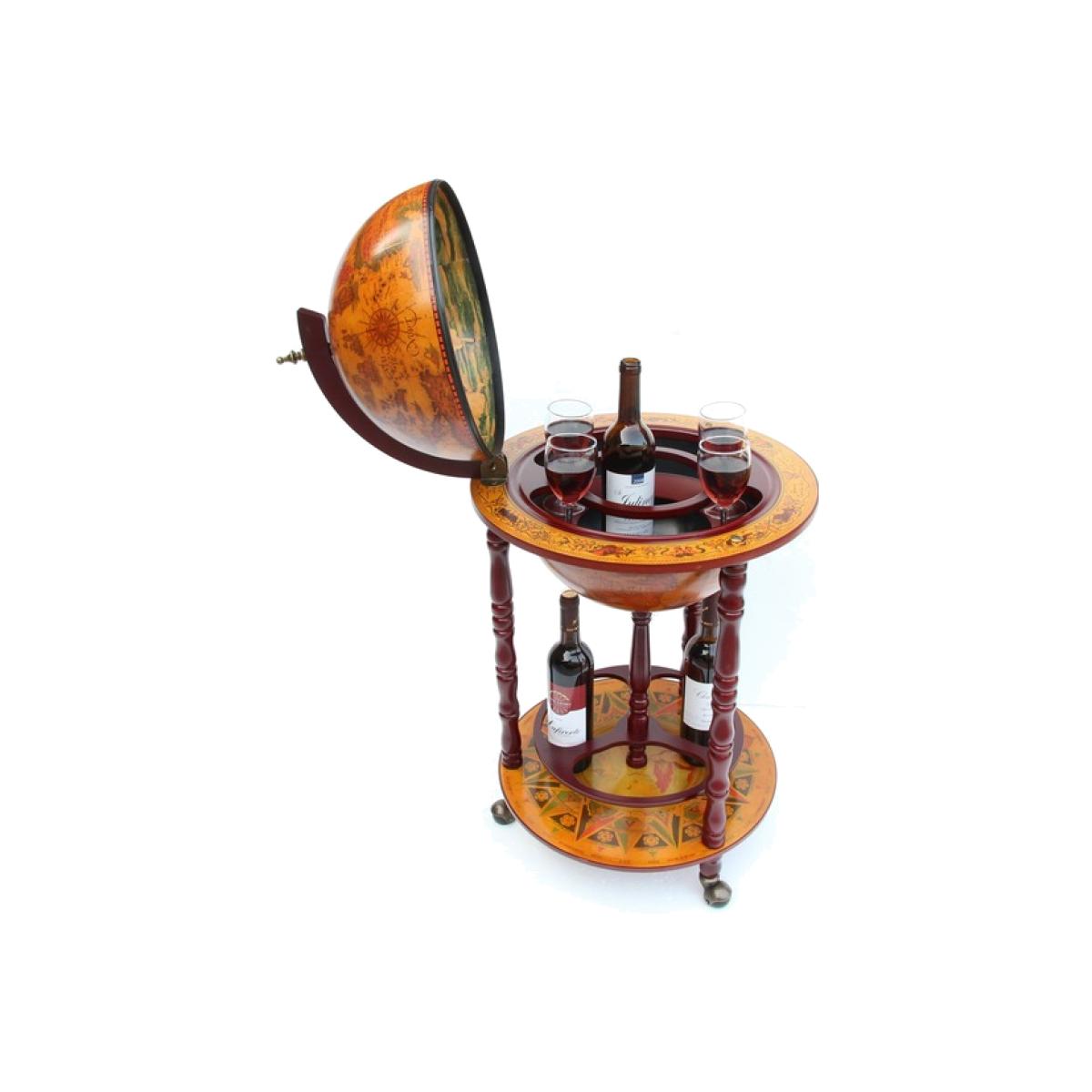 Feel like a total James Bond Villain with our globe-shaped mini bar! After a long day conquering the world outside, sot back in your quilted leather chair put your feet up on the desk and have your partner in crime flick open the globe to enjoy a shot of the finest straight whisky! Made from solid woods, our host trolley is no one-off trivia gift! It is built to last. By using strong castor wheels and strong wooden legs our globe is designed to outlive any other piece of home furniture you possess! Fits all types of bottles and glasses. Depending on size our globe can hold between 5 -10 bottles/glasses!