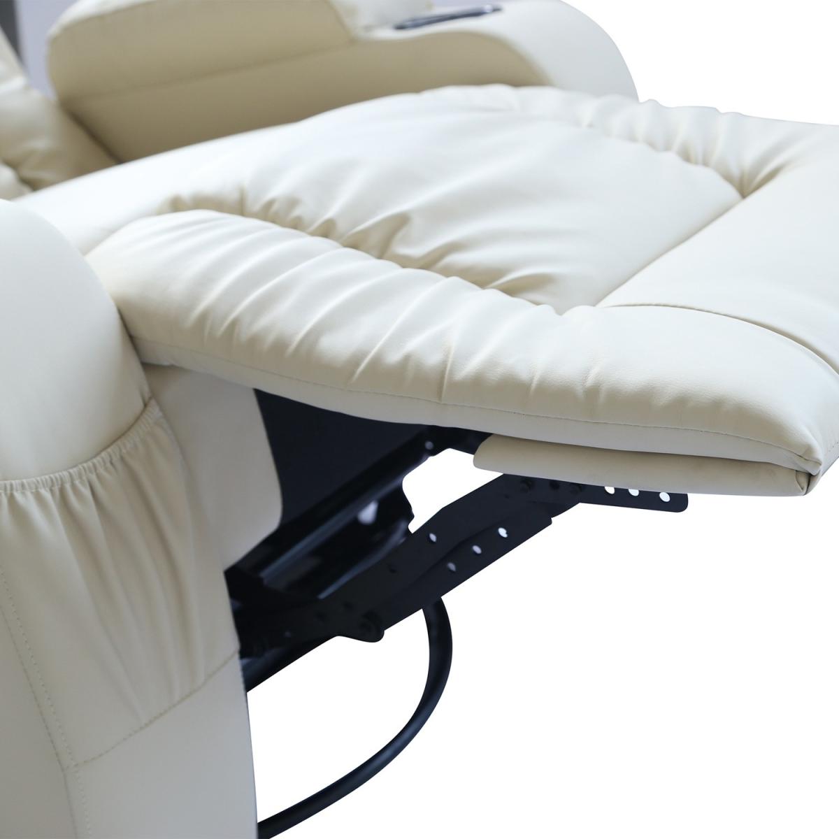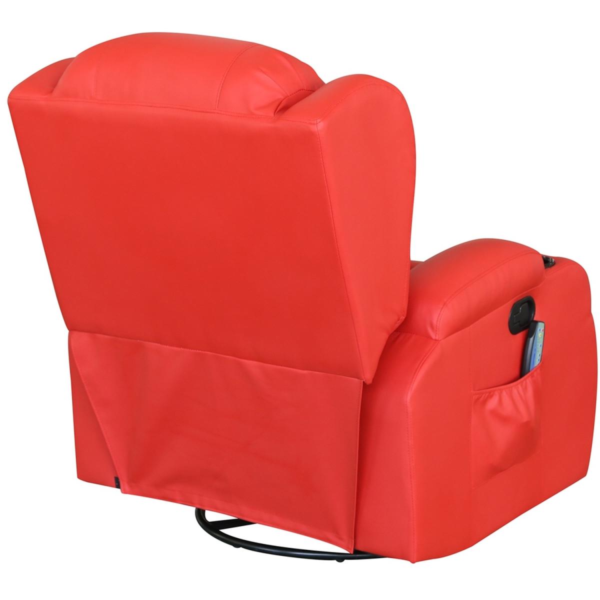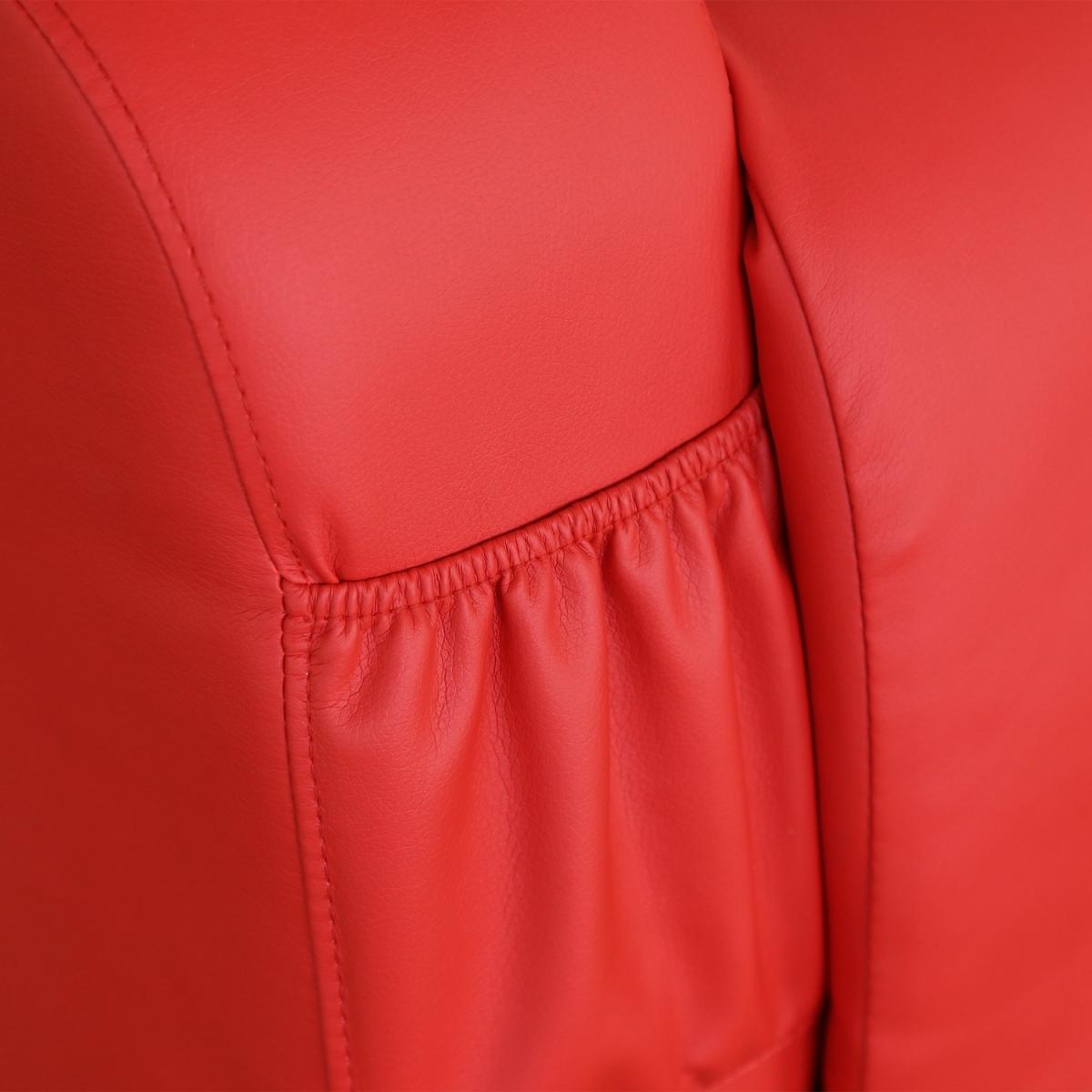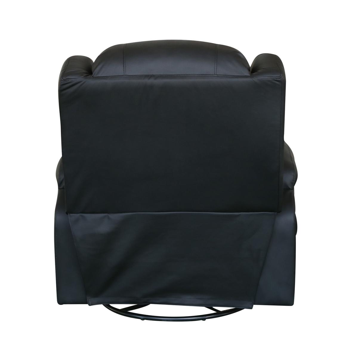 Pull the latch mechanism on the side turn the chair into a recliner and then you can apply the massage and heat just for relaxing or easing aches and pains and helping circulation. Just for fun, the chair is fitted with a cup/bottle holder in each arm. Easy to operate. Fully faced with thick bonded leather on the backrest and the seat. We do not use cheap PU or PVC (plastics) on the face of our chair. 9 in 1 features: recliner, rocker, massage, 360-degree swivel, heated seat, winged backrest for head and neck support, left-hand drink holder, right-hand drink holder, side storage pockets.