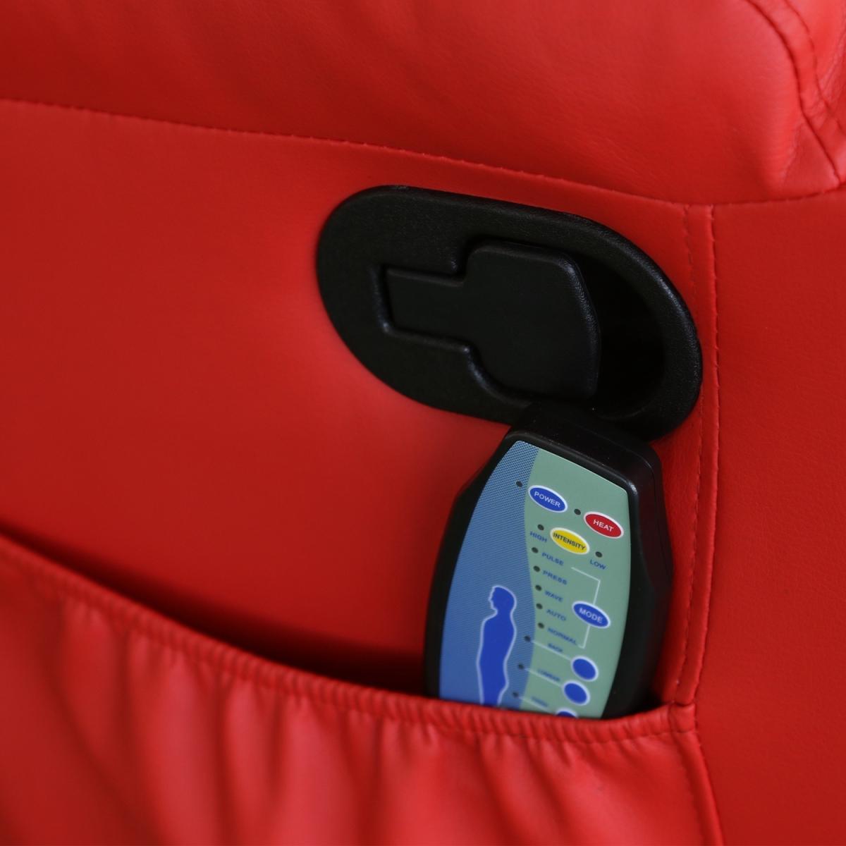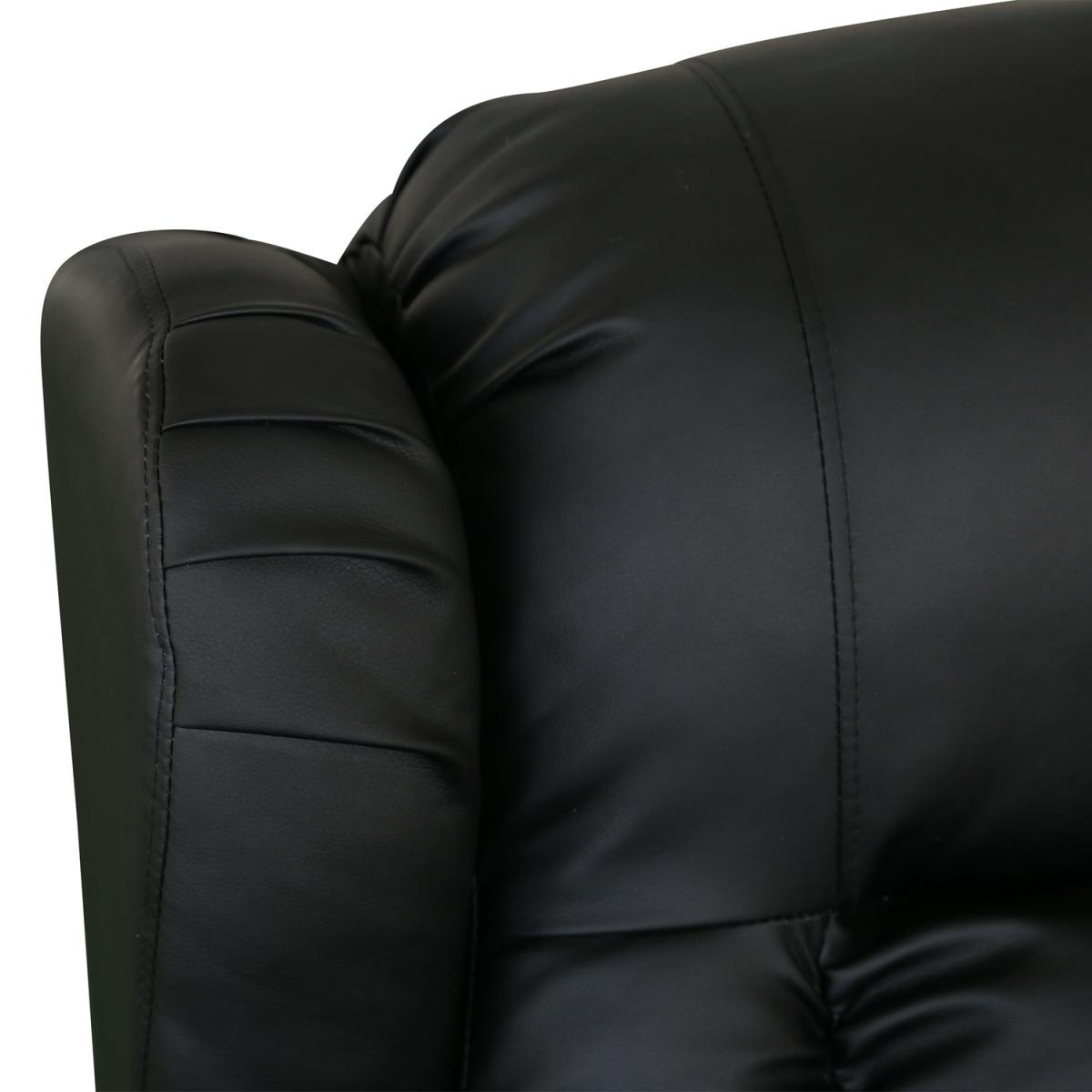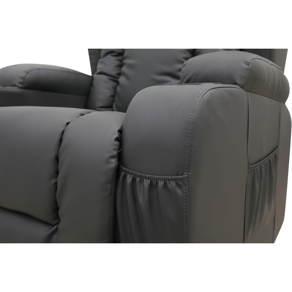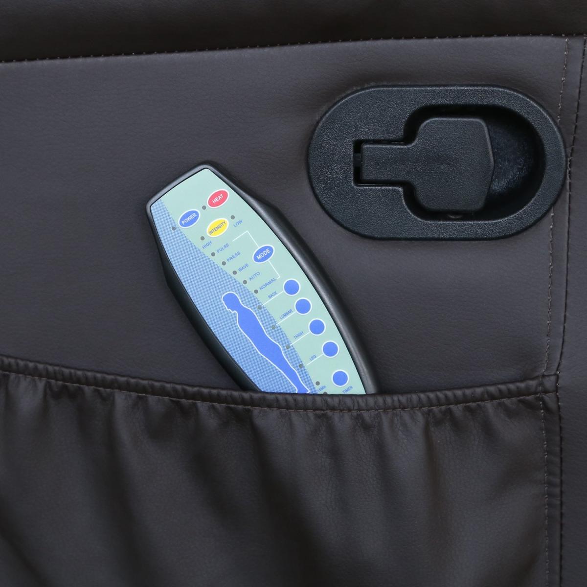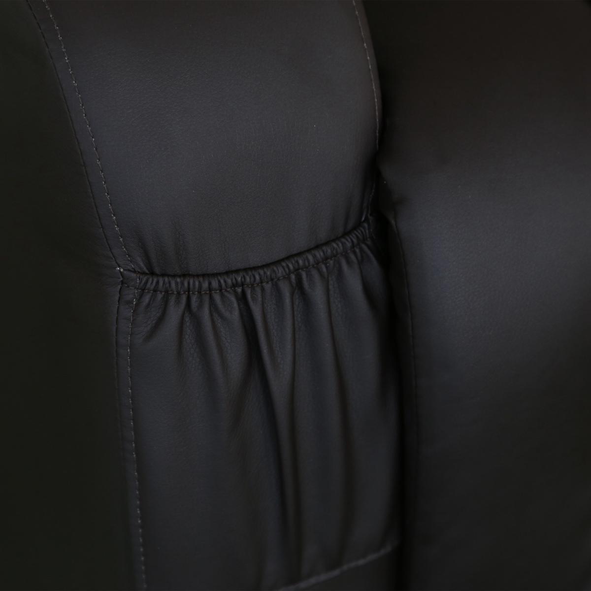 Pull the latch mechanism on the side turn the chair into a recliner and then you can apply the massage and heat just for relaxing or easing aches and pains and helping circulation. Just for fun, the chair is fitted with a cup/bottle holder in each arm. Easy to operate. Fully faced with thick bonded leather on the backrest and the seat. We do not use cheap PU or PVC (plastics) on the face of our chair. 9 in 1 features: recliner, rocker, massage, 360-degree swivel, heated seat, winged backrest for head and neck support, left-hand drink holder, right-hand drink holder, side storage pockets.