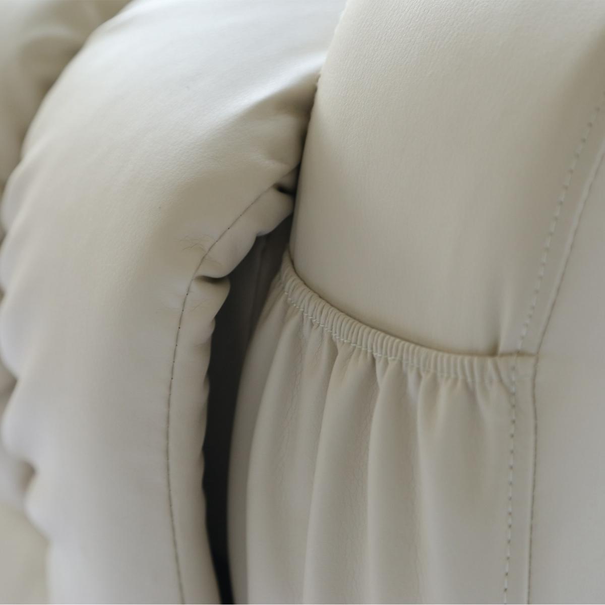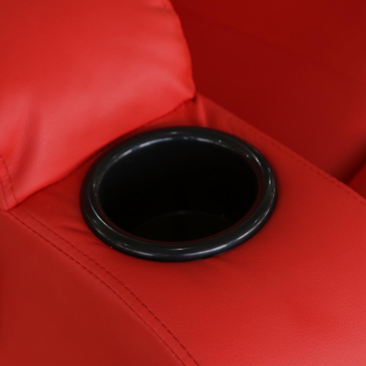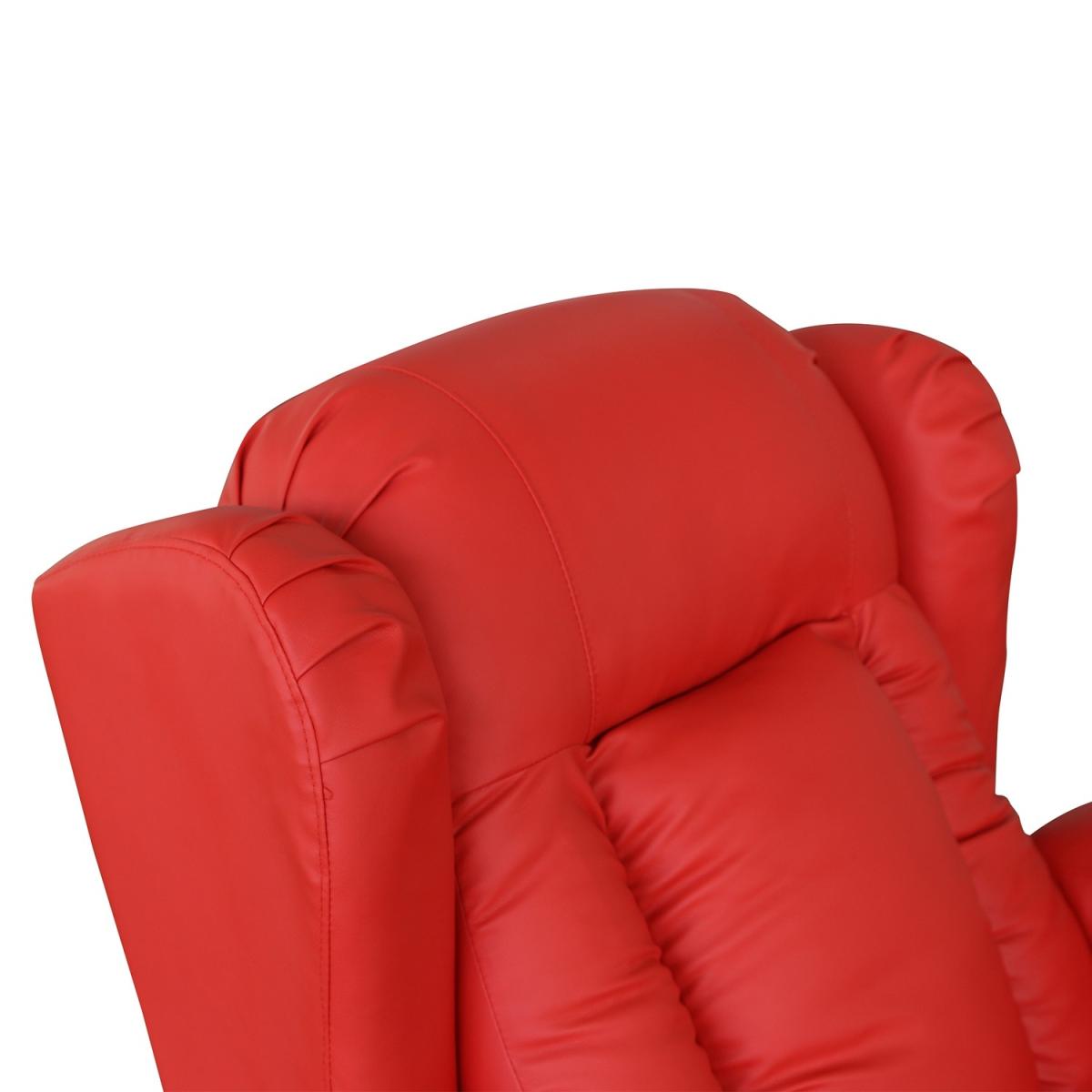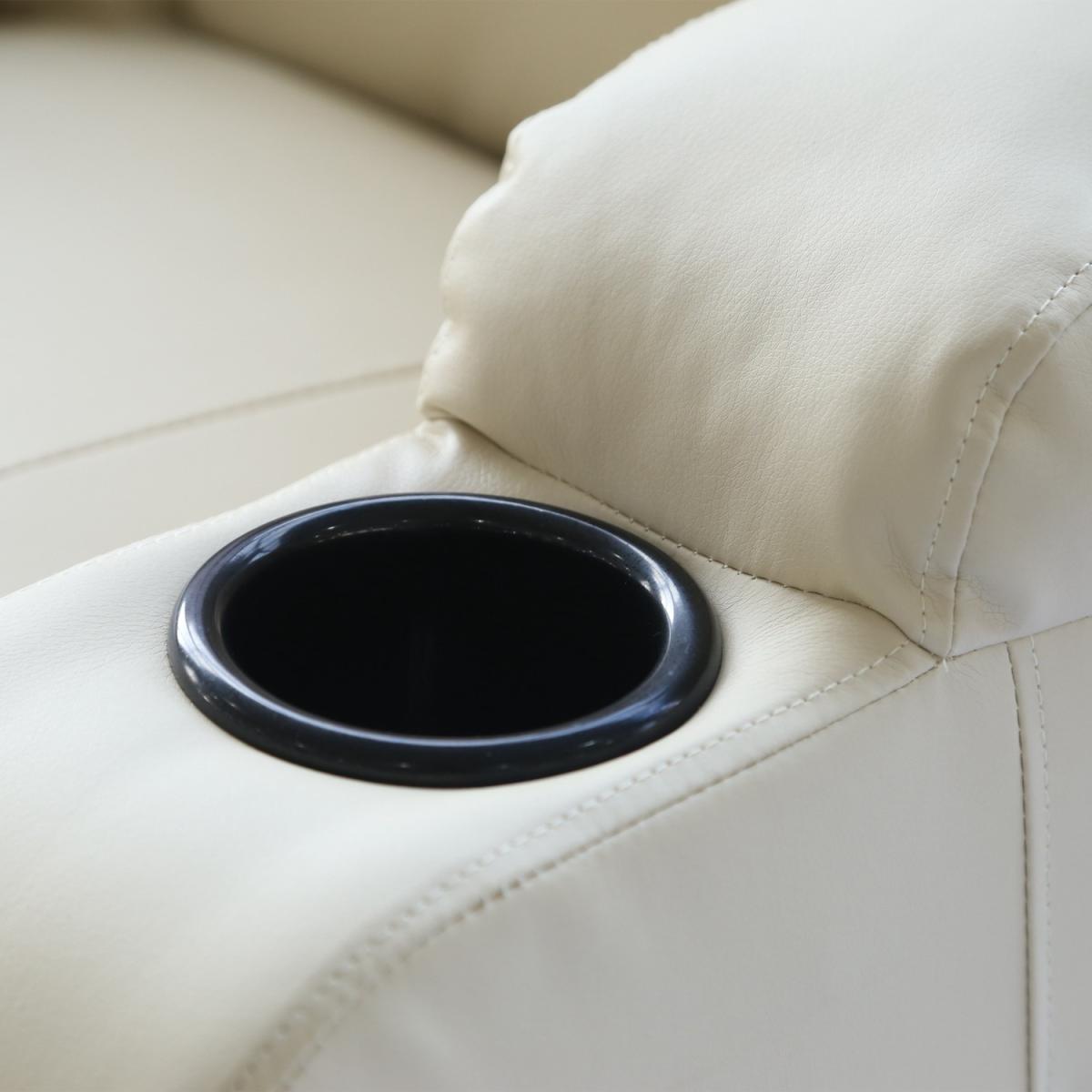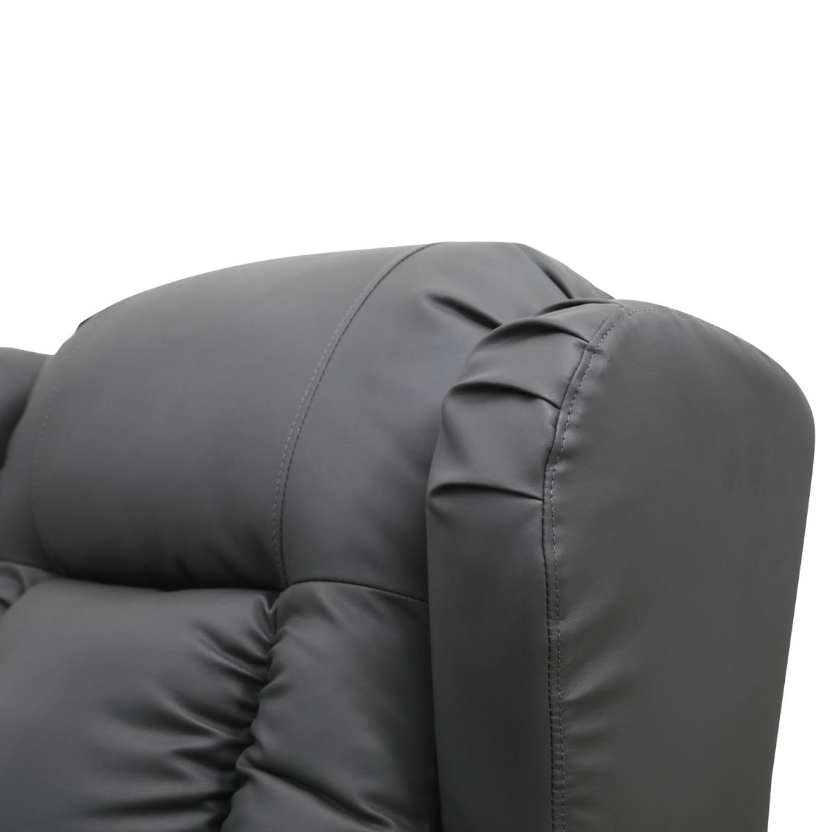 Pull the latch mechanism on the side turn the chair into a recliner and then you can apply the massage and heat just for relaxing or easing aches and pains and helping circulation. Just for fun, the chair is fitted with a cup/bottle holder in each arm. Easy to operate. Fully faced with thick bonded leather on the backrest and the seat. We do not use cheap PU or PVC (plastics) on the face of our chair. 9 in 1 features: recliner, rocker, massage, 360-degree swivel, heated seat, winged backrest for head and neck support, left-hand drink holder, right-hand drink holder, side storage pockets.