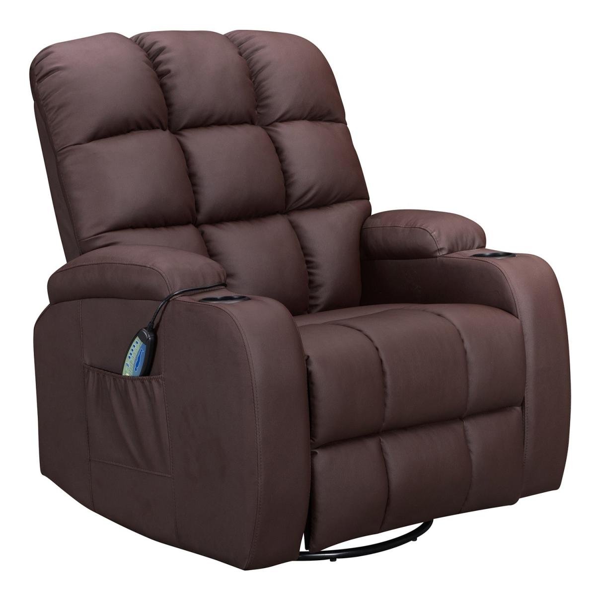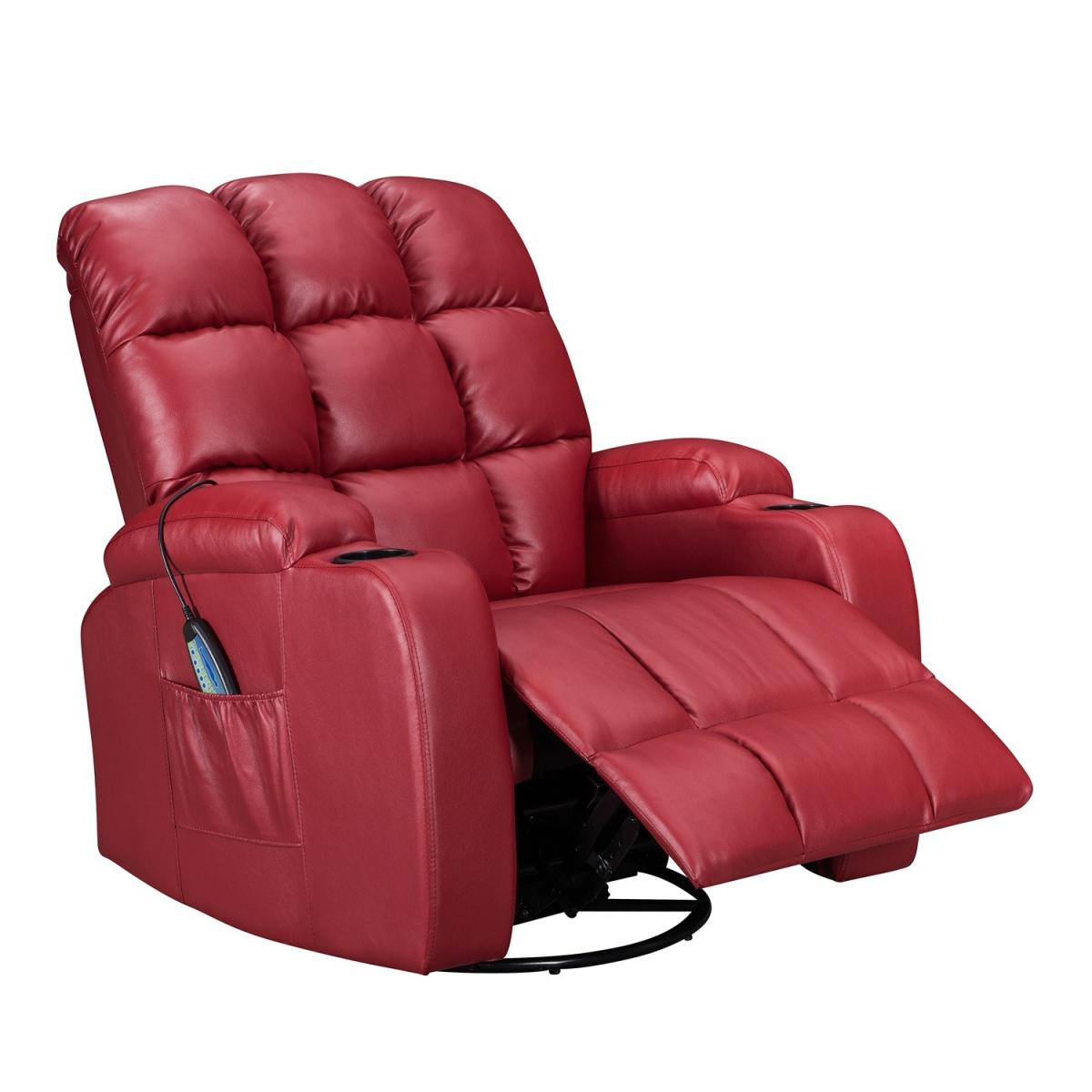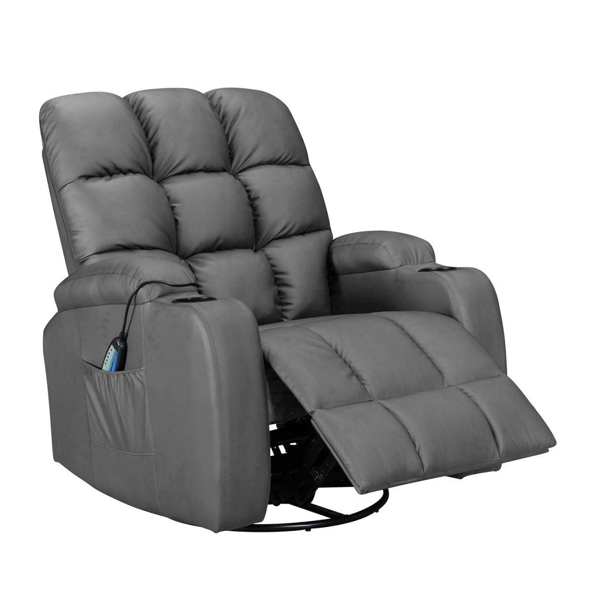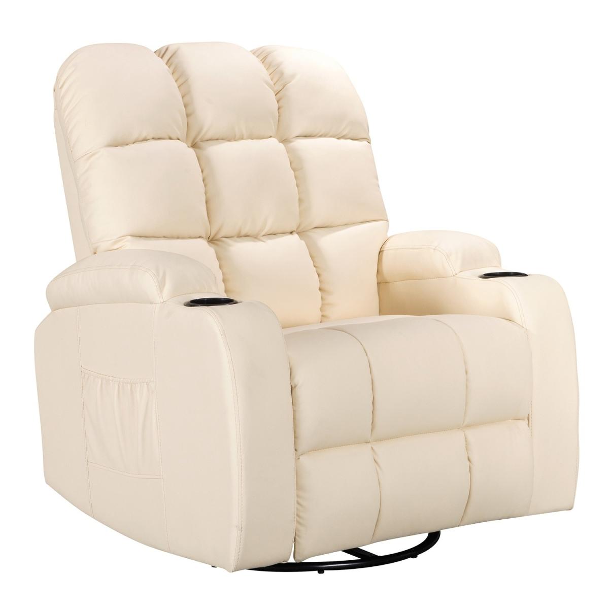 Pull the latch mechanism on the side turn the chair into a recliner and then you can apply the massage and heat just for relaxing or easing aches and pains and helping circulation. Additional functions are a 360-degree swivel and a backwards and forwards rocking action. Just for fun, the chair is fitted with a cup/bottle holder in each arm. Two side pockets have been added for storage (Remote control or magazines). 10 in 1 features: recliner, swing function, 8 point massage, padded armrest, 360-degree swivel, high back, 2 drink holder, padded headrest, 2 side storage pockets, heat function.