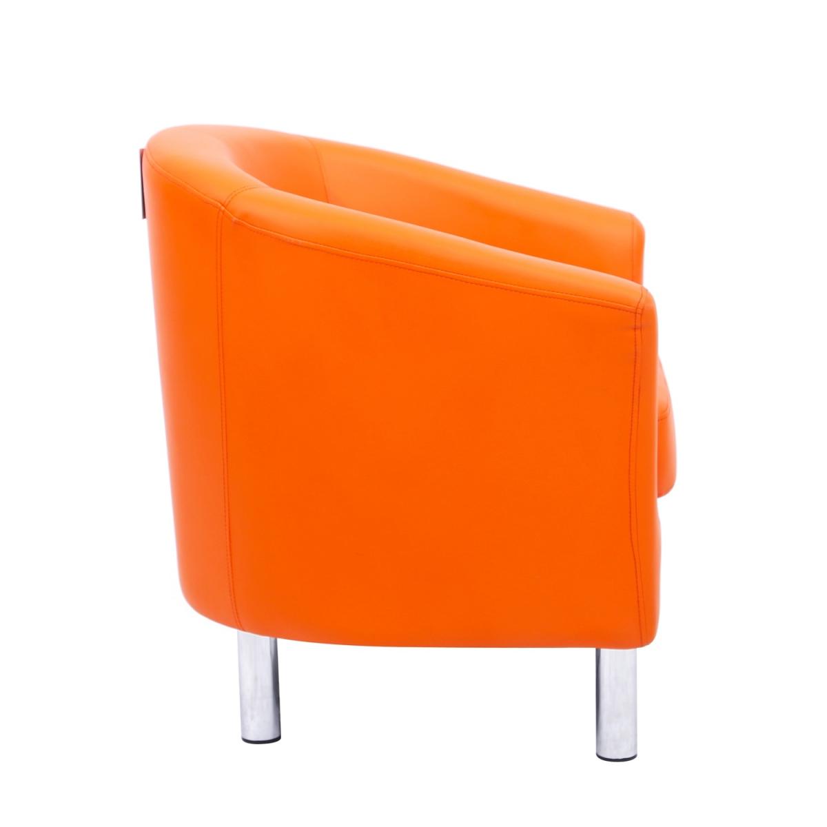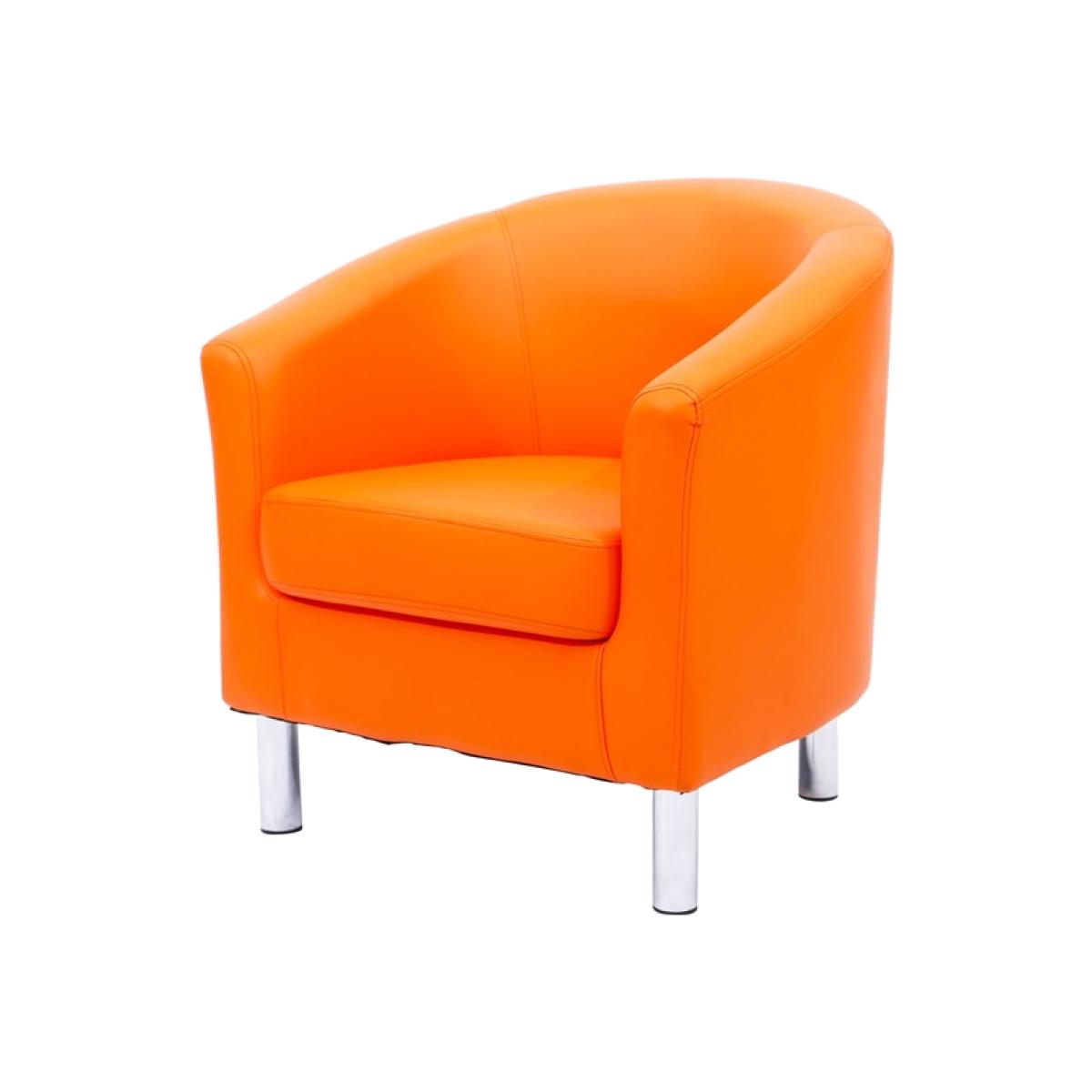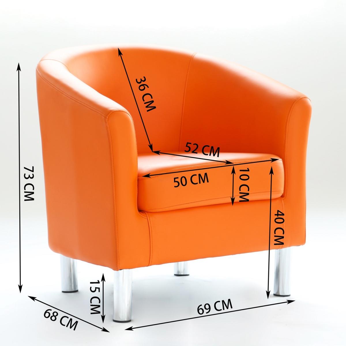 This modern tub chair with a smooth curved back and chrome coloured legs is crafted from high quality bonded leather and coated in a very high-quality film of PU to ensure durability and water resistance from spills and stains. Together with Foam padded cushion seat, the armchair offers a luxurious seating experience of the highest comfort. Every one of our chairs is individually hand made using traditional techniques for optimal quality. Simple assembly is needed with only four legs to attach which will take only a few minutes. This chair is designed for easy maintenance and daily use. This chair is suitable for clubs, dining rooms, hotels, guest houses, living rooms, offices, office reception, restaurants, study and of course anywhere else in the home or workplace, providing a stylish and modern look!