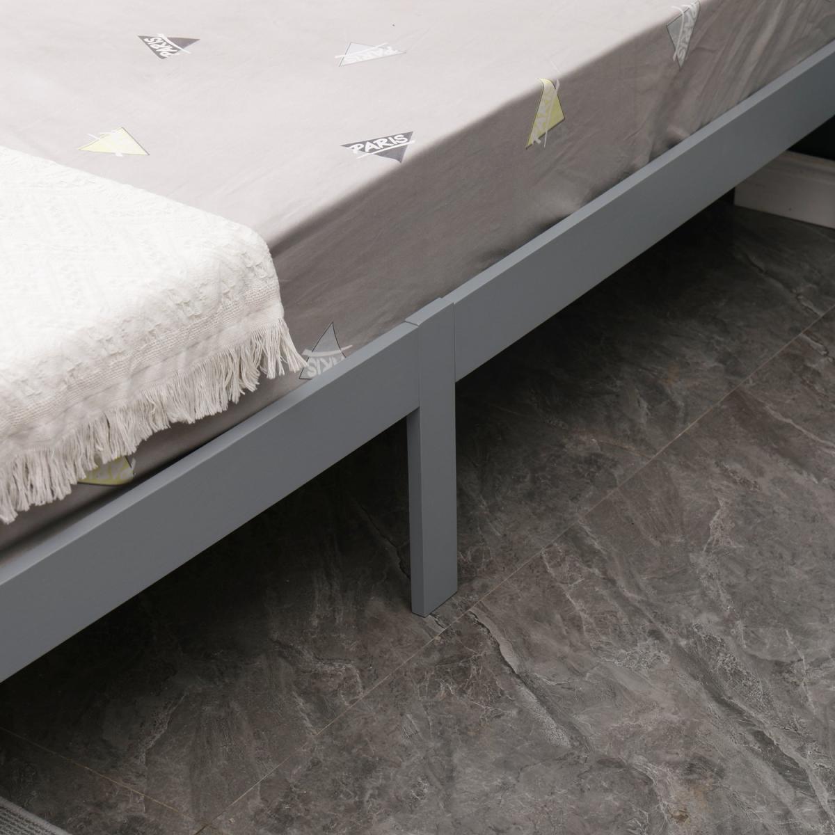 I really like this no footboard bed because of its clean, minimalist design that works well in modern and contemporary interiors. Its grey finish means it is versatile enough to complement a range of colour schemes, from soft neutral tones to bold accents. To style around this frame, consider layering in textured bedding and soft throws to add warmth, or pairing it with sleek bedside tables for a polished look. It's also a good choice for smaller bedrooms, as the open slatted design creates a sense of space. Practical tips include keeping the bedding simple and using colour pops in accessories like cushions or lamps to keep the overall look fresh and inviting.