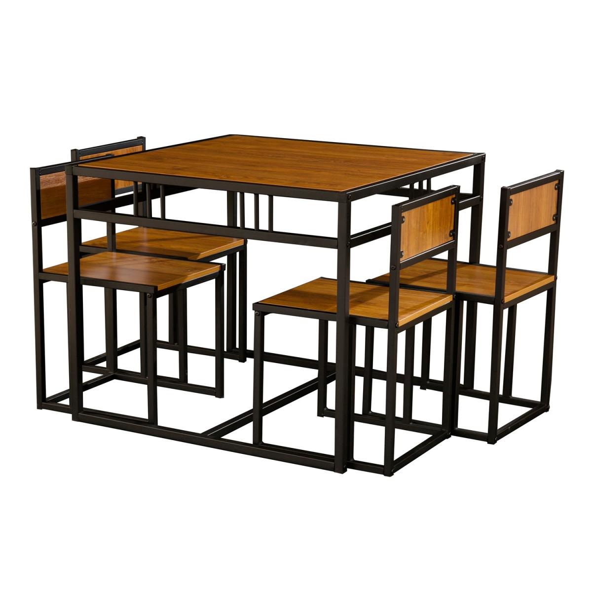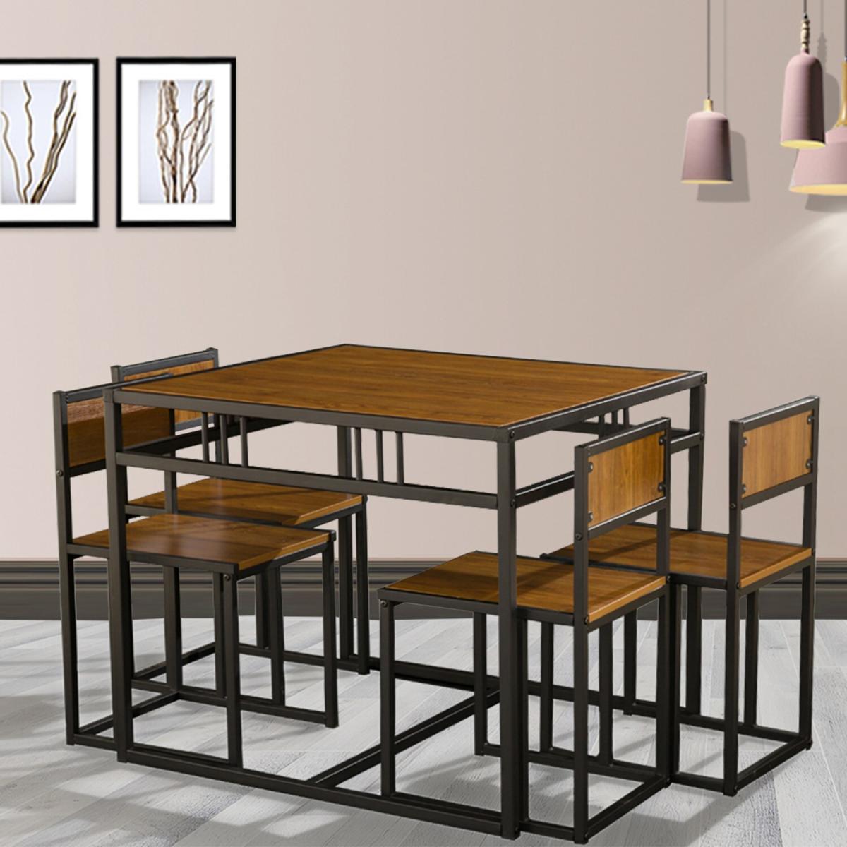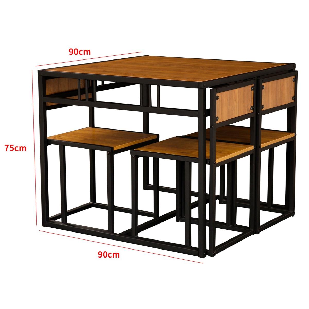 1 table and 4 chairs included in this dining set. Chairs can be tucked under the table when not in use to save more space. The compact design makes it ideal for small dining room, student accommodation, or even cafes and pubs. Flat-packed and easy to assemble, hardware and clear instructions included.