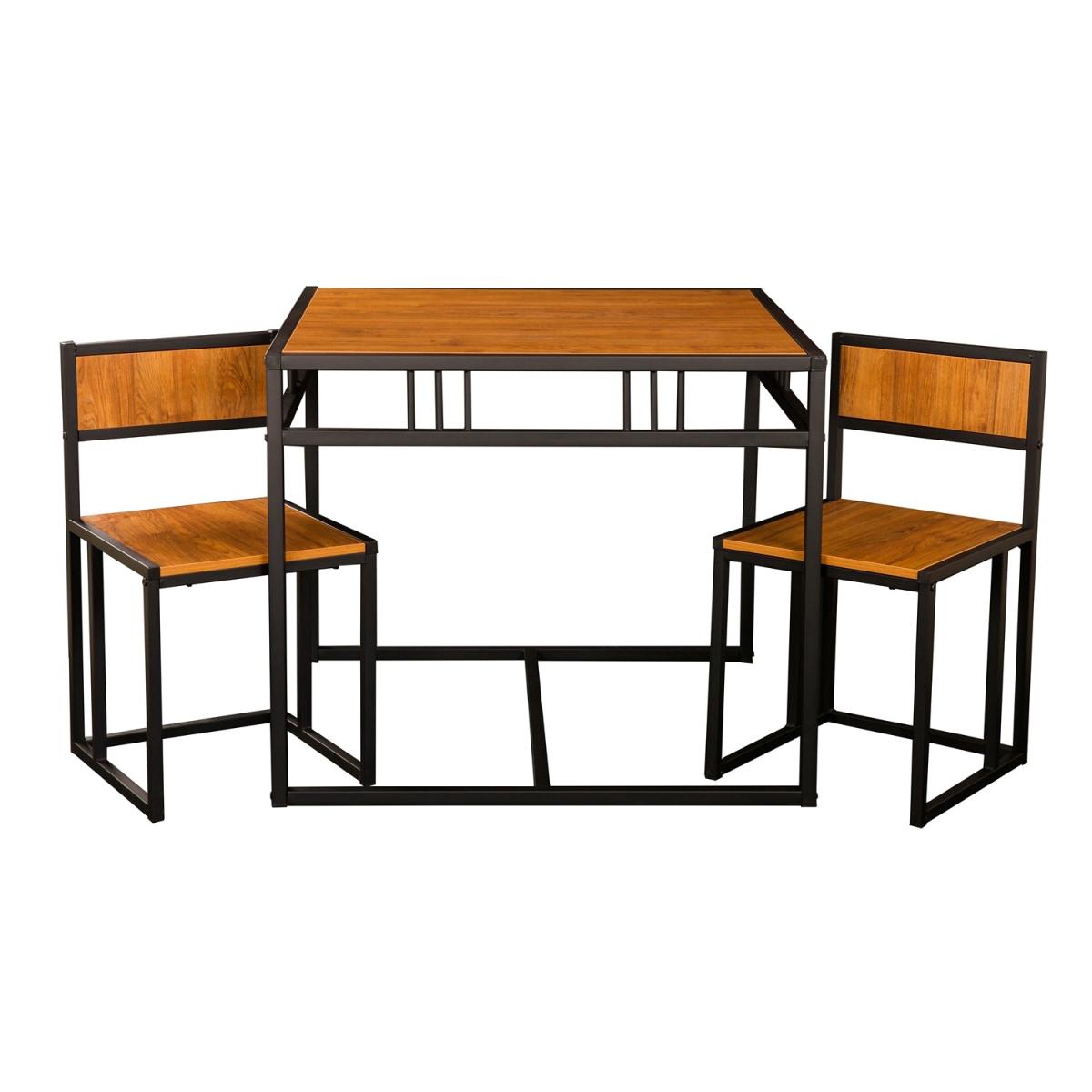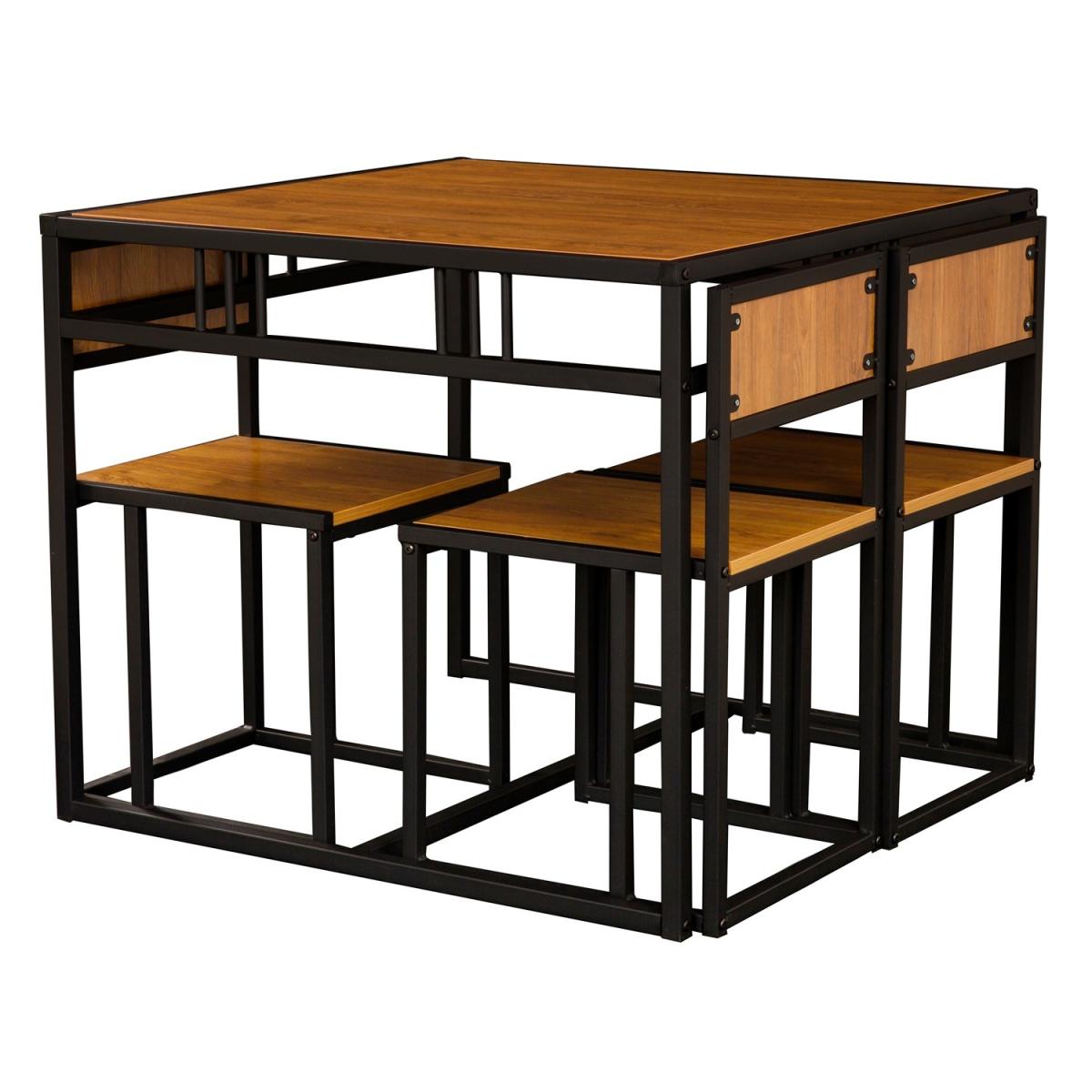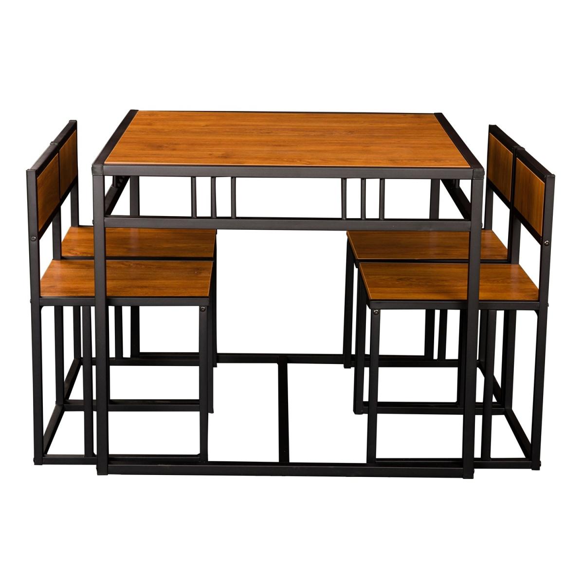 1 table and 4 chairs included in this dining set. Chairs can be tucked under the table when not in use to save more space. The compact design makes it ideal for small dining room, student accommodation, or even cafes and pubs. Flat-packed and easy to assemble, hardware and clear instructions included.