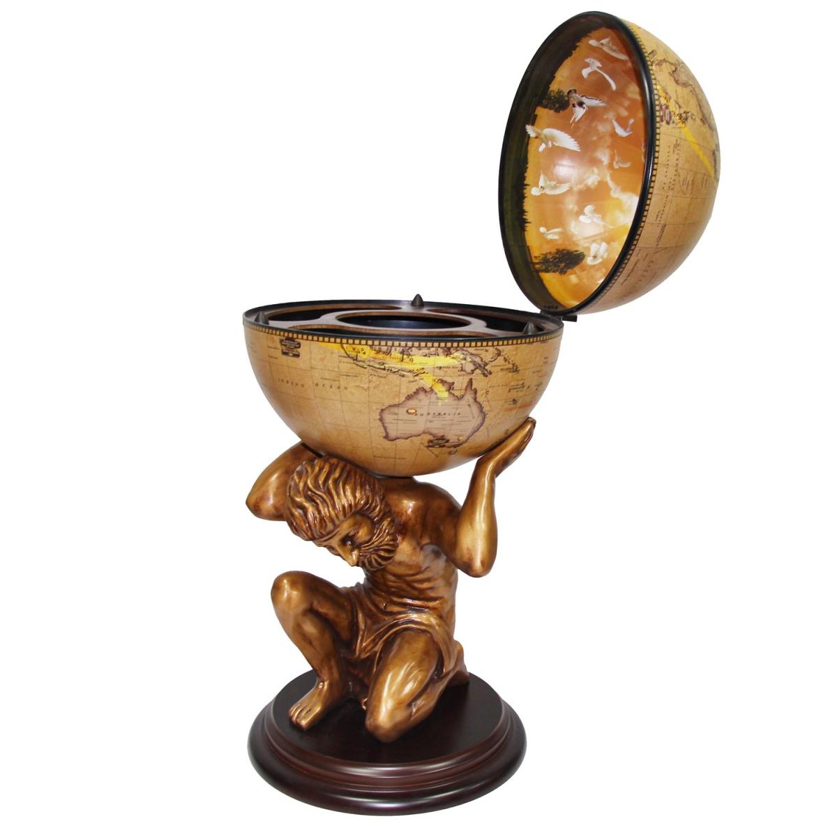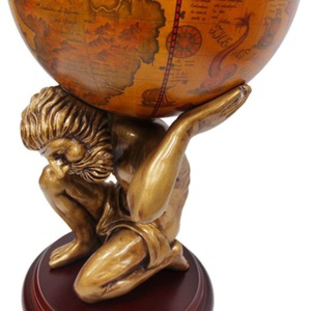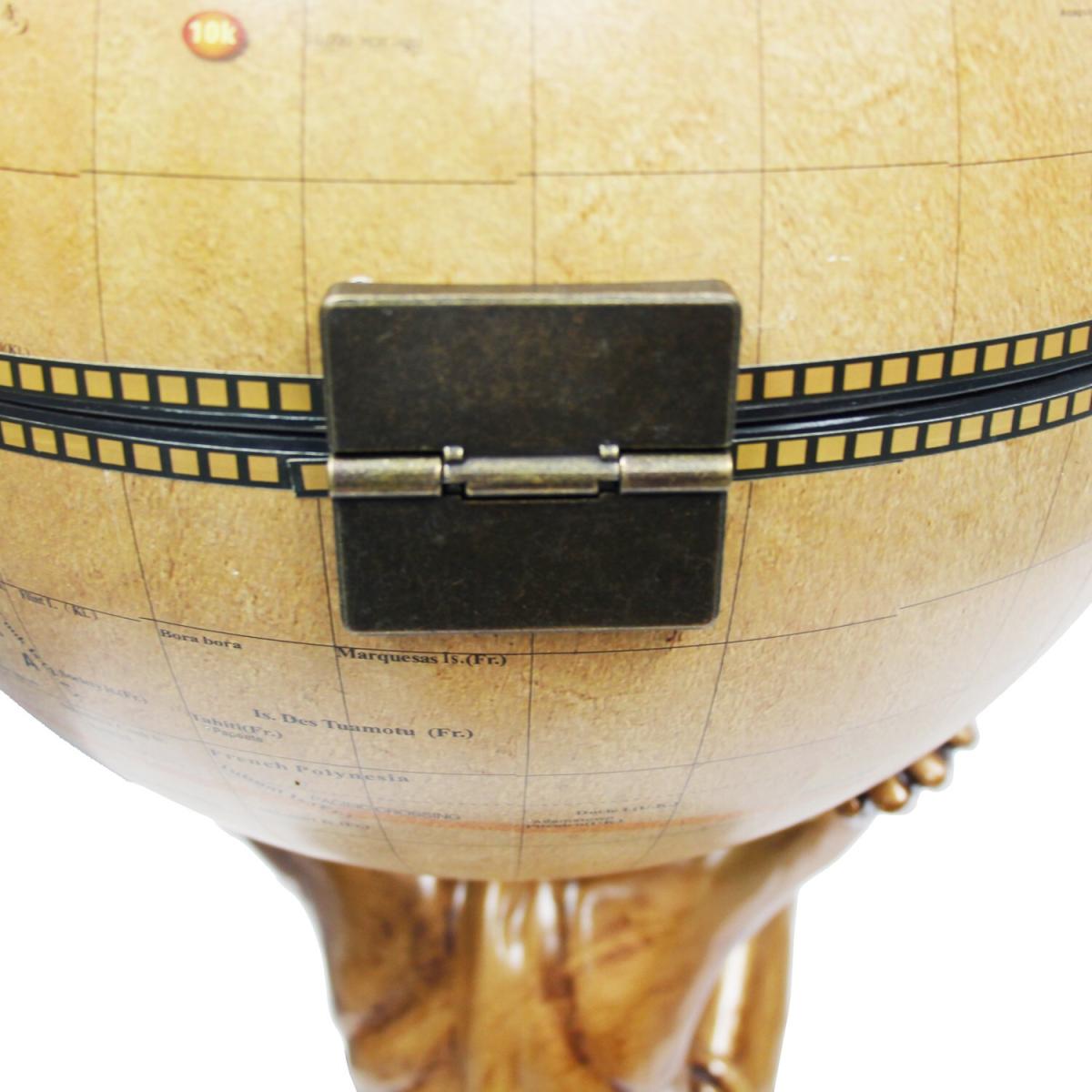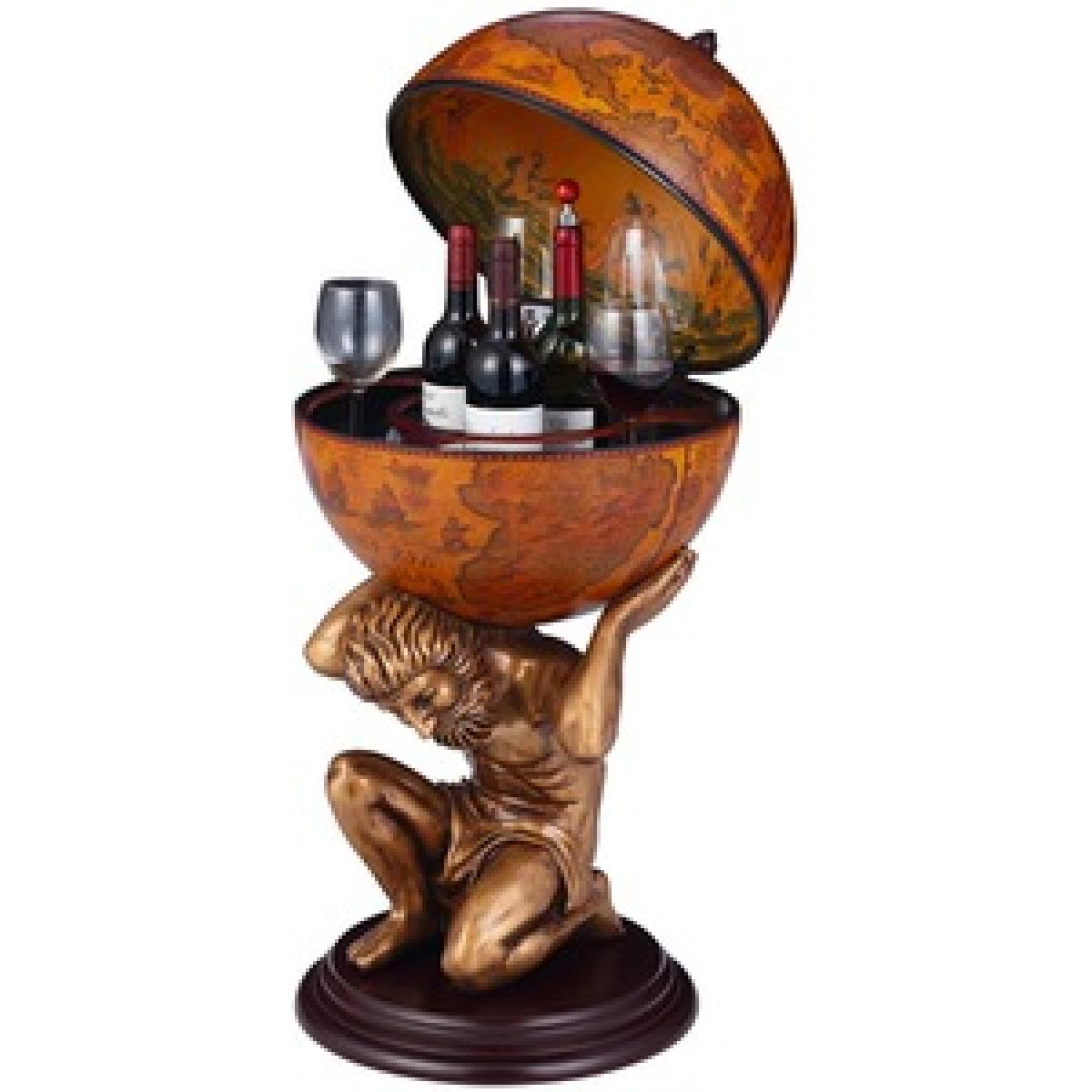 Wow your guests with your sense of style by serving them wine and spirits from this highly decorative globe bar! The globe bar will be ideal for storing and organizing several bottles and glassware. The globe is adorned with an old-fashioned map pattern, while the stable support, crafted from durable, high-quality MDF, is shaped like the mythological figure Atlas. This globe bar/ wine cabinet is a perfect combination of practicality and aesthetics.