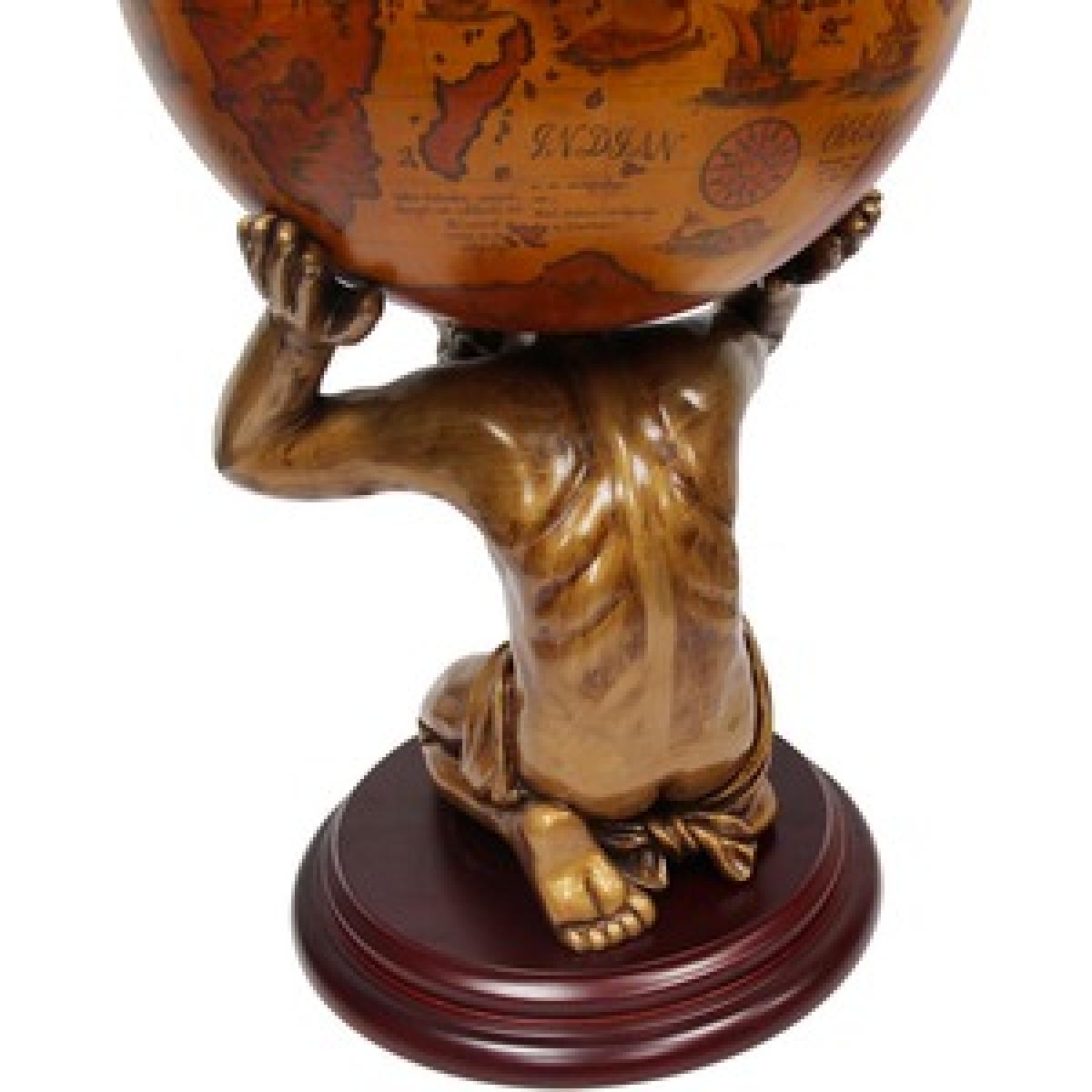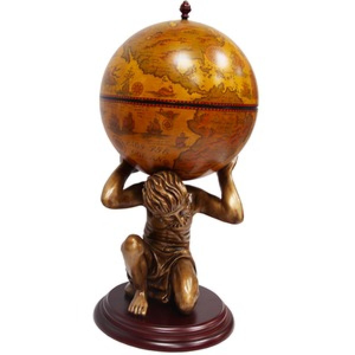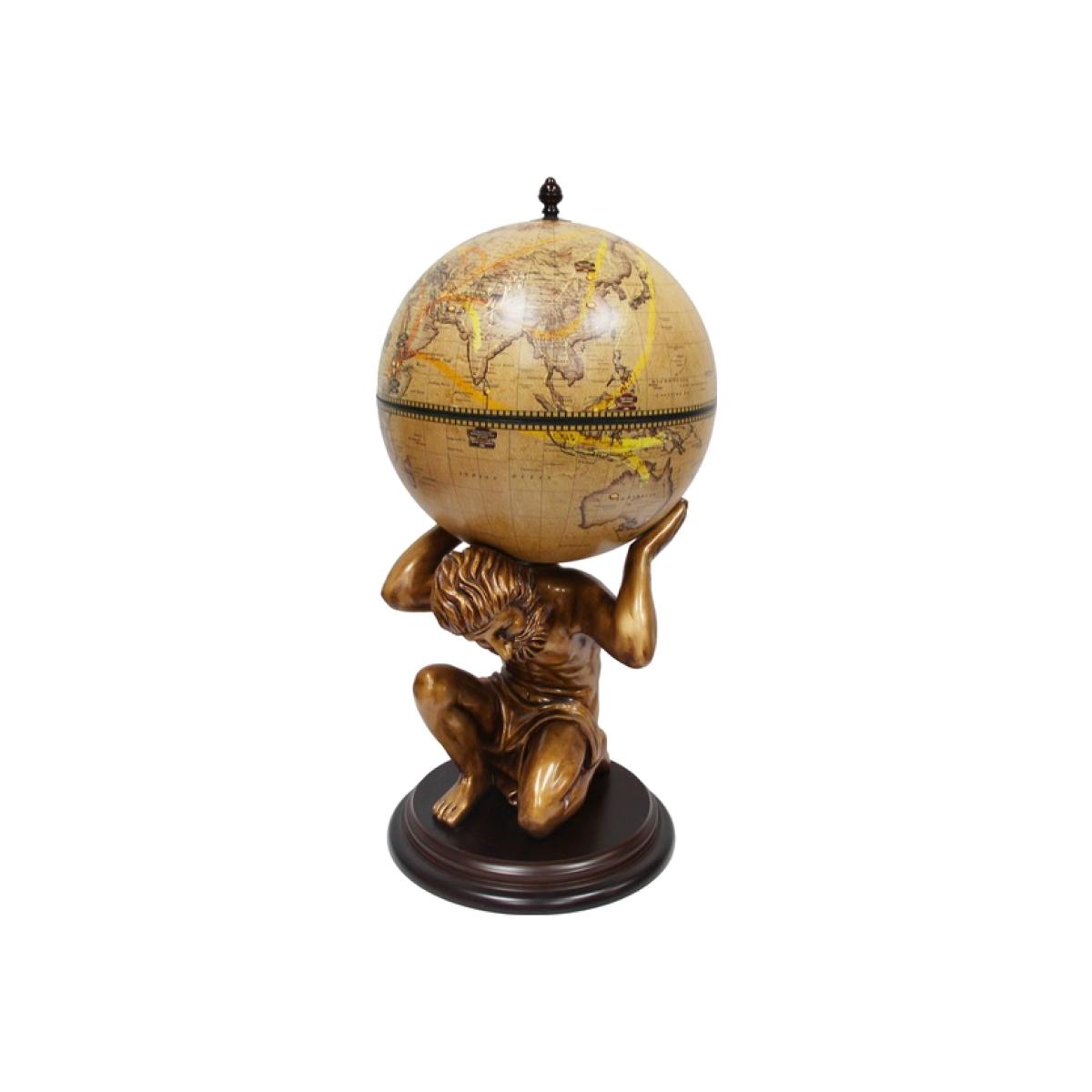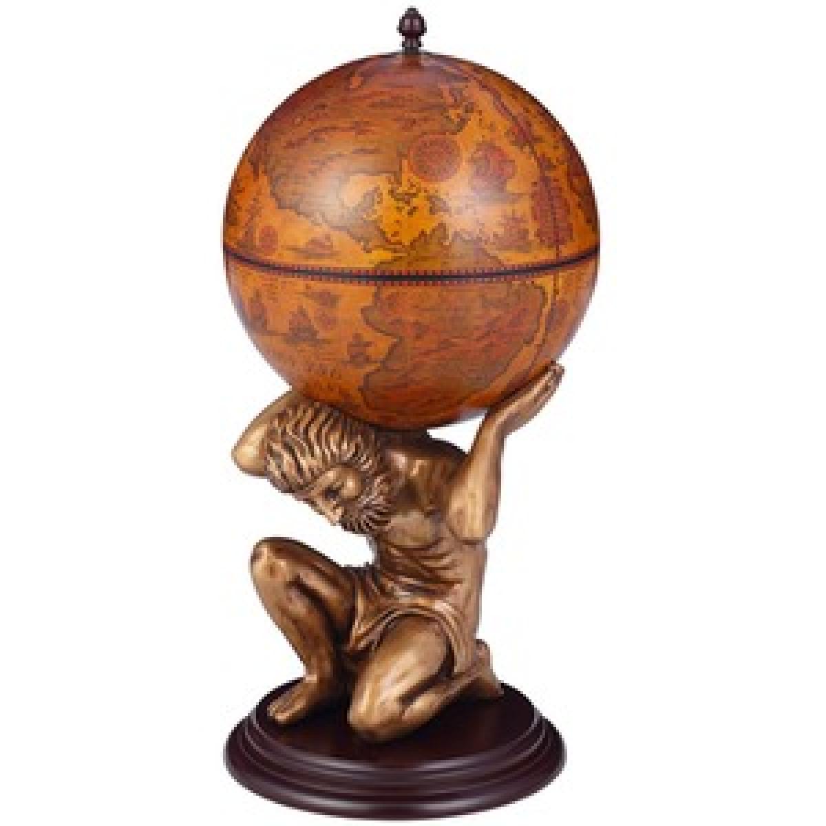 Wow your guests with your sense of style by serving them wine and spirits from this highly decorative globe bar! The globe bar will be ideal for storing and organizing several bottles and glassware. The globe is adorned with an old-fashioned map pattern, while the stable support, crafted from durable, high-quality MDF, is shaped like the mythological figure Atlas. This globe bar/ wine cabinet is a perfect combination of practicality and aesthetics.