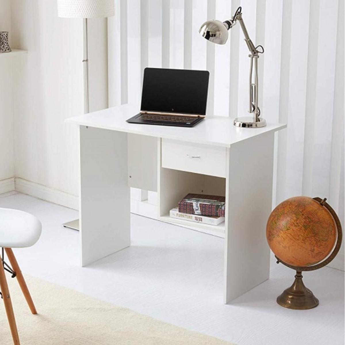 The 1 Drawer Desk is the perfect addition to any home office or workspace. This desk features a drawer and a spacious, open shelf providing ample storage for all of your essentials. The drawer is fitted with smooth gliding mechanisms for easy access and can accommodate anything from office supplies to important documents. The desk is made from high-quality materials, ensuring its durability and longevity. The desk boasts a sleek and modern design, making it a stylish addition to any room. Its simple yet elegant lines will complement any decor style, and its compact size allows it to fit into smaller spaces with ease. The desktop is the perfect size for your computer, lamp, and other office essentials, and the drawer provides a convenient place to store papers and other items with extra storage on the shelf below. The desk is straightforward to assemble with easy instructions, so you can have it up and ready to use in no time. Its sturdy construction and strong materials mean that it will withstand the demands of daily use and last for years to come. Whether you're working from home or just need a place to keep your supplies organized, the 1 Drawer Desk is the perfect solution. So why wait? Order yours today and take the first step towards a more productive and organized workspace!