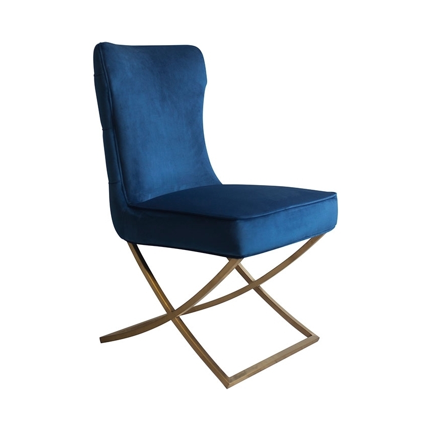 I’m a fan of this navy velvet chair with its slim brass X-frame because it adds a smart yet approachable feel without overwhelming a space. Its deep blue tone pairs well with light oak or marble tables and sits comfortably in both contemporary and mid-century schemes. For styling, mix in soft neutrals - think a woven wool rug or linen curtains - to balance the sheen of the brass. Offset its richness with simple tableware and glassware, and consider pairing two at the ends of a dining table for visual symmetry.