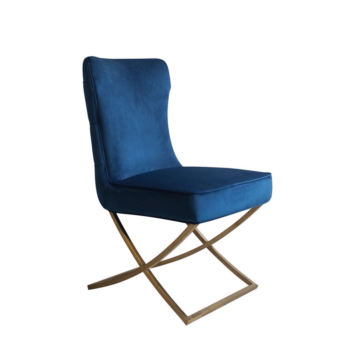 An impressive chair, perfect for creating a glamorous dining area. Deep buttoned back. Characterful stainless steel base with brushed brass finish. Comfortable padded seat and back.
