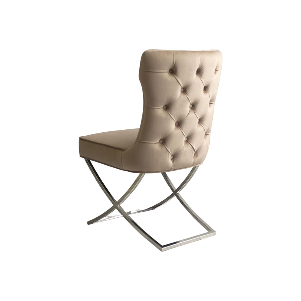 I’m a fan of this taupe Wexler chair for its neat tufted back and slim X-frame in polished silver - it brings a touch of modern elegance without feeling heavy. The neutral upholstery and reflective base sit well in contemporary, Scandinavian or transitional dining schemes and won’t clash if you swap tables later on. For styling, team it with a glass or marble-topped table to highlight the chrome legs, and introduce a soft, textured seat cushion in a contrasting shade for extra comfort. Keep surrounding décor simple - think minimal pendant lighting and a low-profile sideboard - so the chairs remain the focal point.