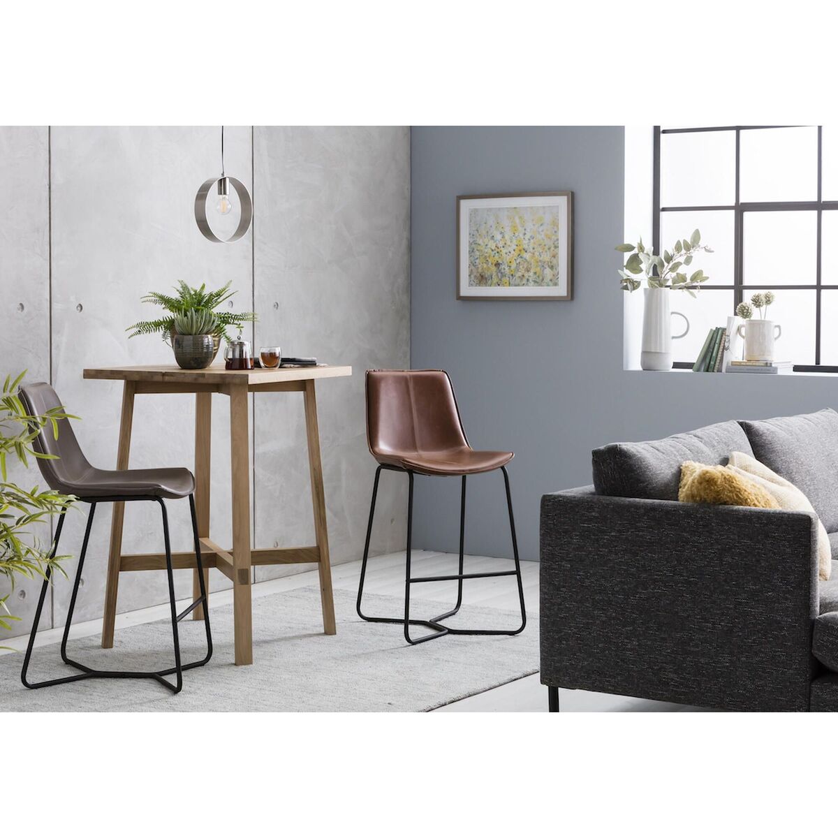 Light and airy, the Weyburn works perfectly in a wide range of contemporary kitchen settings, from stylish cocktail tables to casual breakfast bars or multi-purpose kitchen islands. If you're looking for the ultimate style statement, look no further than the Weyburn Pecan Bar Stool, a flawless dining stool with an undeniably retro appeal. This gorgeous design is an exhibit of craftsmanship at its best, which transforms humble materials into pieces to admire. It features a faux leather seat in Pecan Brown with stitching detailing on the edge, which is lifted up by a sleek, slim metal base with angled legs. The Weyburn is also available in alternative colours and as dining chairs.