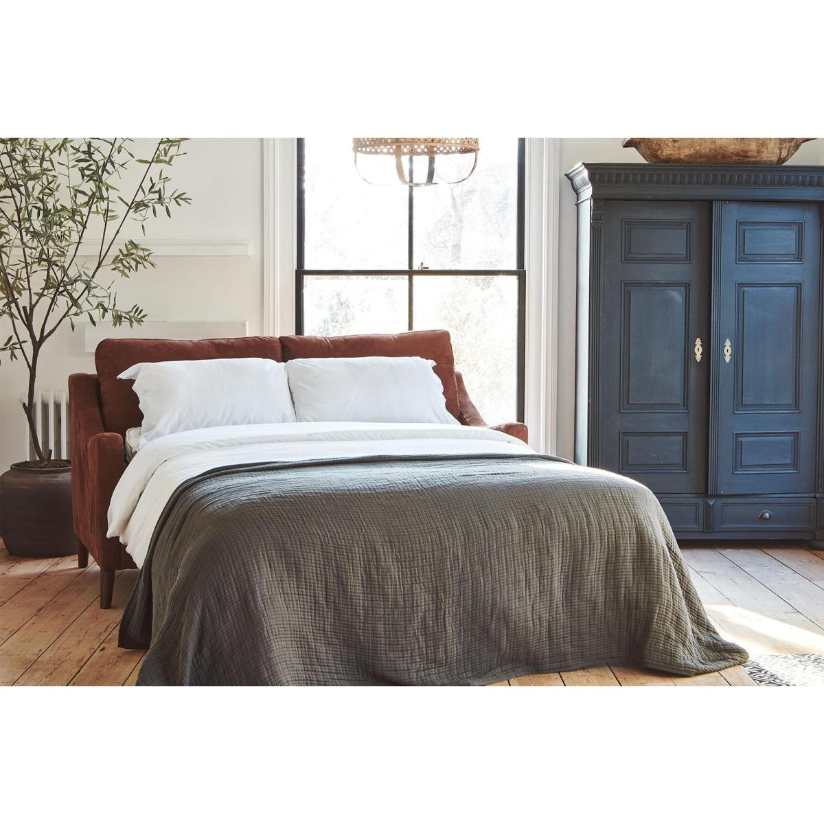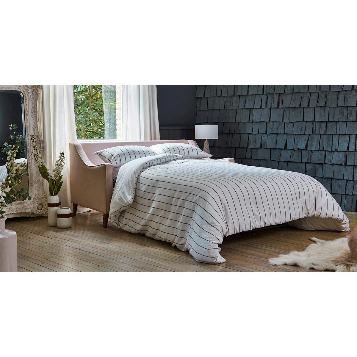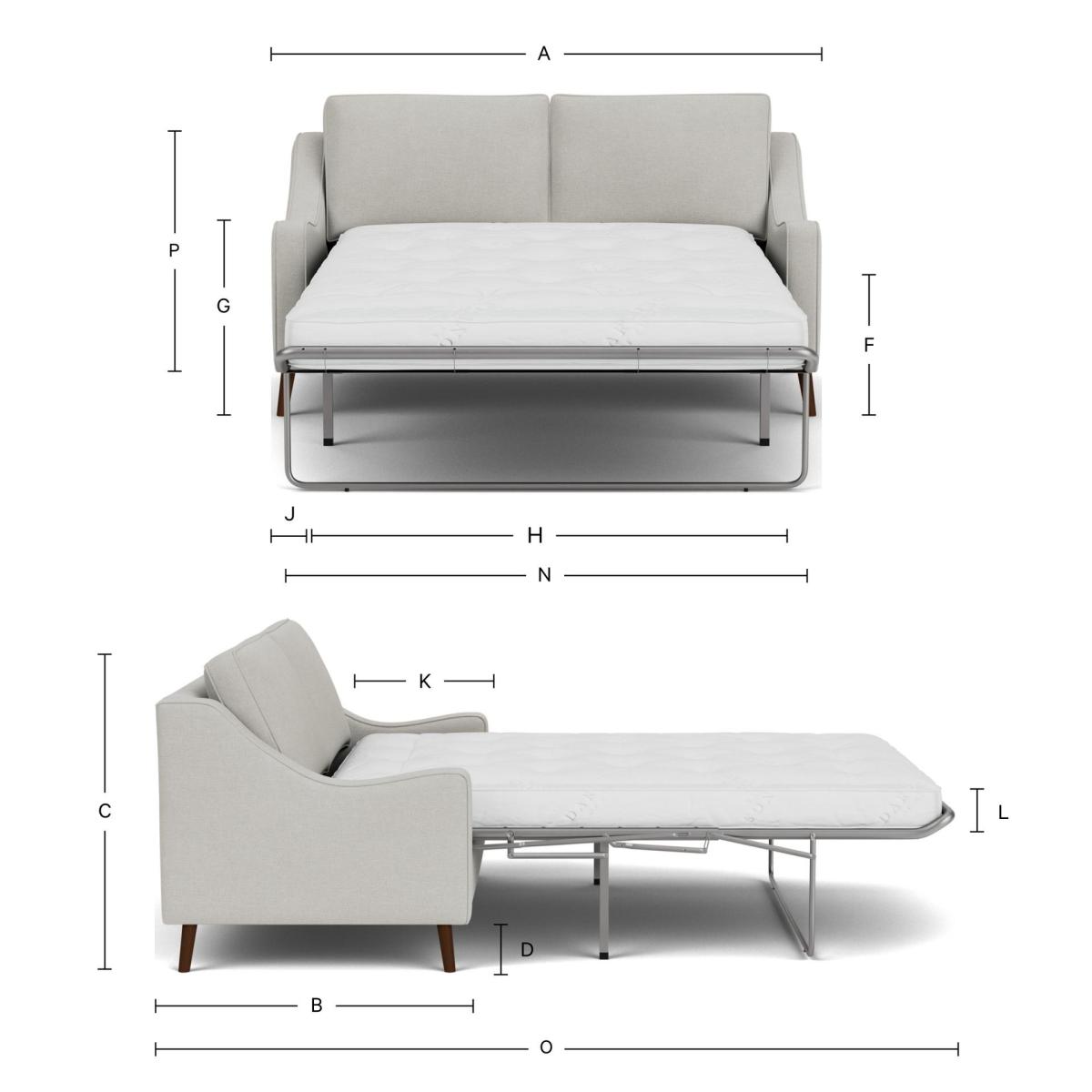 With a simple, understated design, the Weymouth 3 Seater Sofa Bed fits seamlessly into any aesthetic, with its slim curved arms, clean lines, and deep seat. You can also customise it to create your perfect sofa, choosing the foot colour, contrast piping, type of seat cushions, mattress type and whether to include removable arms. Available in an extensive range of over 170 luxury fabrics and leathers, there is a plethora of choice to ensure you'll find what you've been looking for. Our sofas beds are all handmade by expert craftspeople in the UK, using a combination of traditional skills, new technology and the finest materials to create a superior quality sofa that will stand the test of time. External (cm): - Width (A) = 172 - Depth (B) = 97 - Height (C) = 97 Seat (cm): - Width (H) = 154 - Depth (K) = 59 - Height (F) = 54 Arm (cm): - Width (J) = 9 - Height (G) = 65 Legs (cm): - Height (D) = 13 Frame Height (without Feet): - Height (P) = 70 Mattress: - Width (N) = 136 - Depth (O) = 241 - Height (L) = 12