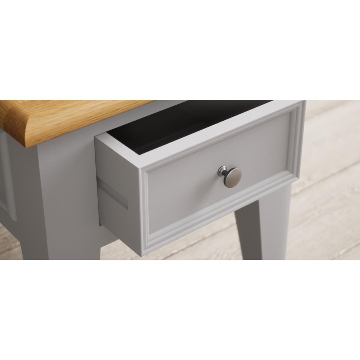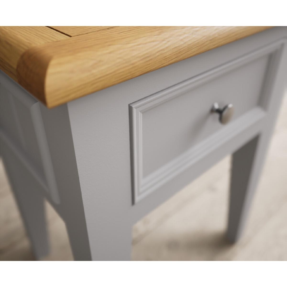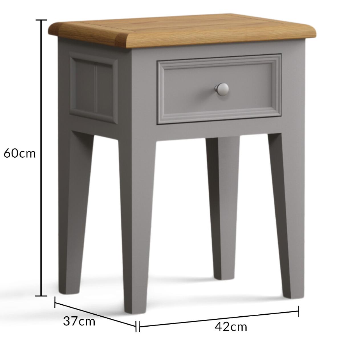 The Weymouth Light Grey Bedside Table is crafted from solid hardwood, with a light grey painted finish, Dovetail drawer and 100% solid oak top.