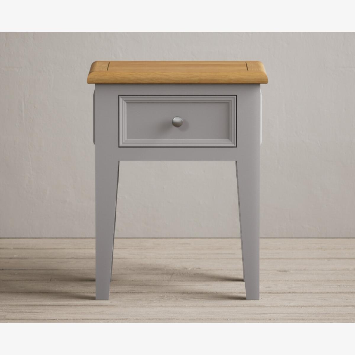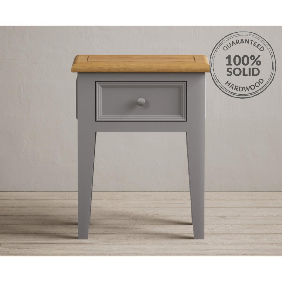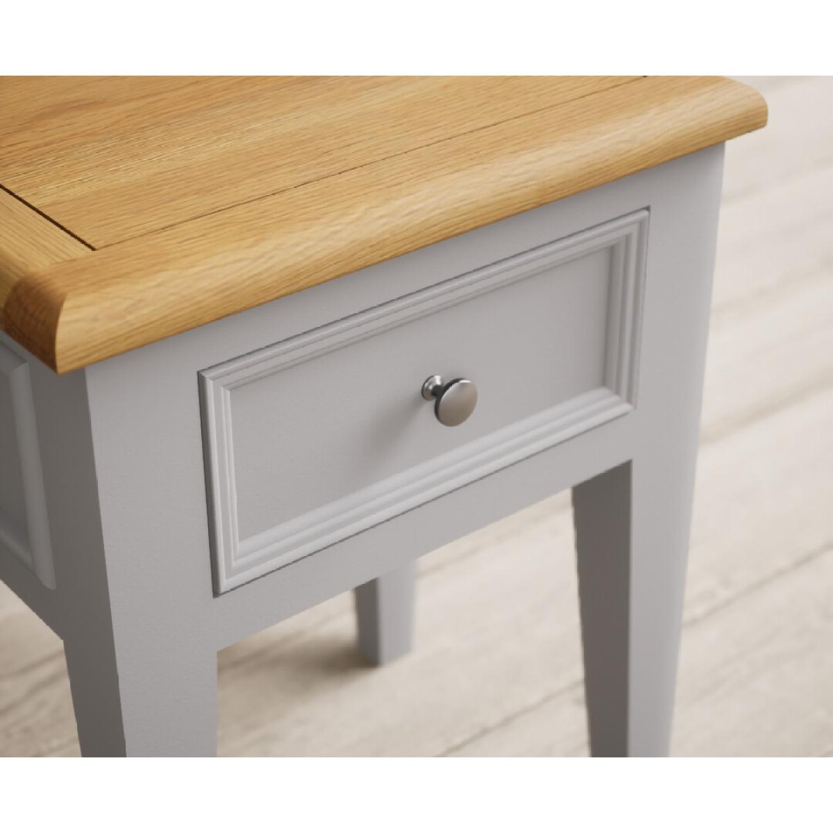 The Weymouth Light Grey Bedside Table is crafted from solid hardwood, with a light grey painted finish, Dovetail drawer and 100% solid oak top.