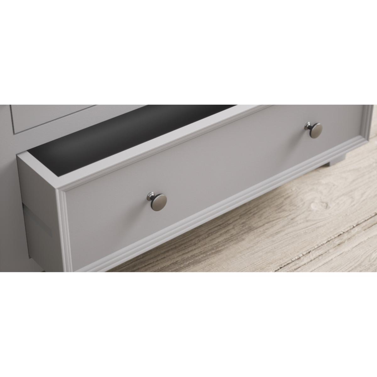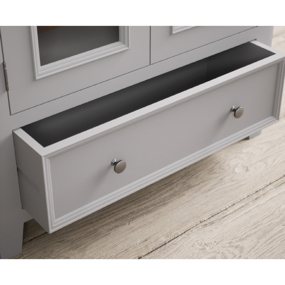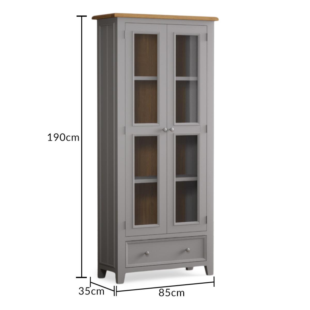 Crafted from grey painted solid hardwood, the Weymouth Light Grey Glazed Display Cabinet is topped with solid oak and complete with a lower Dovetail drawer.