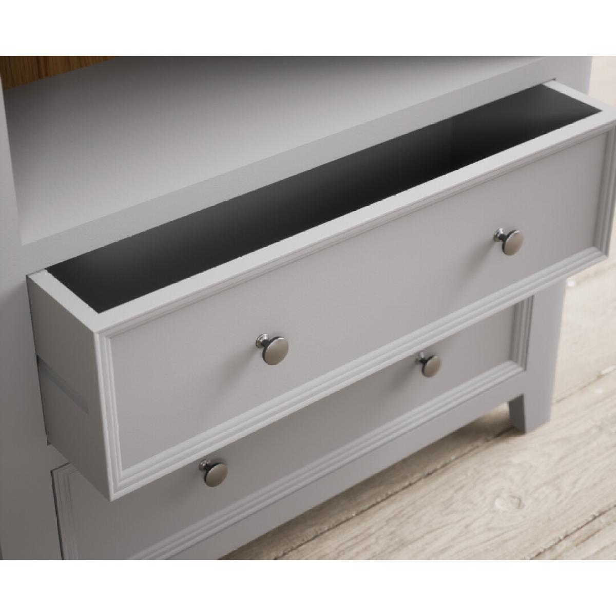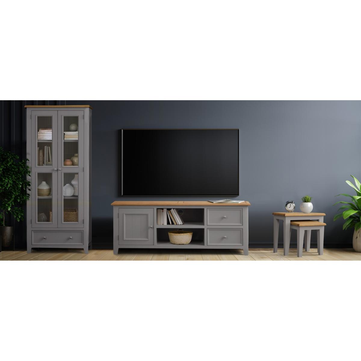 I love this bookcase for its clean, versatile look that effortlessly blends in with both traditional and contemporary interiors. The light grey paint adds a soft, neutral tone that suits a variety of colour schemes, while the oak top introduces a touch of warmth and natural texture. It works especially well in bright, airy spaces such as living rooms, home offices, or bedrooms. Practical styling tips include using the open shelves to display curated books and decorative objects, while the drawers are perfect for hiding away clutter. You can also add a few small plants or colourful accents on top to personalise it without overwhelming its understated charm.