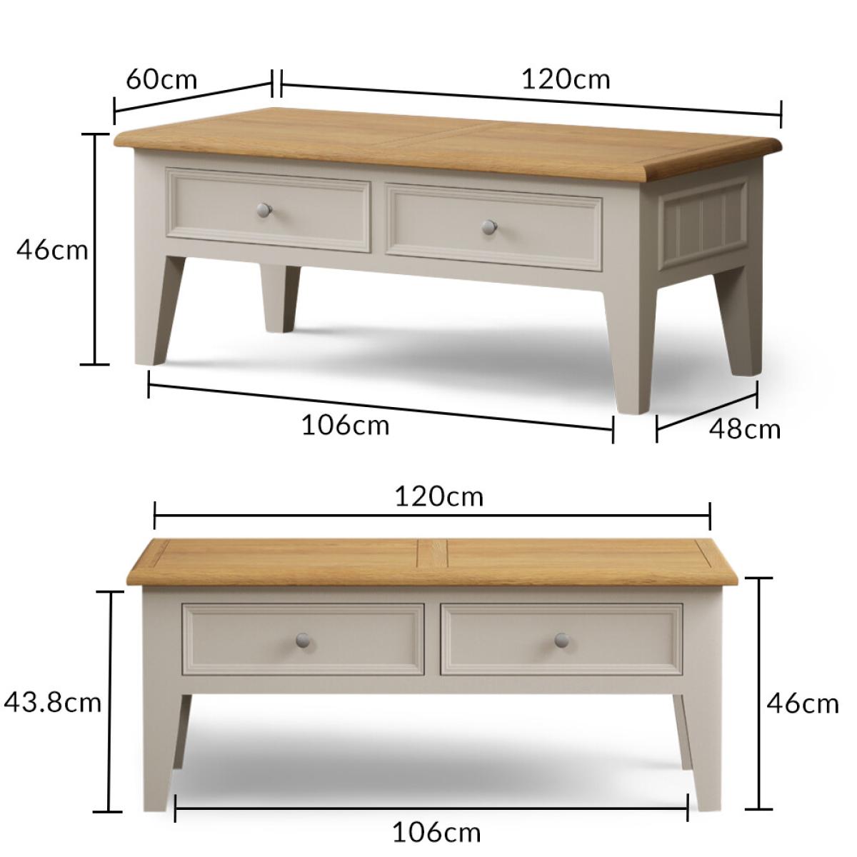 The Weymouth Oak and Soft White Painted 4 Drawer Coffee Table is crafted from solid hardwood with a white painted frame, topped with solid oak and complete with Dovetail drawers.