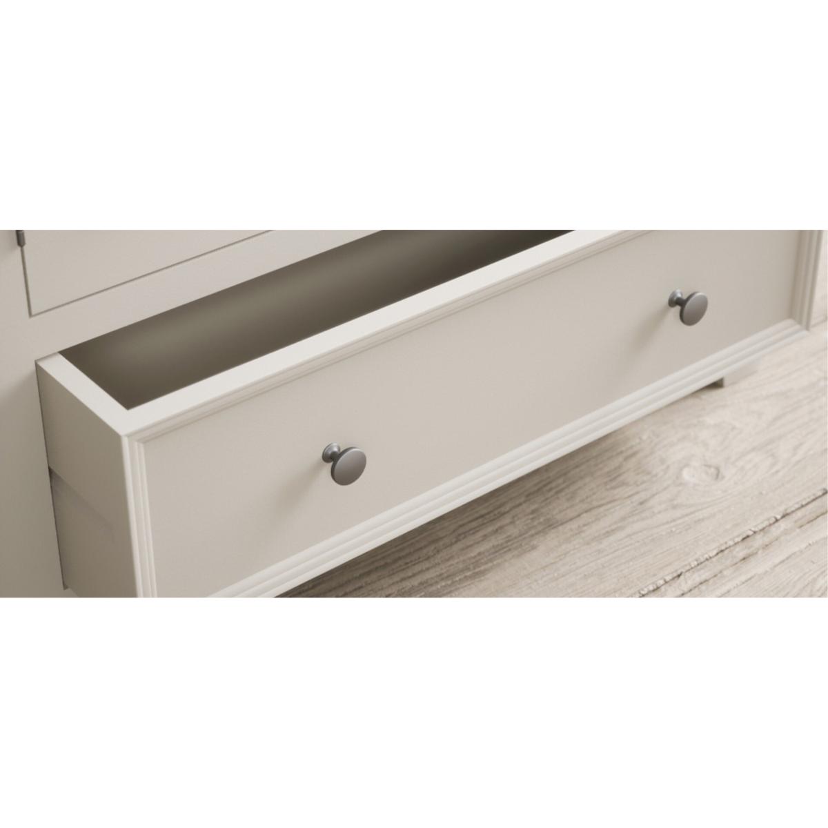Crafted from white painted solid hardwood, the Weymouth Soft White Glazed Display Cabinet is topped with solid oak and complete with a lower Dovetail drawer.