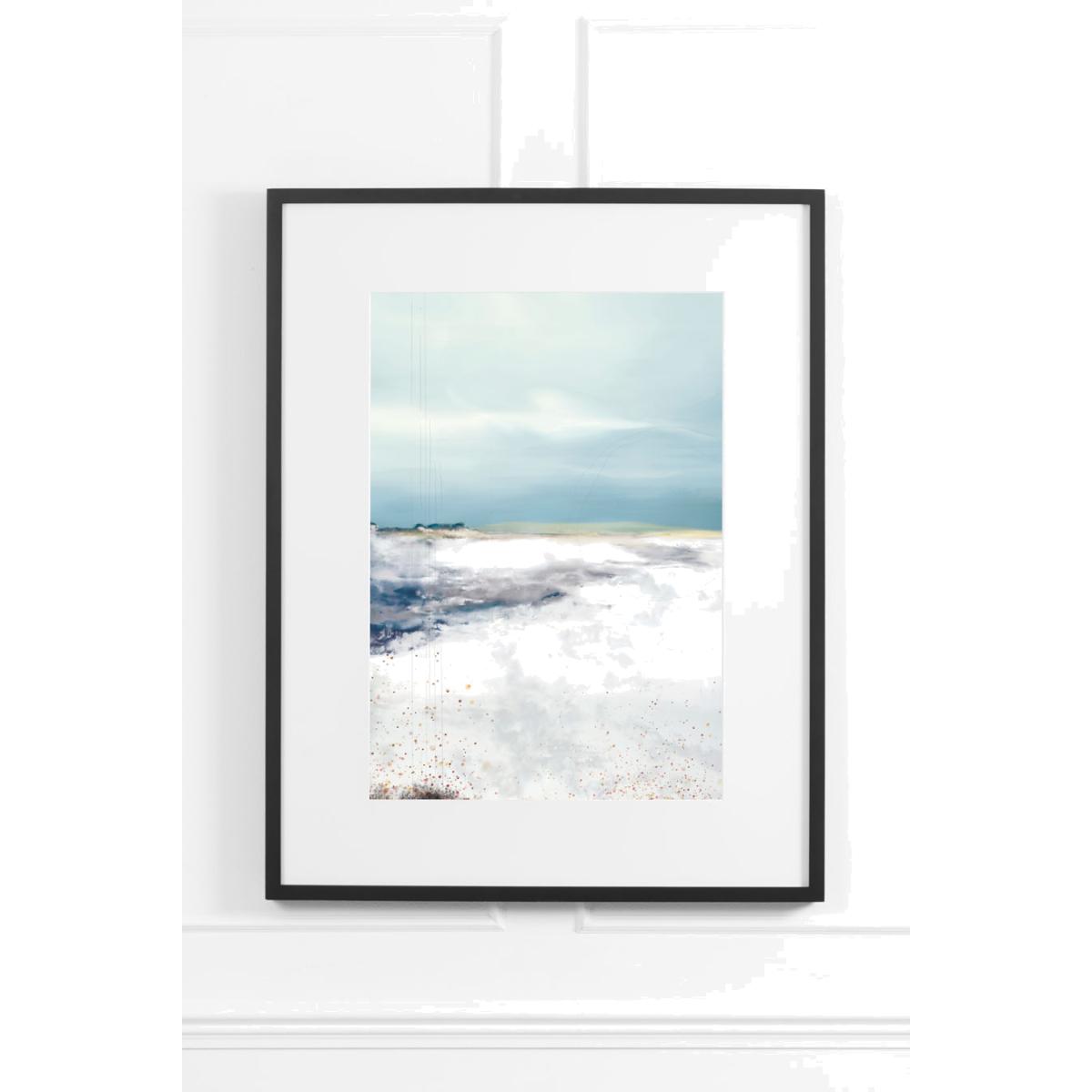 A dreamy watercolour inspired print in tones of blue, white and grey. 250gsm paper with a satin finish complete with an elegant matte black wooden frame.