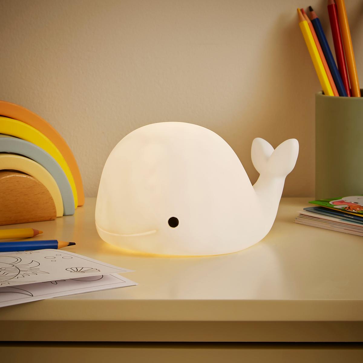 * Adorable Whale Design* LED Night Light* Warm White Glow* Ideal for Child's Bedroom/Nursery* Requires 2 x AAA Batteries (Not Included)Dive into a world of imagination with the Whale LED Night Light. Featuring an adorable whale design, it's a must-have for young lovers of marine life. Emitting a soft warm white glow, this night light creates a tranquil atmosphere, making it perfect for your child's room or nursery. Please Note: This item is not a toy, please keep out of the reach of children. Not suitable for children under 3 years old due to small parts which may constitute a choking hazard. For decoration only - this product is not suitable for full room illumination.