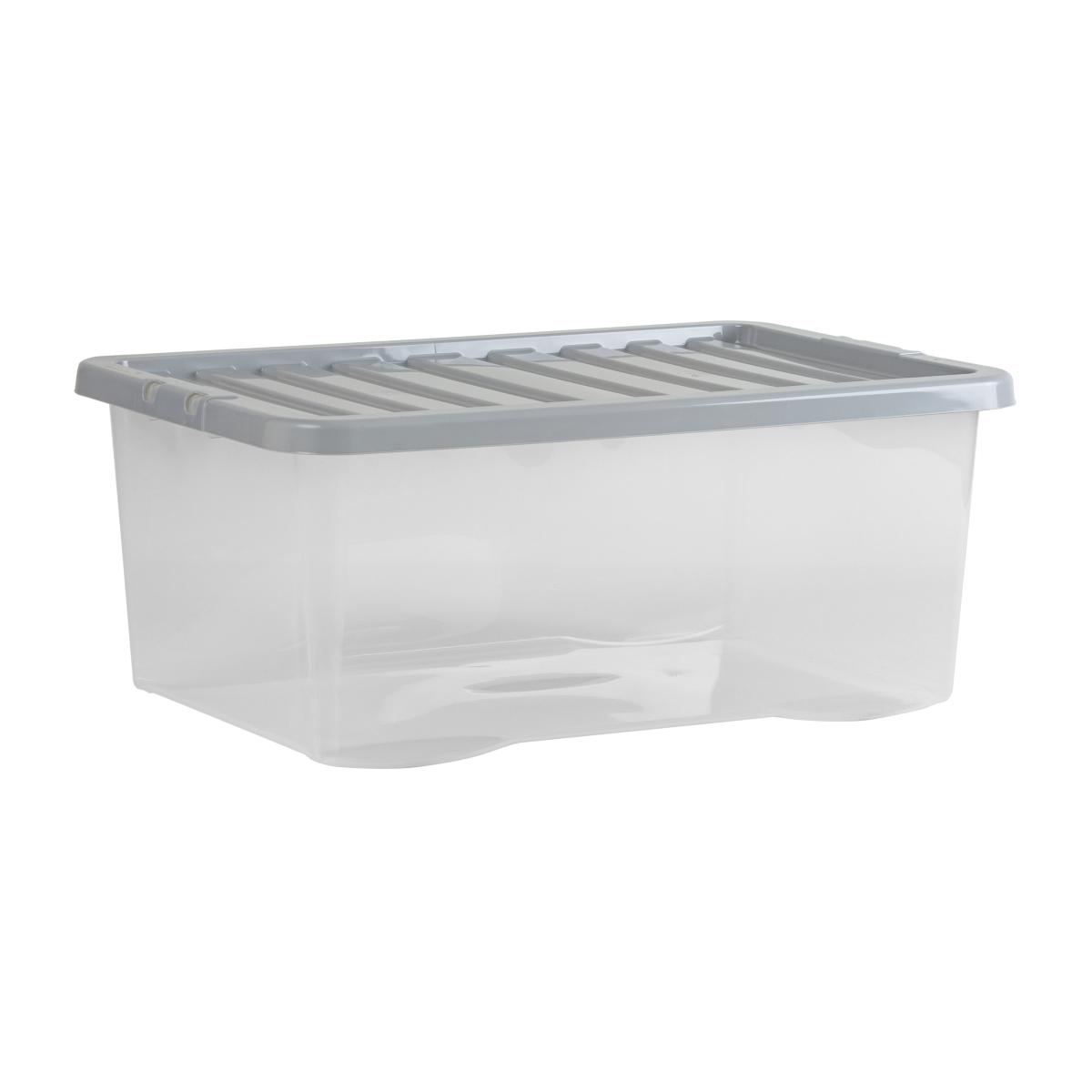 * 45. L capacity * Lid included * Made from plastic Keep your home or office organised with the Wham 45. L Storage Box with Lid. Its high-quality construction and clip-on lid provide secure and versatile storage. Stackable in use and nestable when empty, this box is perfect for clothes, toys, or office supplies, ensuring clutter-free spaces with ease.