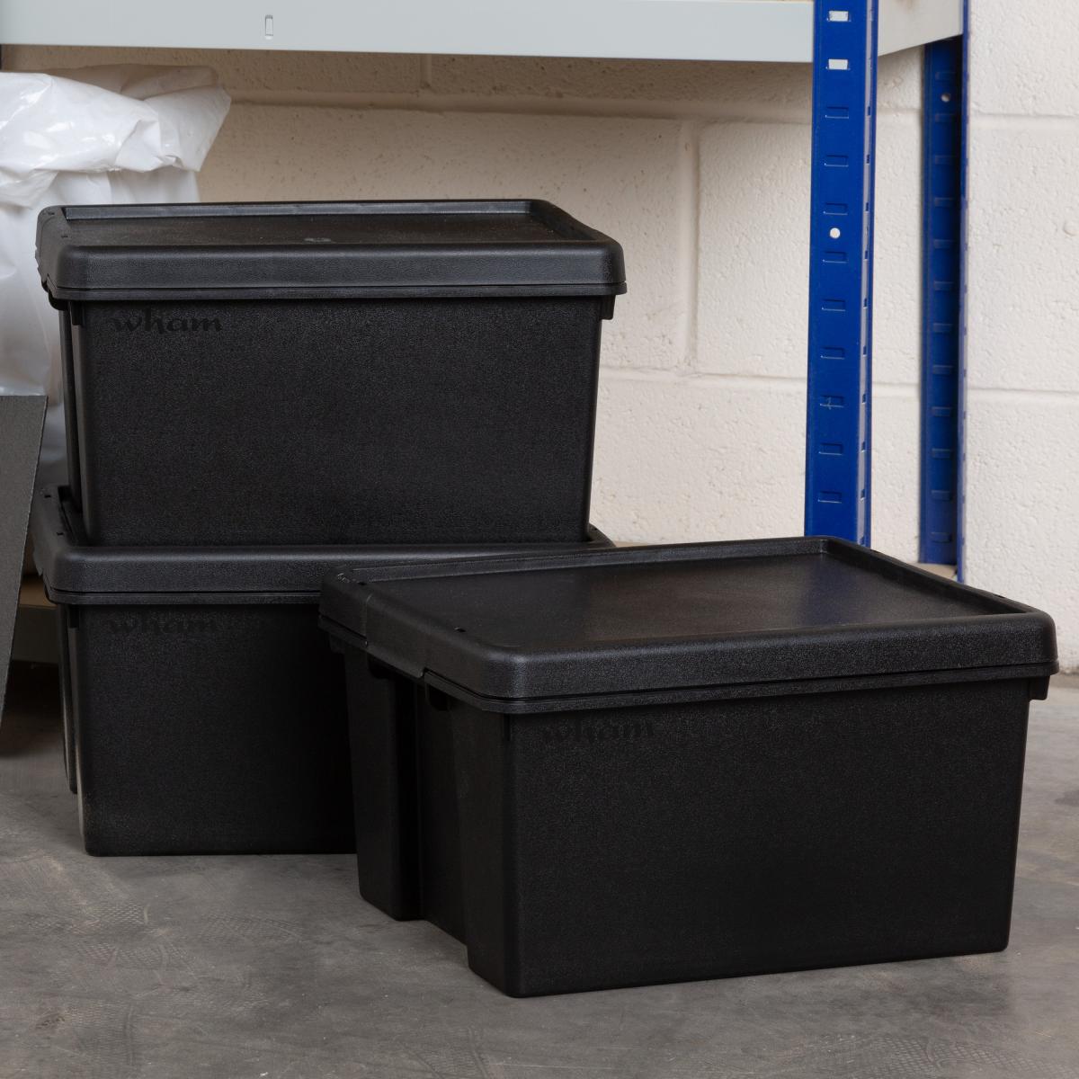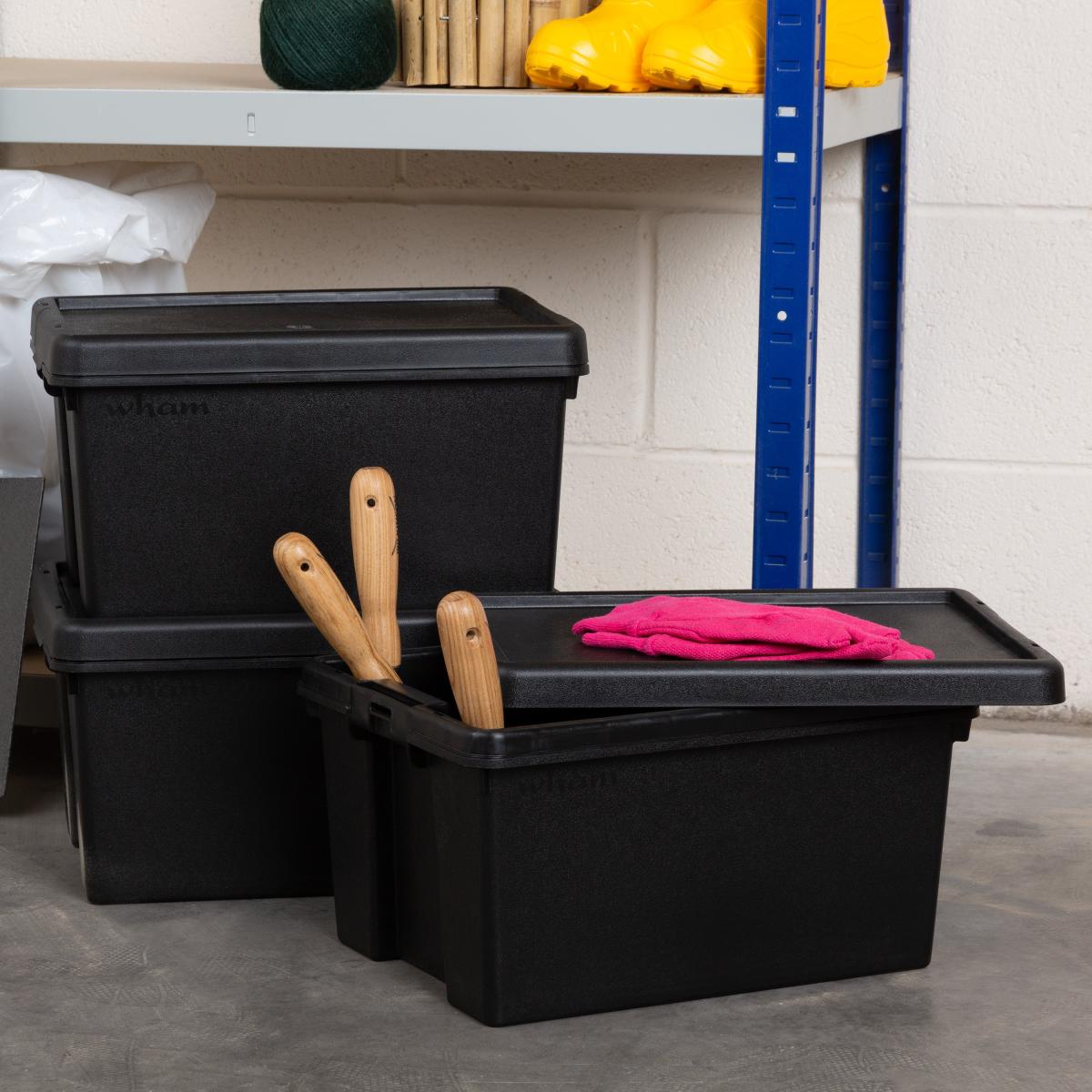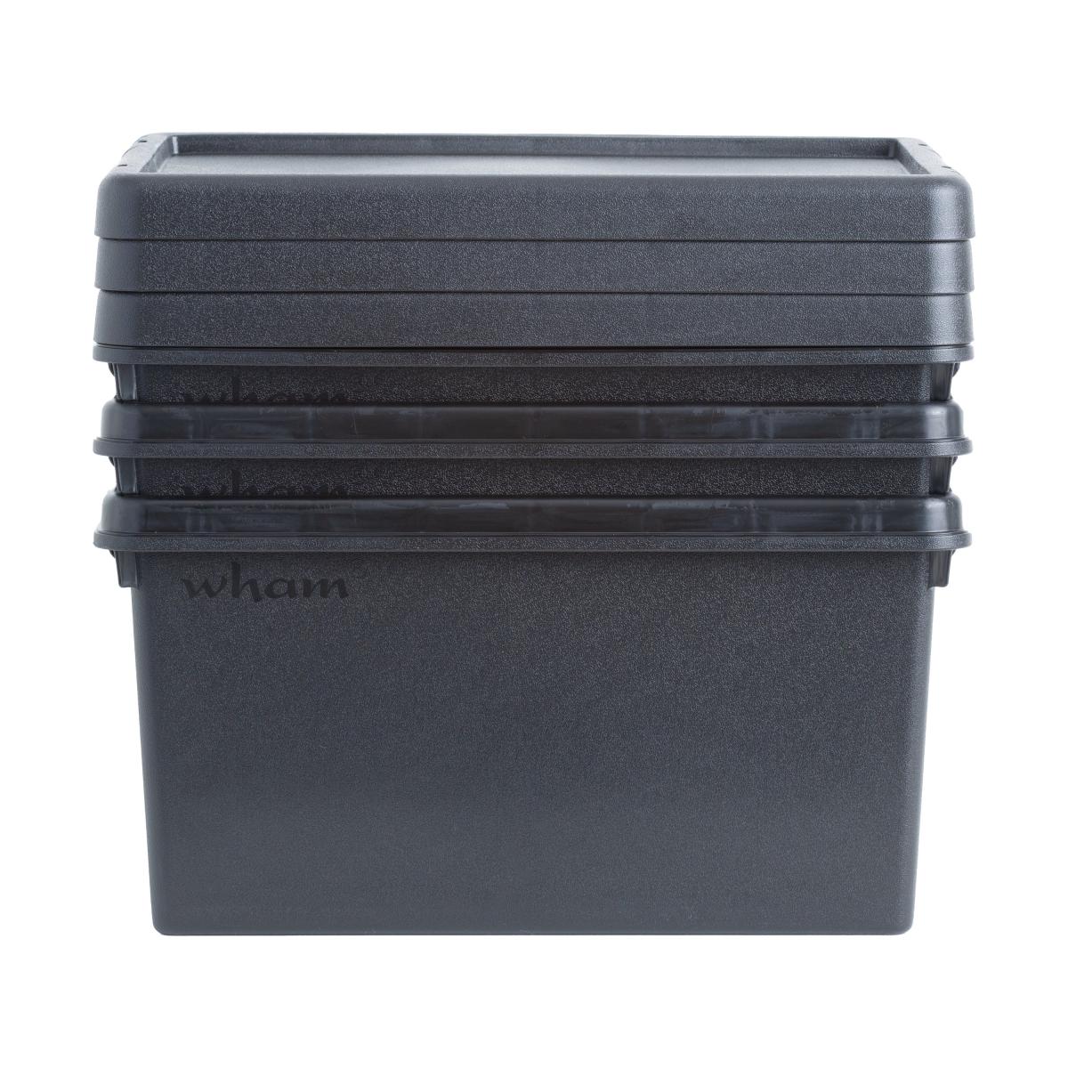 Wham Bam 16L Set of 3 Stackable Boxes & Lids Black
