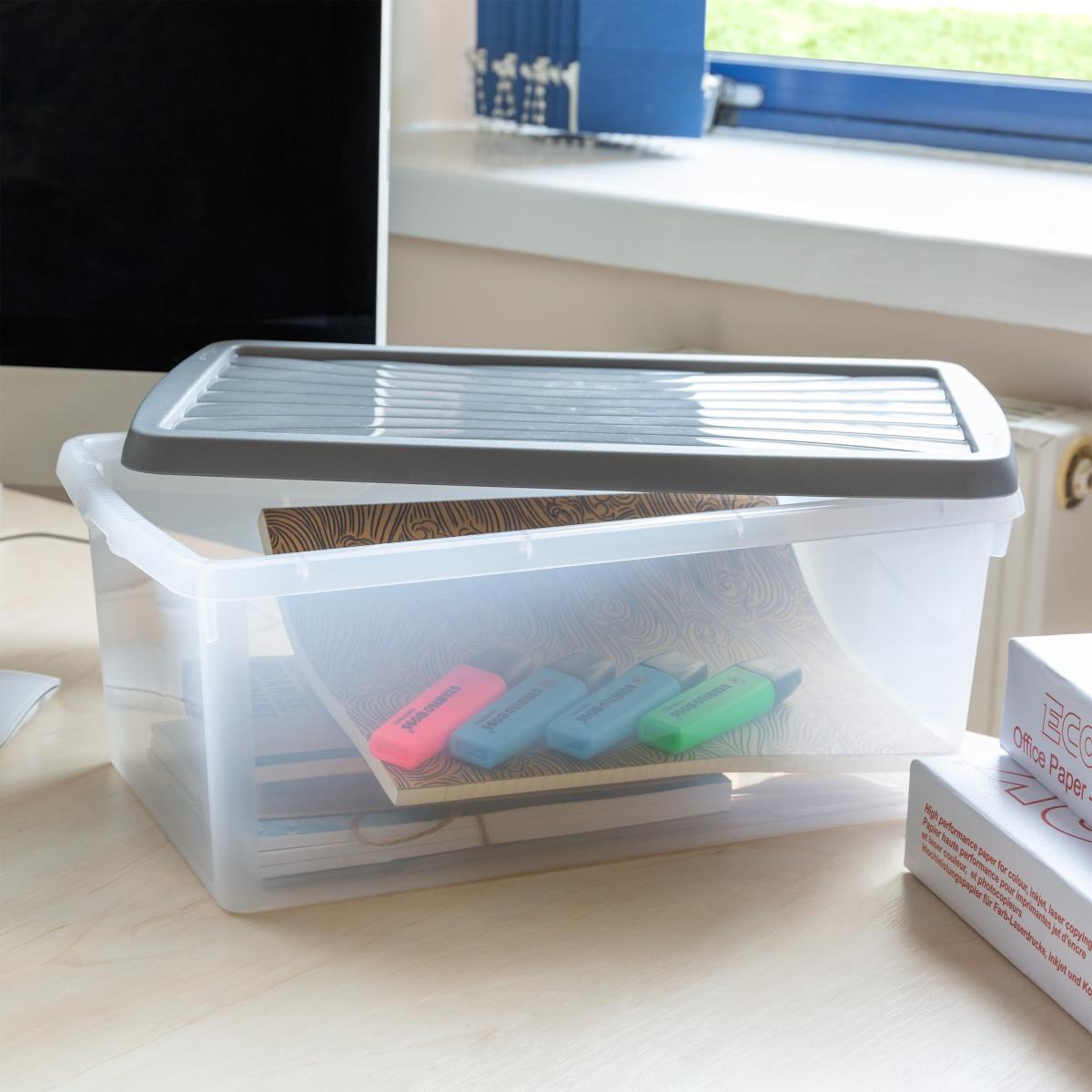 * 3 Boxes & Lids* Available across multiple sizes* High-Quality, Durable, & Strength-Tested Organise with style using the Wham Box Set of 3 Stackable Boxes & Lids. Crafted from high-quality materials, these storage boxes with click-on lids are strong and durable. The close-fitting lids enhance security, and the design maximises internal storage space, allowing for efficient nesting when not in use.