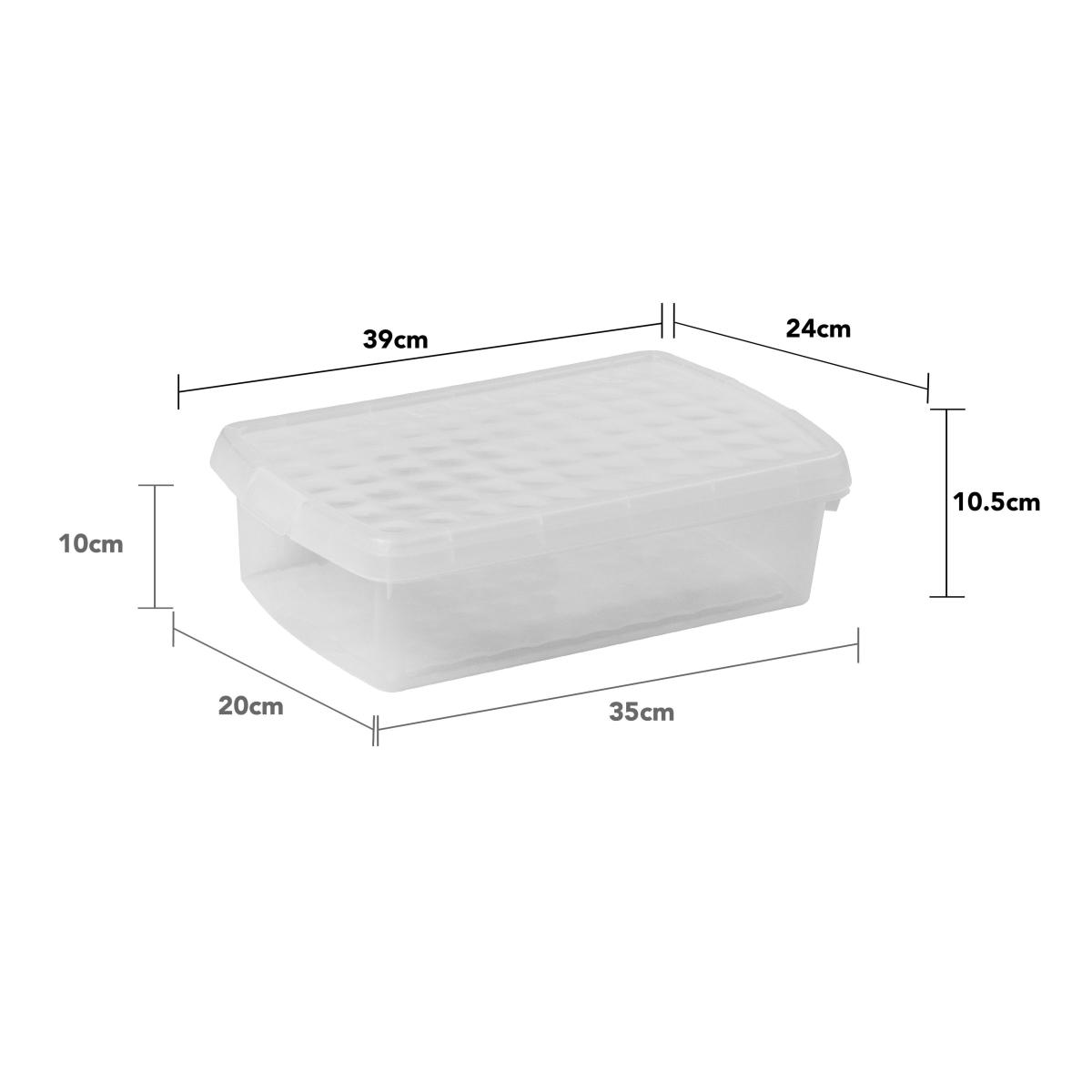 * Ideal for bulk storage* Secure clip-lock waffle design lids* Stackable & nestable* Stylish, rectangle design* Space-saving solution Tackle bulk storage efficiently with the pack of 4 storage boxes. These containers feature durable, clear bases to easily view contents, secure clip-lock waffle design lids, and a stackable design for practical use. Stylish and modern, they nest neatly when stored, providing a space-saving solution for your household items.