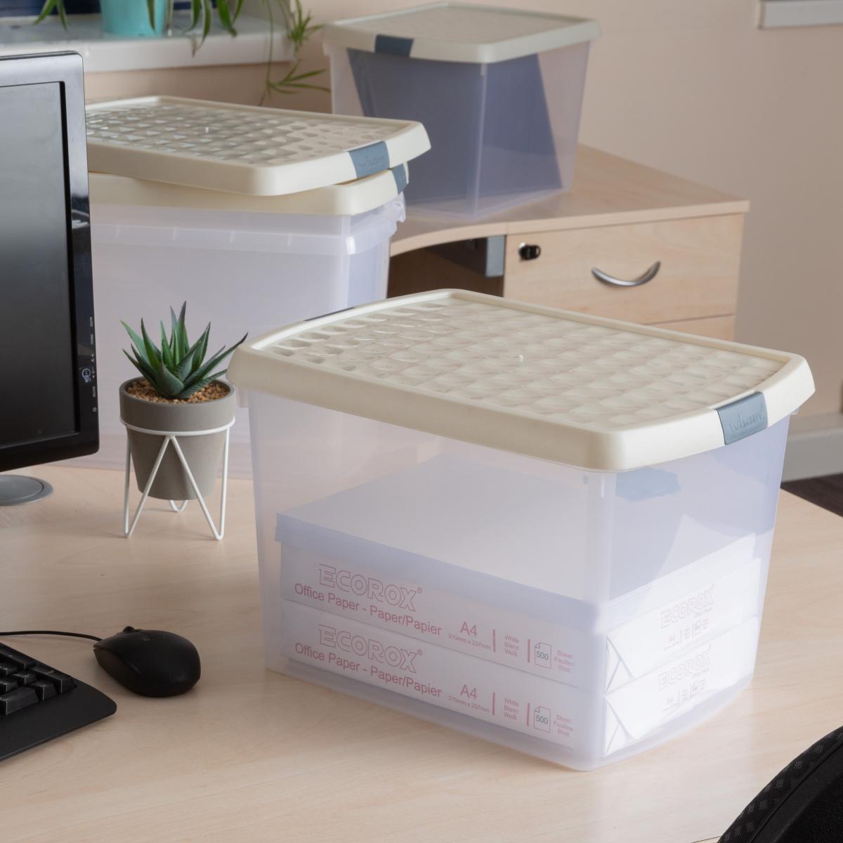 Wham Clip 8.02 Pack of 4 22l Storage Boxes With Lids Stone