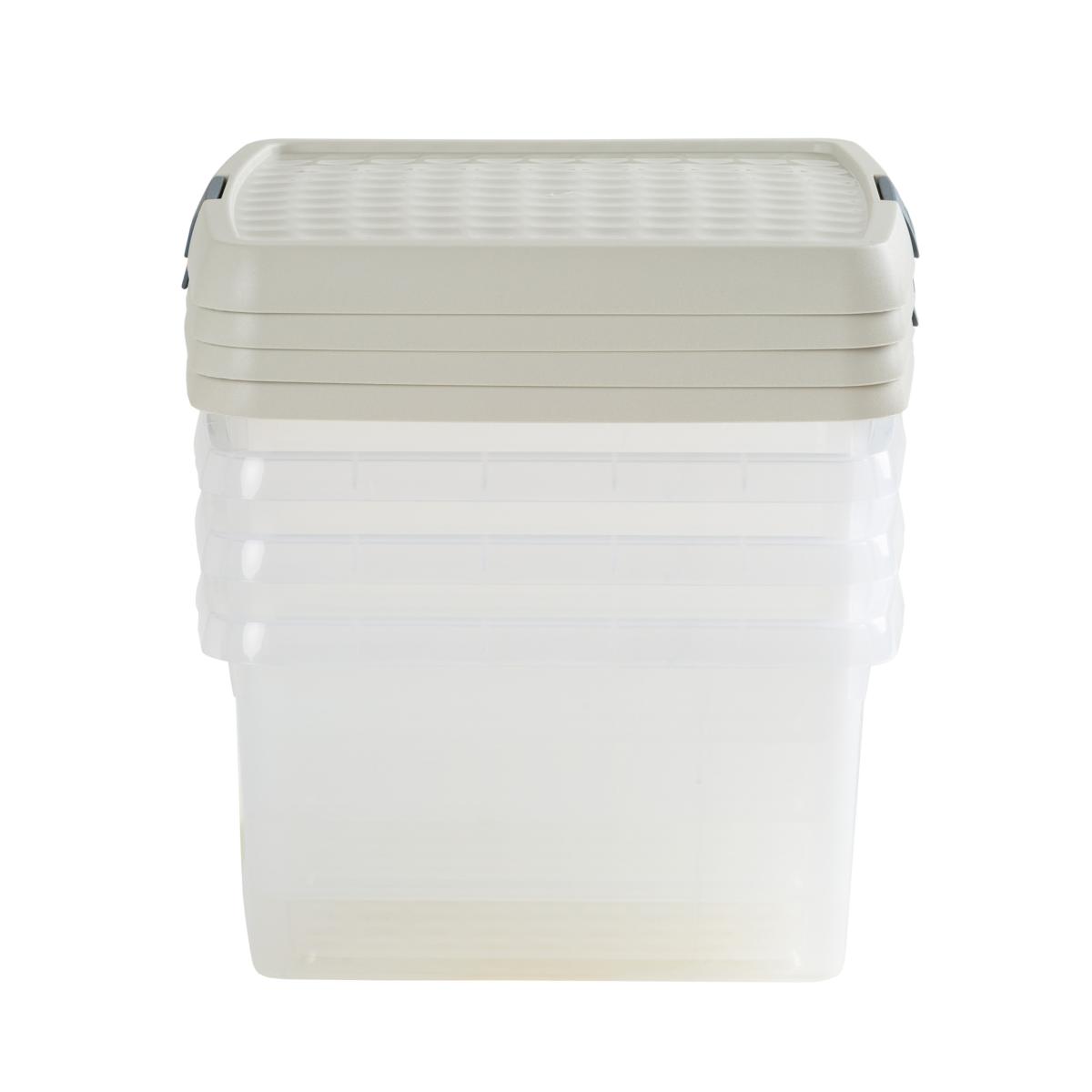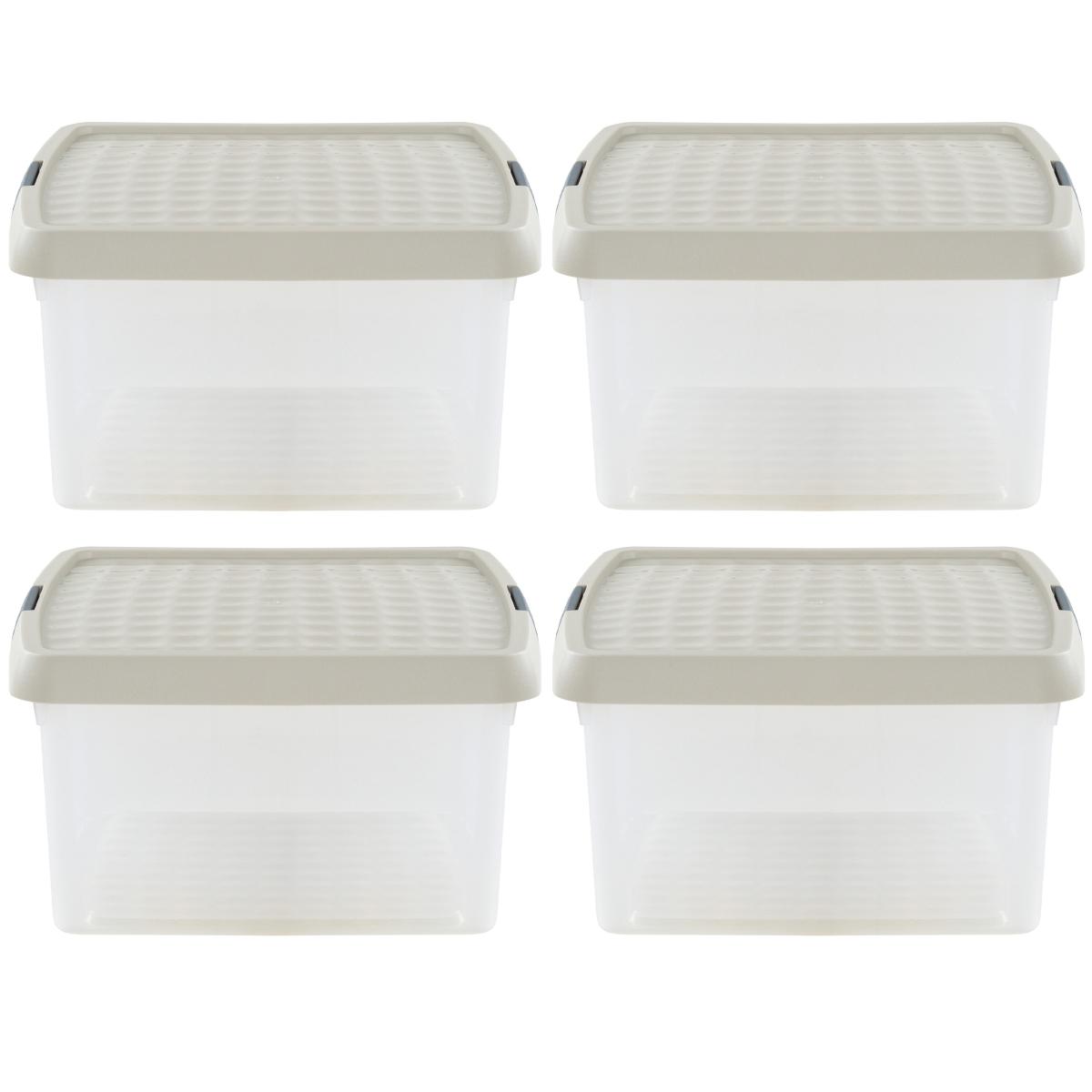 Wham Clip 9.01 Pack of 4 9l Storage Boxes With Lids Stone