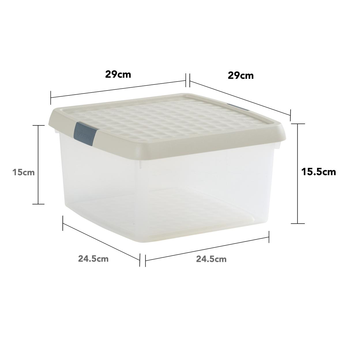 * Ideal for bulk storage* Secure clip-lock waffle design lids* Stackable & nestable* Stylish, square design* Space-saving solution Tackle bulk storage efficiently with the pack of 4 storage boxes. These containers feature durable, clear bases to easily view contents, secure clip-lock waffle design lids, and a stackable design for practical use. Stylish and modern, they nest neatly when stored, providing a space-saving solution for your household items.