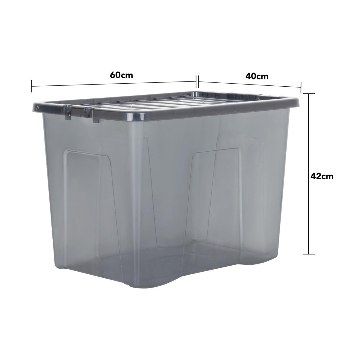Let Wham’s spacious set of 4 storage boxes organise your home or workspace with the huge 80 litre capacity, providing ample space for your storage needs with a stackable design. Designed with convenience in mind, each box comes with a clip-on lid with integrated handles, making them easy to carry and move around. Plus, the transparent design of the lid allows you to quickly and easily view the contents inside. When not in use, these boxes can be nested within each other taking up minimal space.