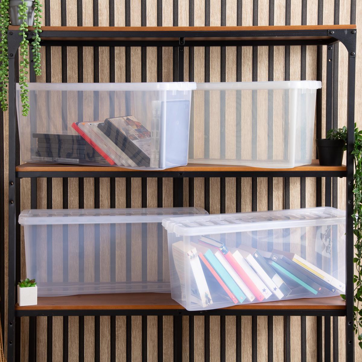 I love these clear deep shelf boxes because they combine practicality with a streamlined look, making them ideal for organising shelves in any interior style. They work particularly well in contemporary or minimalist spaces where clutter-free storage is key, but they also add a touch of order in more eclectic settings. Practical tips include using them to store craft supplies, office essentials, or even kitchen items - the transparent design makes it easy to quickly identify what's inside. They’re versatile and stack well, so they can maximise vertical space and keep areas tidy without sacrificing style.