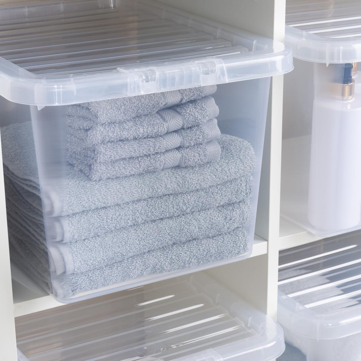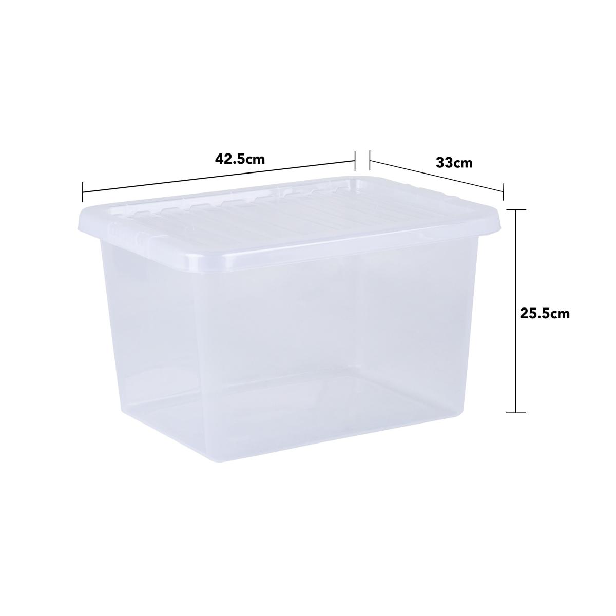 Organise your home or workspace with Wham’s set of 5 storage boxes with a generous 25 litre capacity, providing ample space for your storage needs with stackable design. The clear design of the lid allows you to quickly and easily view the contents inside, enabling you to maximise your storage space while keeping everything inside tidy and organised. Designed with convenience in mind, each box comes with a clip-on lid with integrated handles, making them easy to carry and move around and when not in use, these boxes can be nested within each other taking up minimal space.