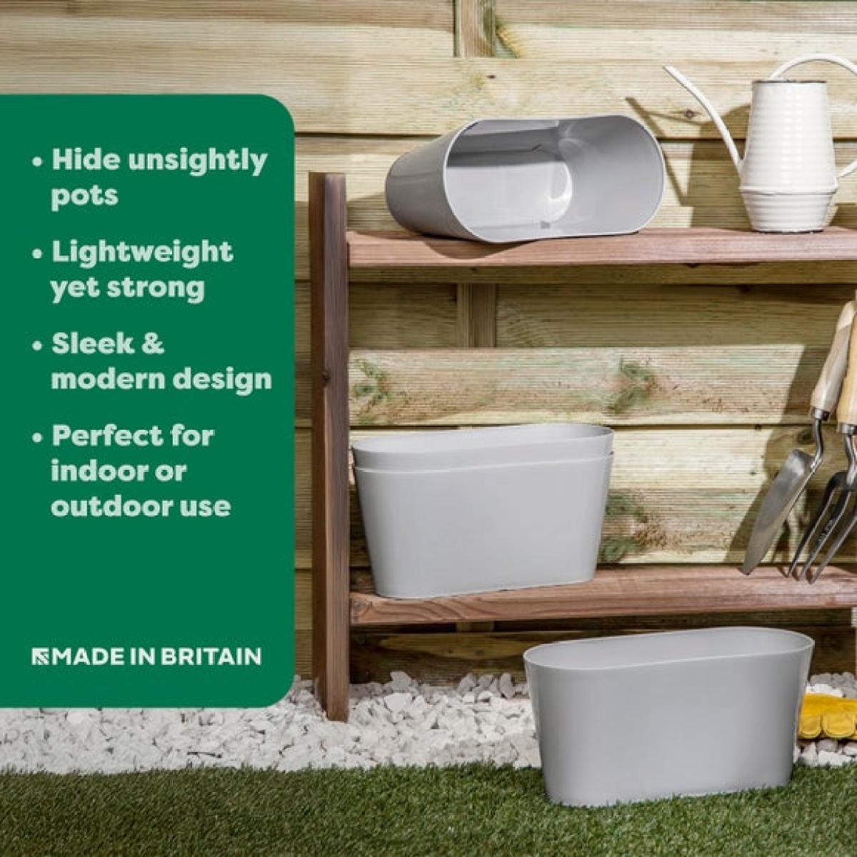* Oval shape * Trough cover * Tough plastic * Frost resistant * Lightweight Refresh your plant display with the Wham Studio Pack of 4 Oval Trough Plant Pot Covers. Designed to fit over existing pots, their elongated oval shape is ideal for grouped arrangements or narrow spaces. Made from tough plastic, they’re built to withstand everyday use and seasonal changes. Lightweight and easy to reposition, they offer flexibility for indoor or outdoor styling, and frost-resistant properties help keep them crack-free through colder months. A practical solution for tidy, low-maintenance plant presentation.