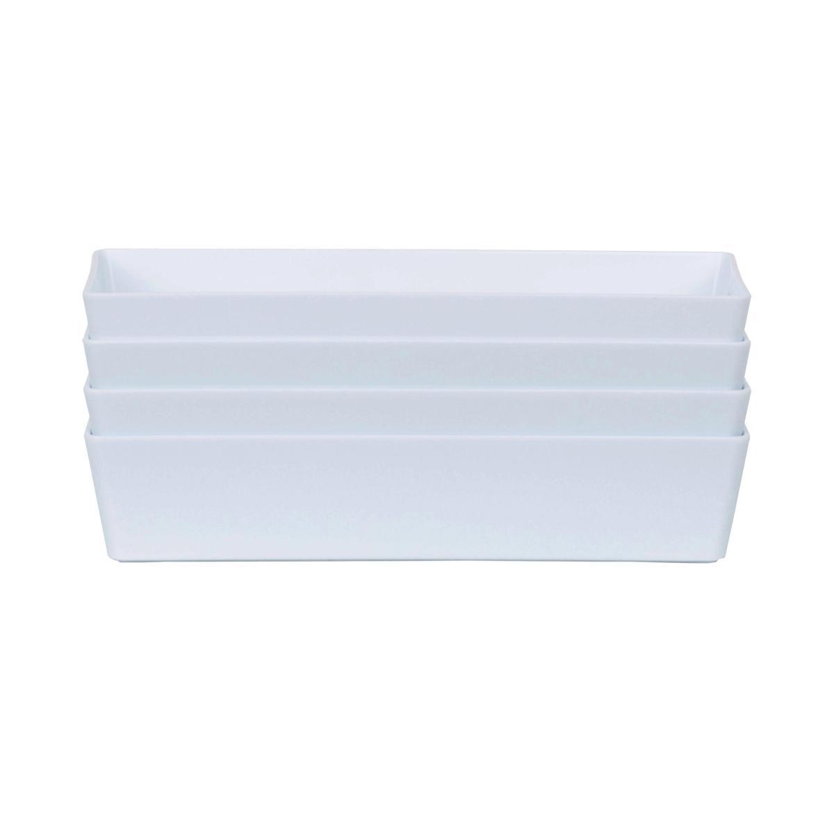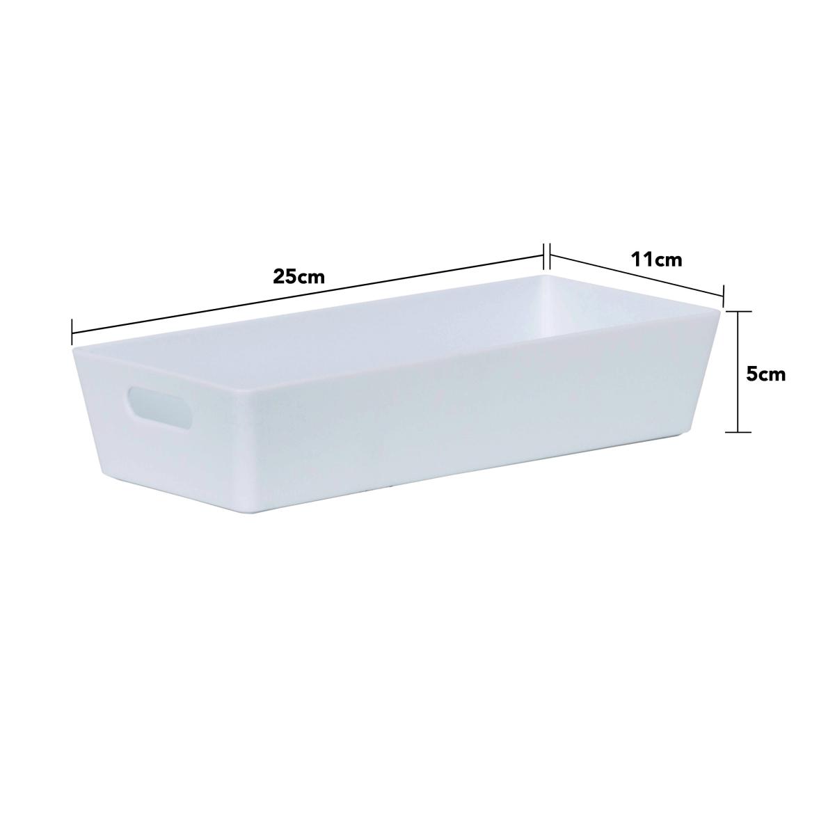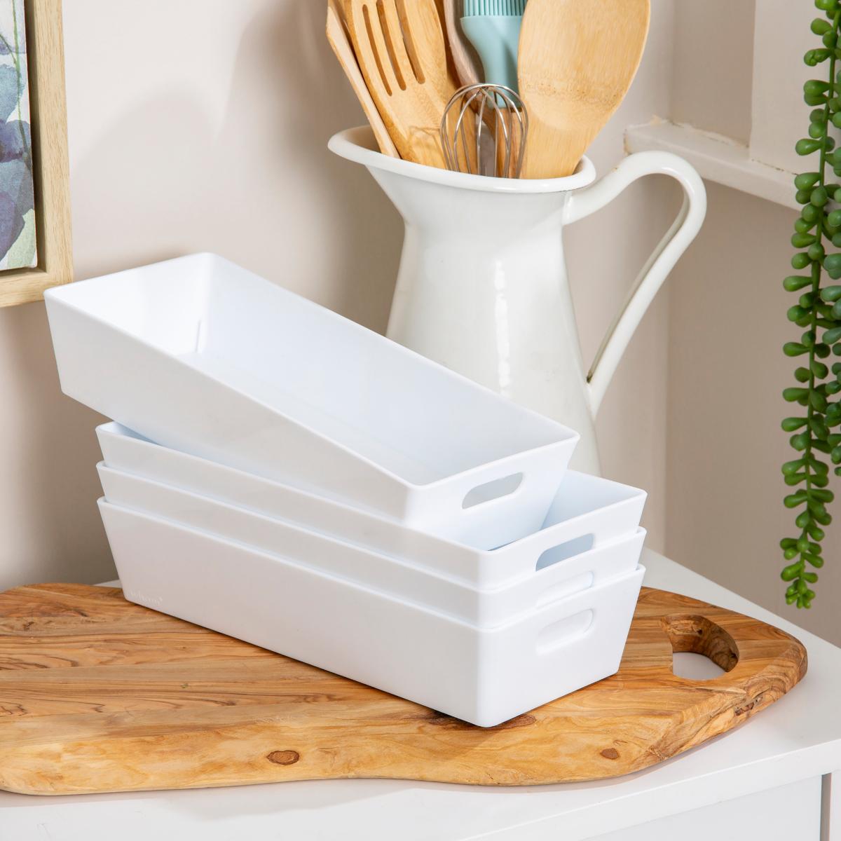 Rely on Wham’s simple and efficient storage baskets to organise your cupboards and shelves in style. This set of 4 storage baskets feature a sleek gloss finish that will add a touch of contemporary touch to any space as well as easy wipeable qualities. With a rectangular shape, they can be used for a wide range of purposes, from storing craft accessories and cosmetics to organising cleaning supplies in bathrooms, pantries and laundry rooms. Designed with integral handles, you can effortlessly hold and move them around as needed.