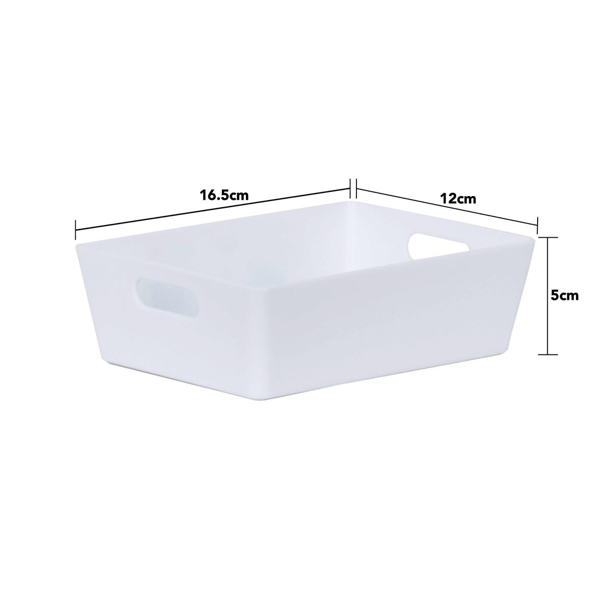 * Set of 5 identical storage baskets* Studio 3.01 size* Sleek gloss finish* Versatile uses* Designed with integral handles* Available in a choice of colours Organise your space in style with Wham’s simple and efficient storage solution, perfect for creating a consistent and ordered look. This set of 5 storage baskets feature a sleek gloss finish that will add a touch of contemporary touch to any space as well as easy wipeable qualities. They can be used for a wide range of purposes, from storing craft accessories and cosmetics to organising cleaning supplies in bathrooms, pantries and laundry rooms. Designed with integral handles, you can effortlessly hold and move them around as needed.
