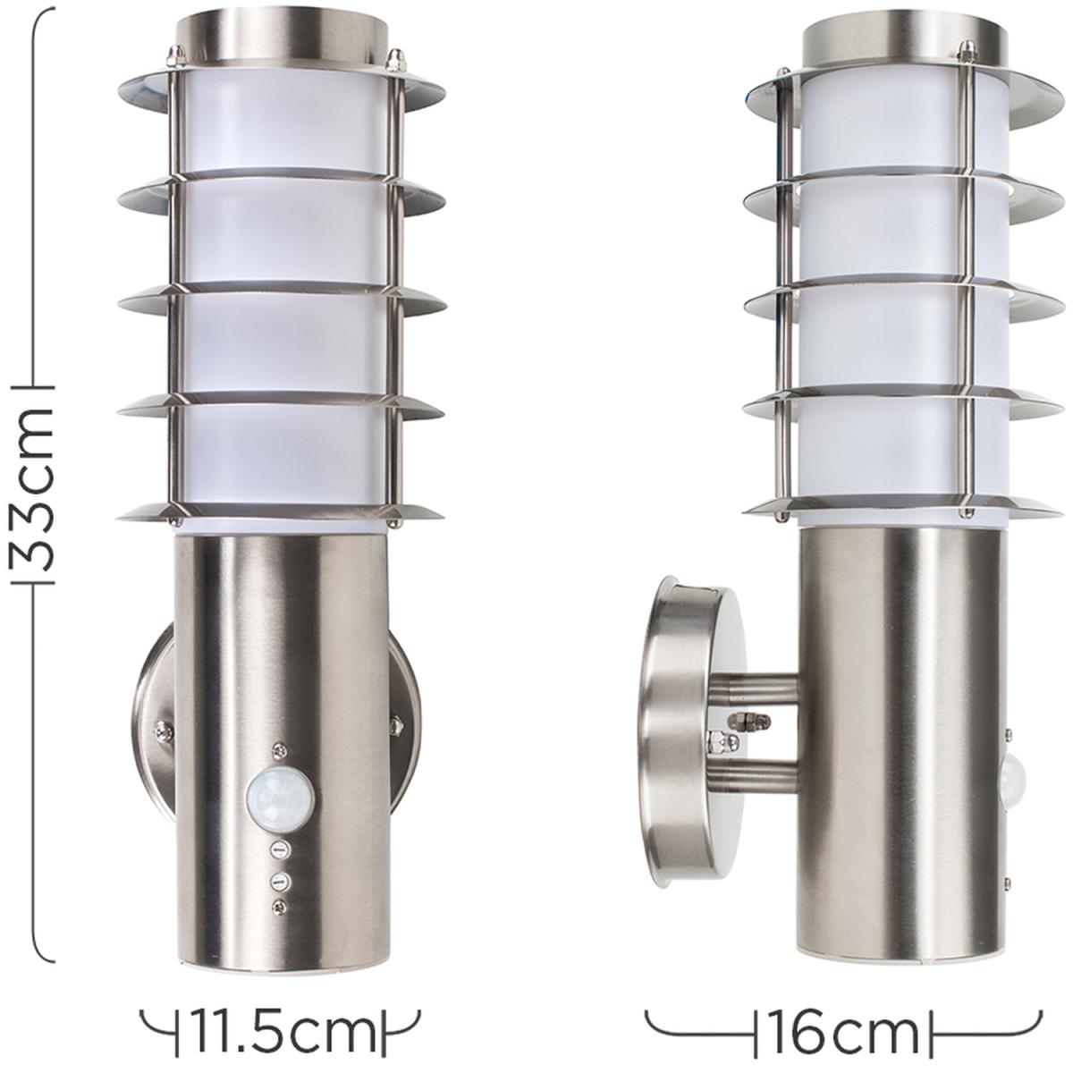 Wharf Modern Silver Stainless Steel Outdoor Wired PIR Sensor IP44 Wall Light - Silver