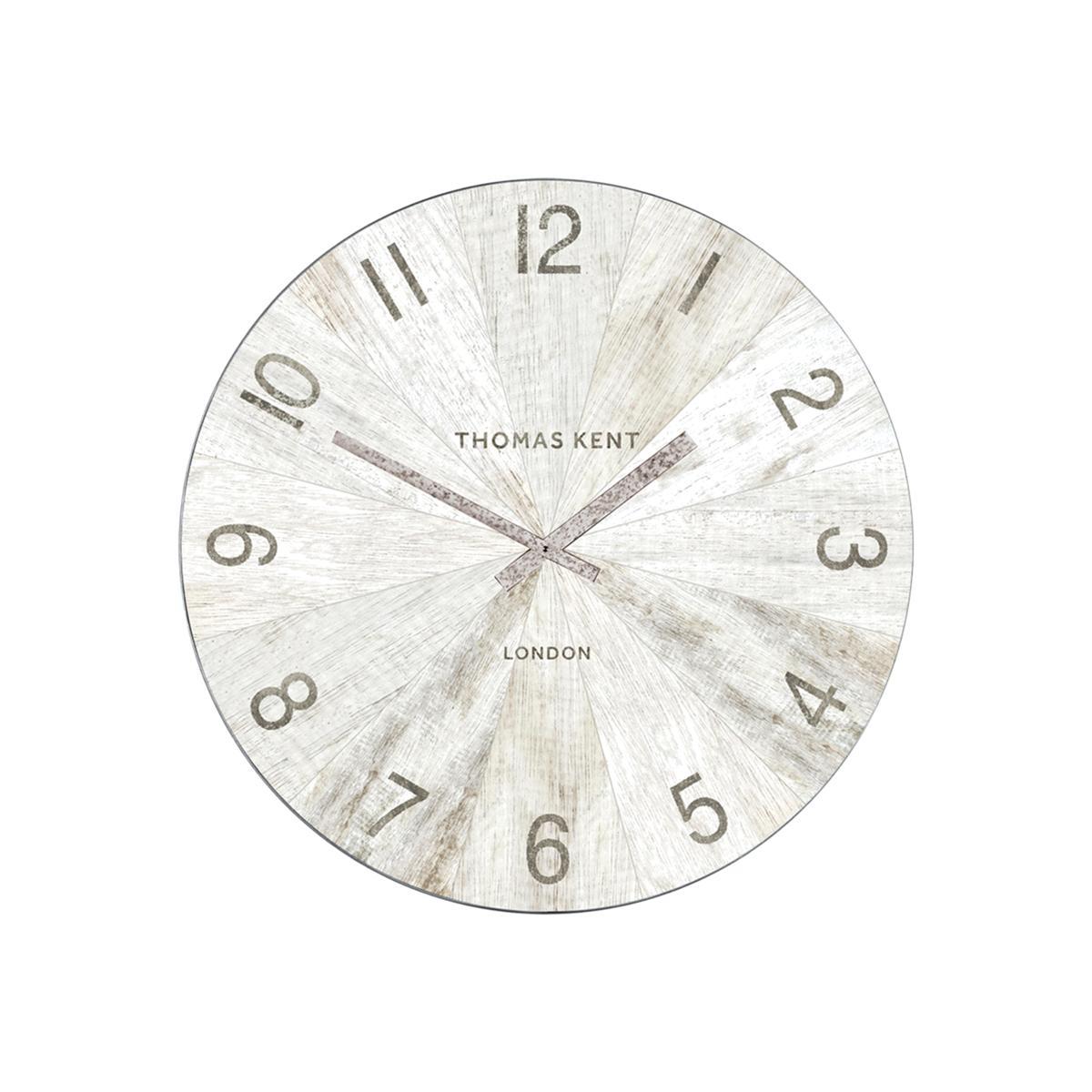 Oversized industrial-style wall clock. Limewashed oak effect with metal hands. An on trend statement piece for a feature wall. Perfectly aligned with the ever-popular industrial design style, our Wharf wall clock is a stunning piece of decoration for a feature wall in a living or dining space. Oversized and with a raw under-finished quality, this is a bold choice for anyone who loves utilitarian design with more than a dash of history. Inspired by Britain's industrial past, this large wall clock references factory clocks of yesteryear thanks to its limewashed oak-effect finish and galvanised steel trim. Smooth and circular, it’s a full 114 cm – 45 inches in diameter. Its size is balanced by rather fine details like the slender metal hands and elegant numerals. The Wharf wall clock is one of many statement wall clocks that you’ll find at Furniture Village and is a fabulous alternative to traditional wall art. Dimensions. Diameter: 114 cm (45 inches).