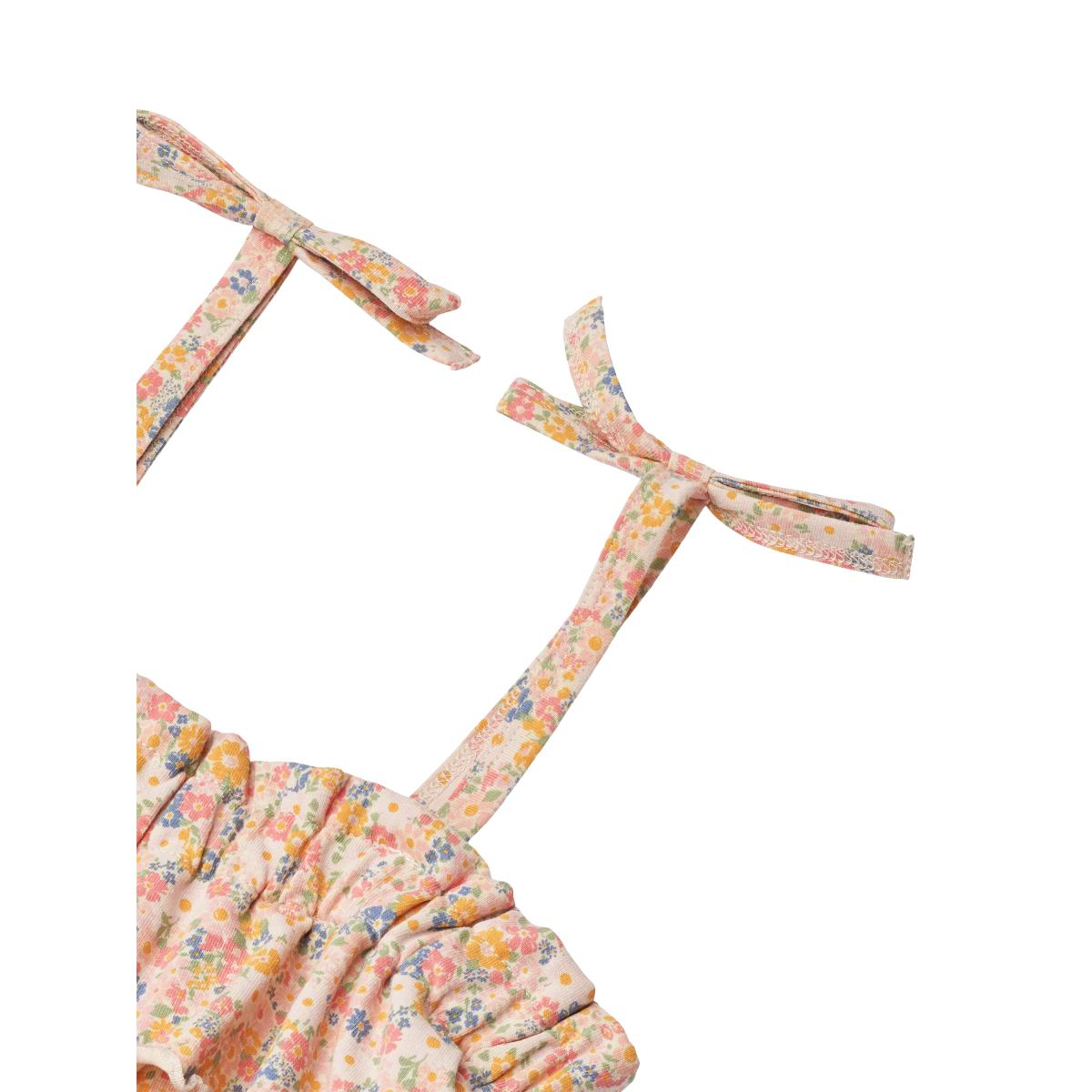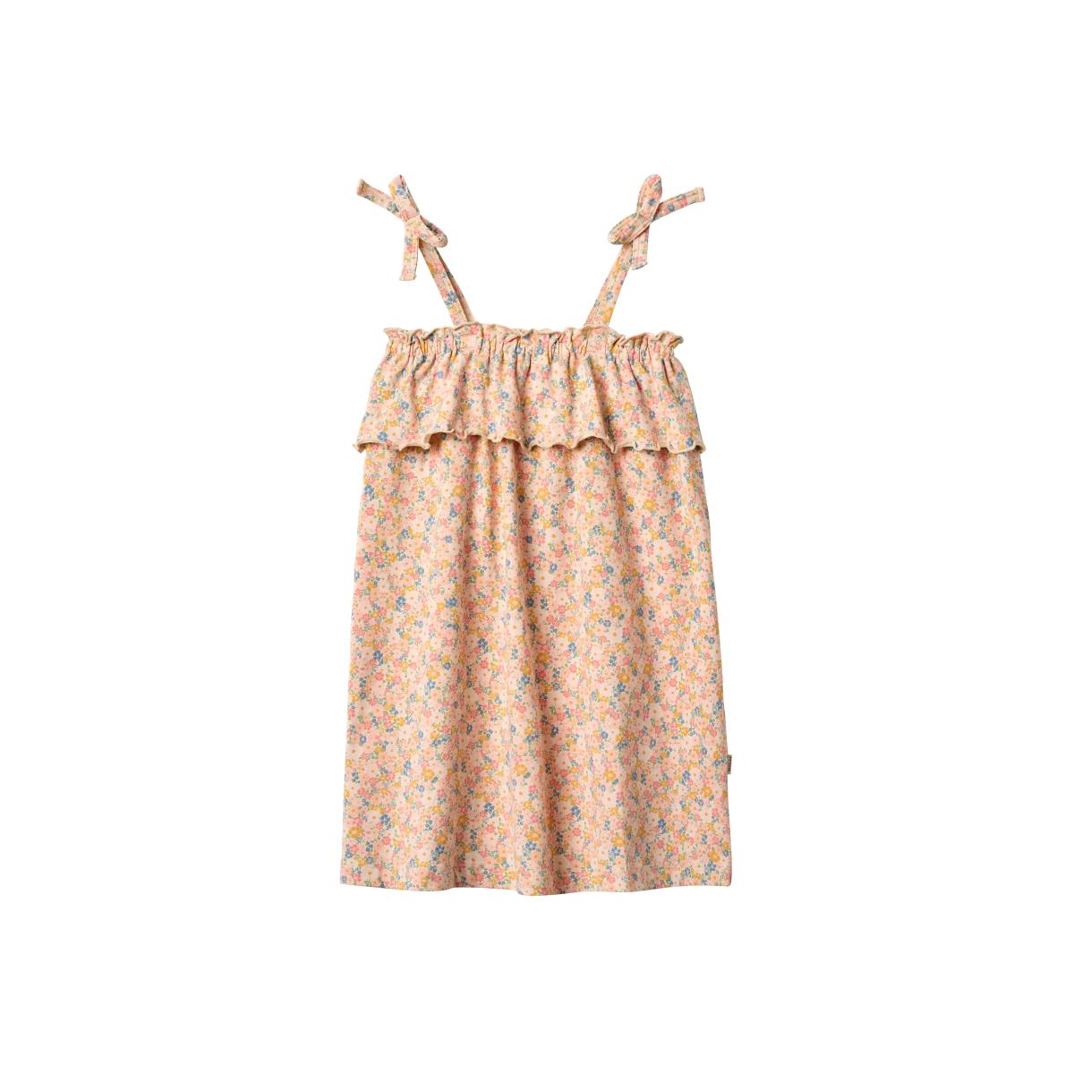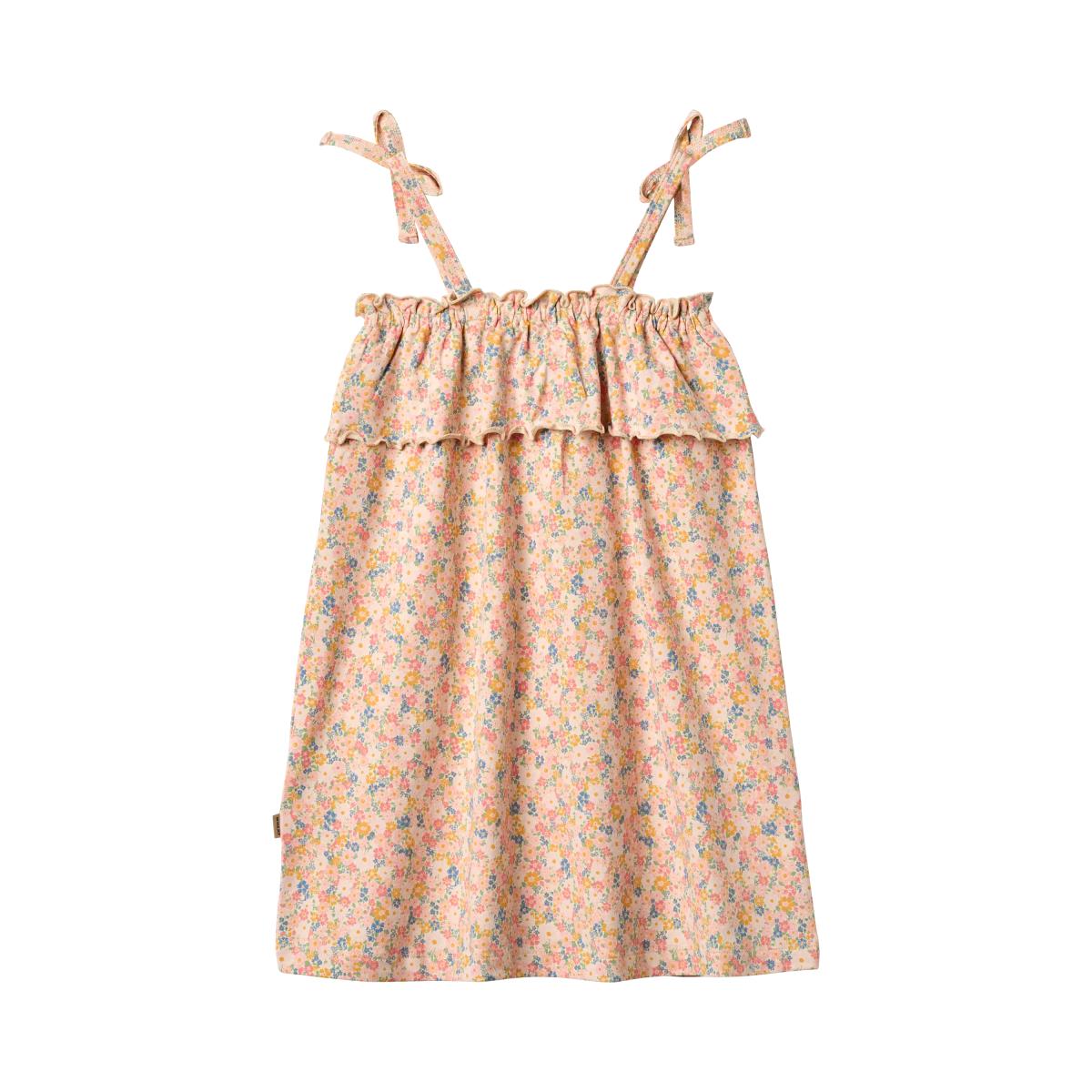 In Wheat's signature print, this dress has a loose fit, which makes them easy and comfortable for your child to wear. The dress has a flattering cutline with gatherings, which gives the dress some lovely volume. It has a button closure at the back to make it easier for your child to get dressed.
